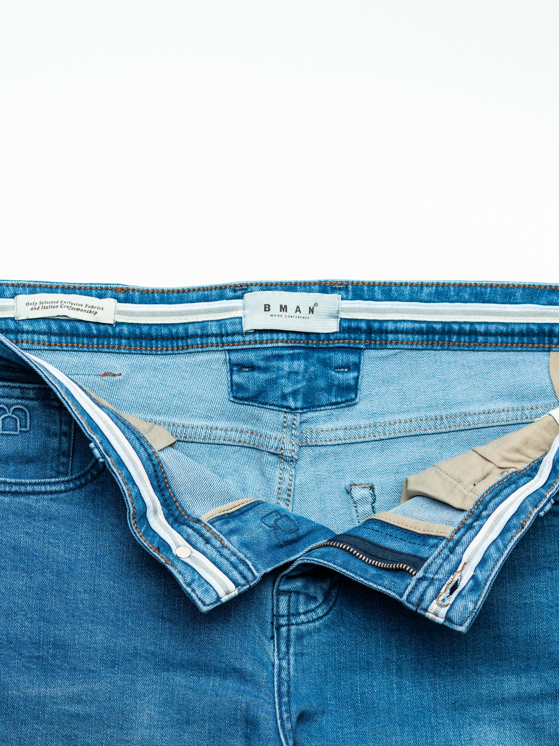 Blugi Barbati Albastru Deschis Denim Comfort Fit All Season BMan0005. Daca esti in cautarea acelui tip de blugi care sa se potriveasca perfect oricarei ocazii, Denimul Bman sunt echilibrul perfect intre confortul cotidian si eleganta necesara pentru a te face remarcat in orice moment. Cu acest tip de model, vei putea sa-ti accesorizezi cu usurinta tinutele de birou cat si cele smart casual ( in cazul unui sacou si camasa) completand astfel confortul si look-ul necesar, in fiecare zi.