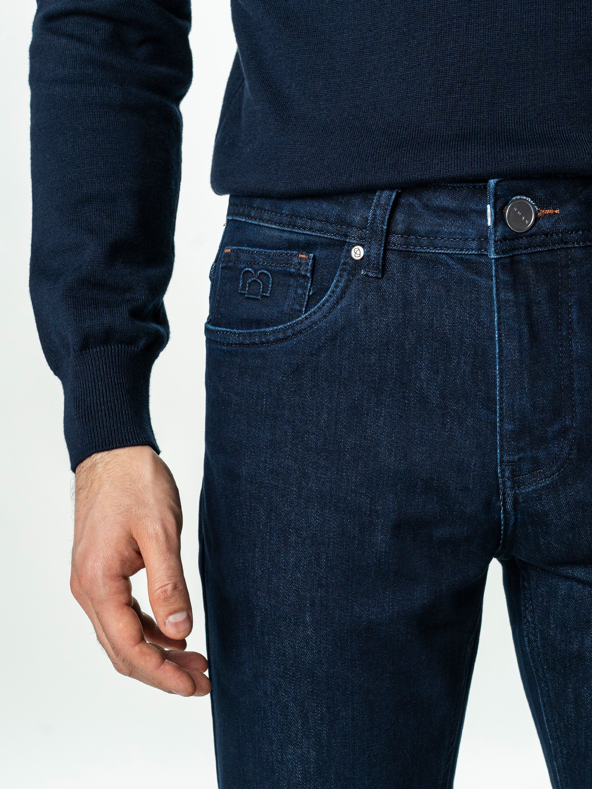 Blugi Barbati Albastru Indigo Comfort Fit Denim T400 BMan0003. Dacă ești în căutarea acelui tip de blugi care să se potrivească perfect oricărei ocazii, Denimul Bman este echilibrul perfect între confortul cotidian și eleganța necesară pentru a te face remarcat în orice moment. Cu acest tip de model, vei putea să-ti accesorizezi cu ușurință tinutele de birou cat si cele smart casual ( in cazul unui sacou si camasa) completand astfel confortul si look-ul necesar, în fiecare zi.