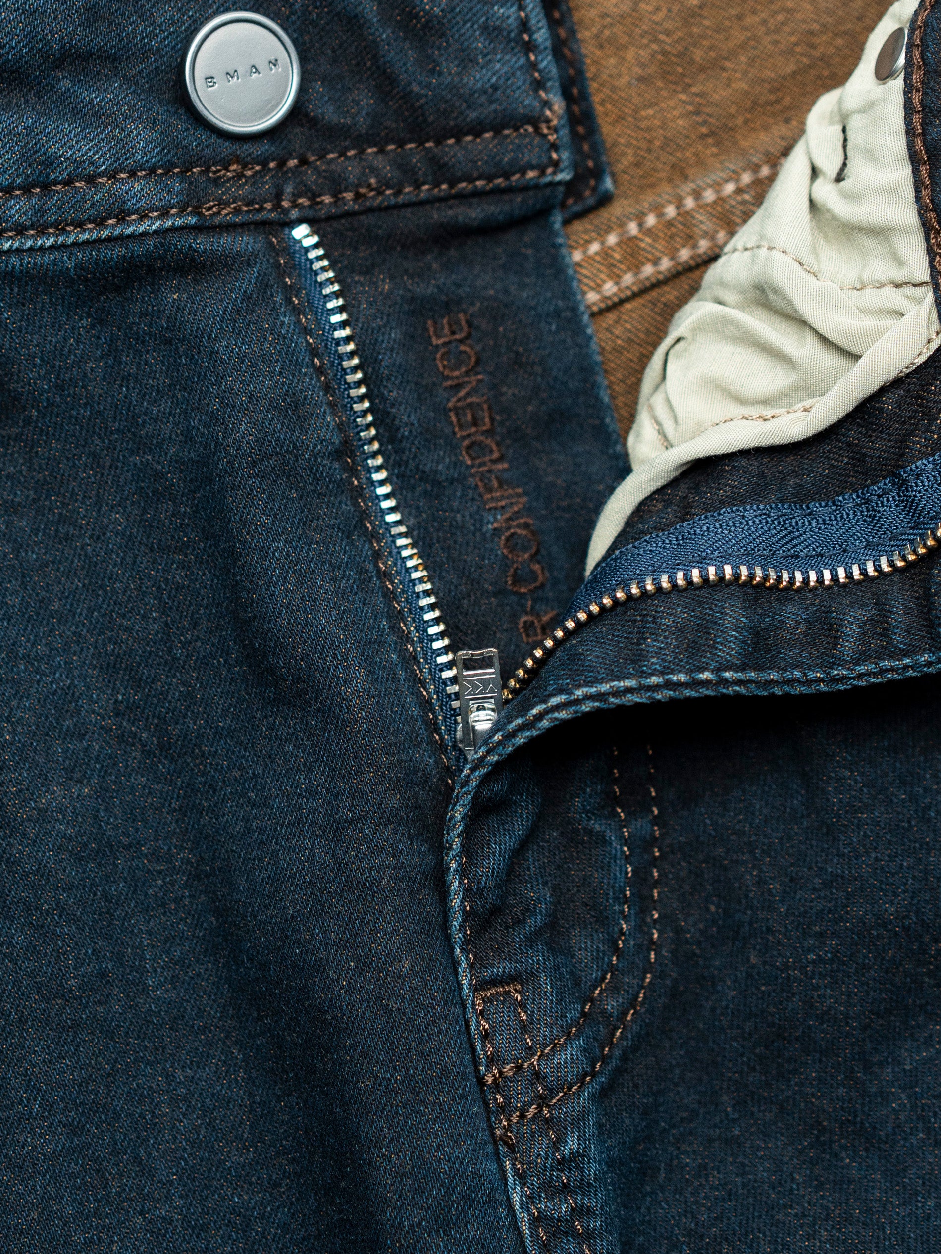 Blugi Barbati Albastru Cu Cusaturile Maro Inchis Comfort Fit All Season BMan0002. Dacă ești în căutarea acelui tip de blugi care să se potrivească perfect oricărei ocazii, Denimul Bmansunt echilibrul perfect între confortul cotidian și eleganța necesară pentru a te face remarcat în orice moment. Cu acest tip de model, vei putea să-ti accesorizezi cu ușurință tinutele de birou cat si cele smart casual ( in cazul unui sacou si camasa) completand astfel confortul si look-ul necesar, în fiecare zi.