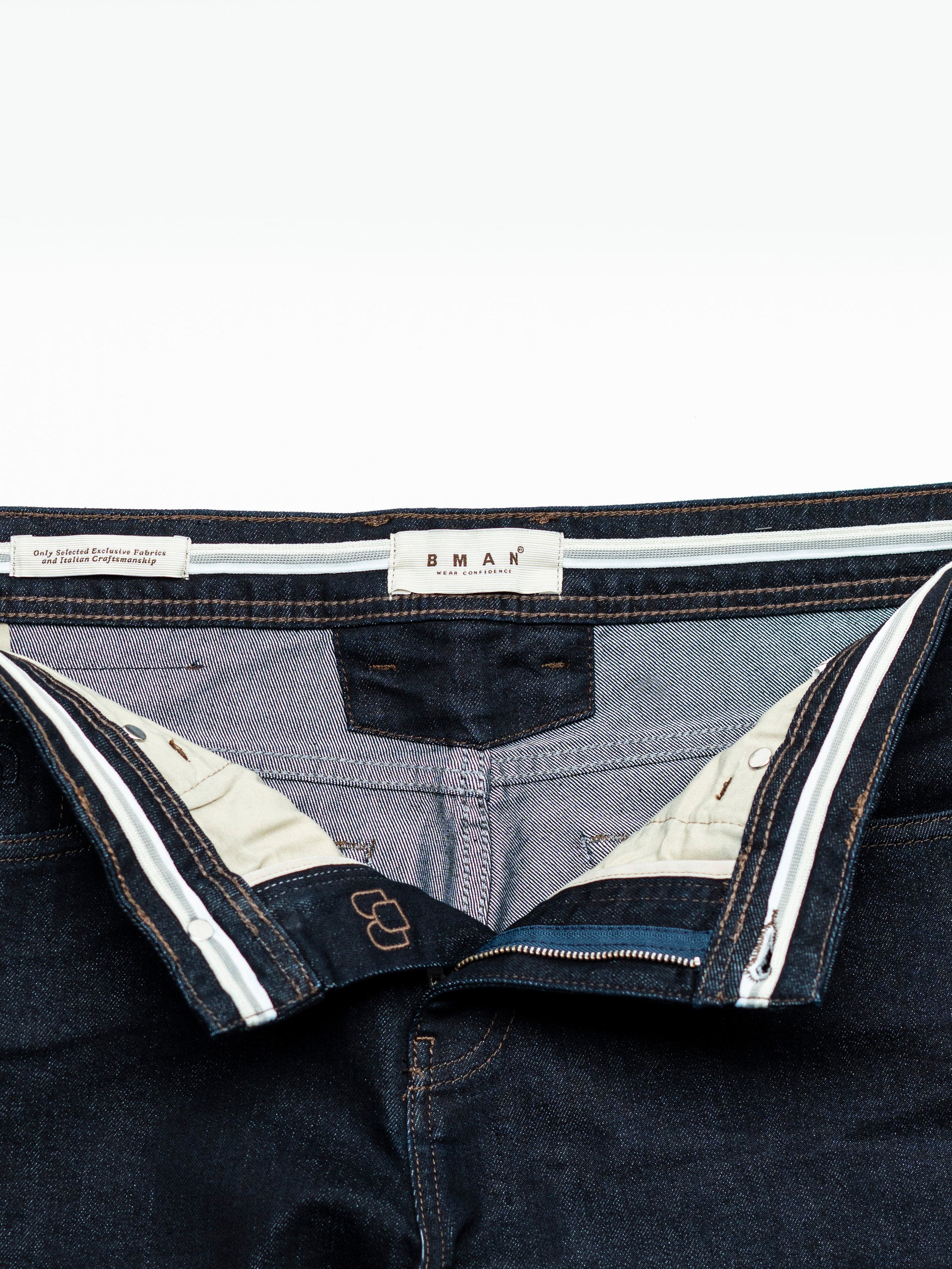 Blugi Barbati Albastru Inchis Comfort Fit Denim T400 BMan0003. Dacă ești în căutarea acelui tip de blugi care să se potrivească perfect oricărei ocazii, Denimul Bman este echilibrul perfect între confortul cotidian și eleganța necesară pentru a te face remarcat în orice moment. Cu acest tip de model, vei putea să-ti accesorizezi cu ușurință tinutele de birou cat si cele smart casual ( in cazul unui sacou si camasa) completand astfel confortul si look-ul necesar, în fiecare zi.