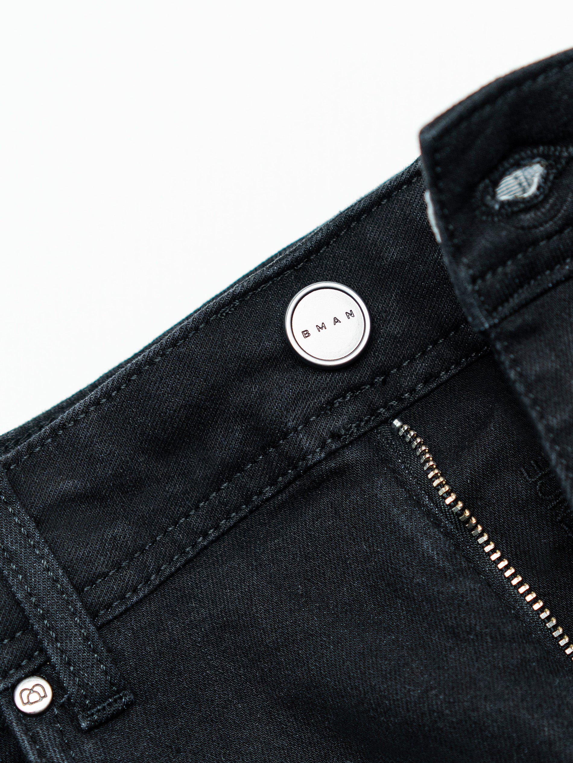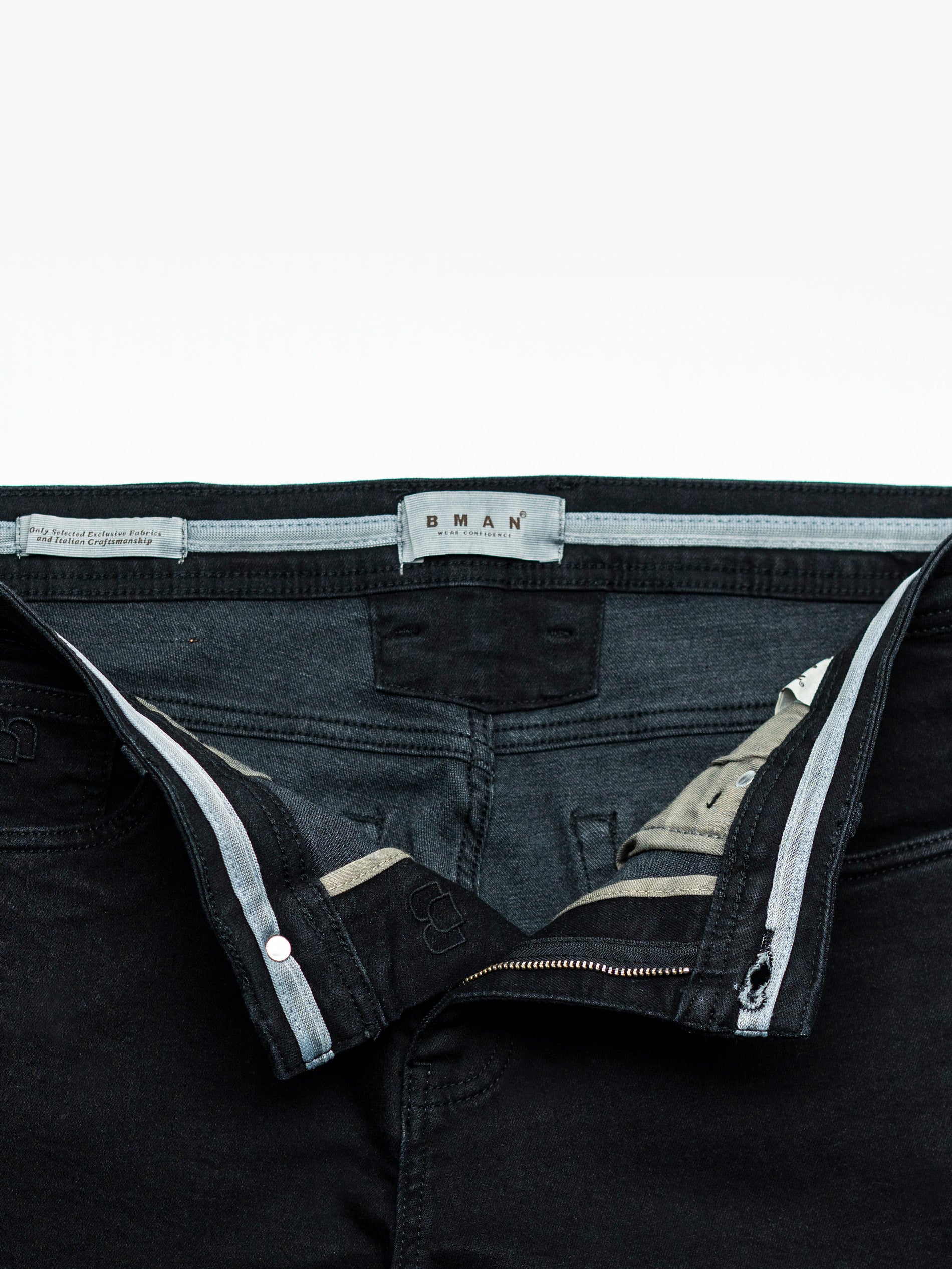 Blugi Barbati Negru Mat Simplu Comfort Fit All Season BMan0001. Dacă ești în căutarea acelui tip de blugi care să se potrivească perfect oricărei ocazii, Denimul Bmansunt echilibrul perfect între confortul cotidian și eleganța necesară pentru a te face remarcat în orice moment. Cu acest tip de model, vei putea să-ti accesorizezi cu ușurință tinutele de birou cat si cele smart casual ( in cazul unui sacou si camasa) completand astfel confortul si look-ul necesar, în fiecare zi.