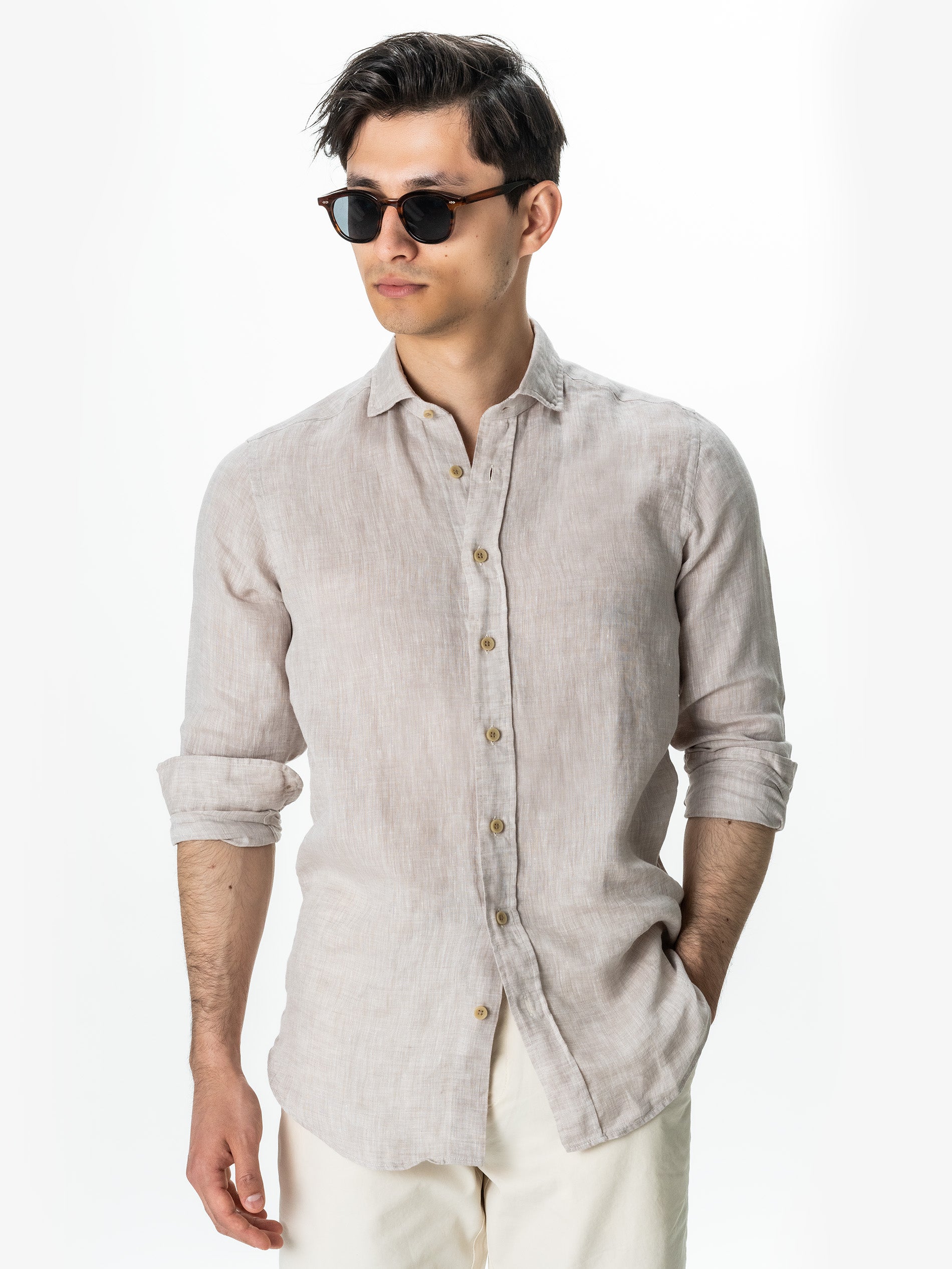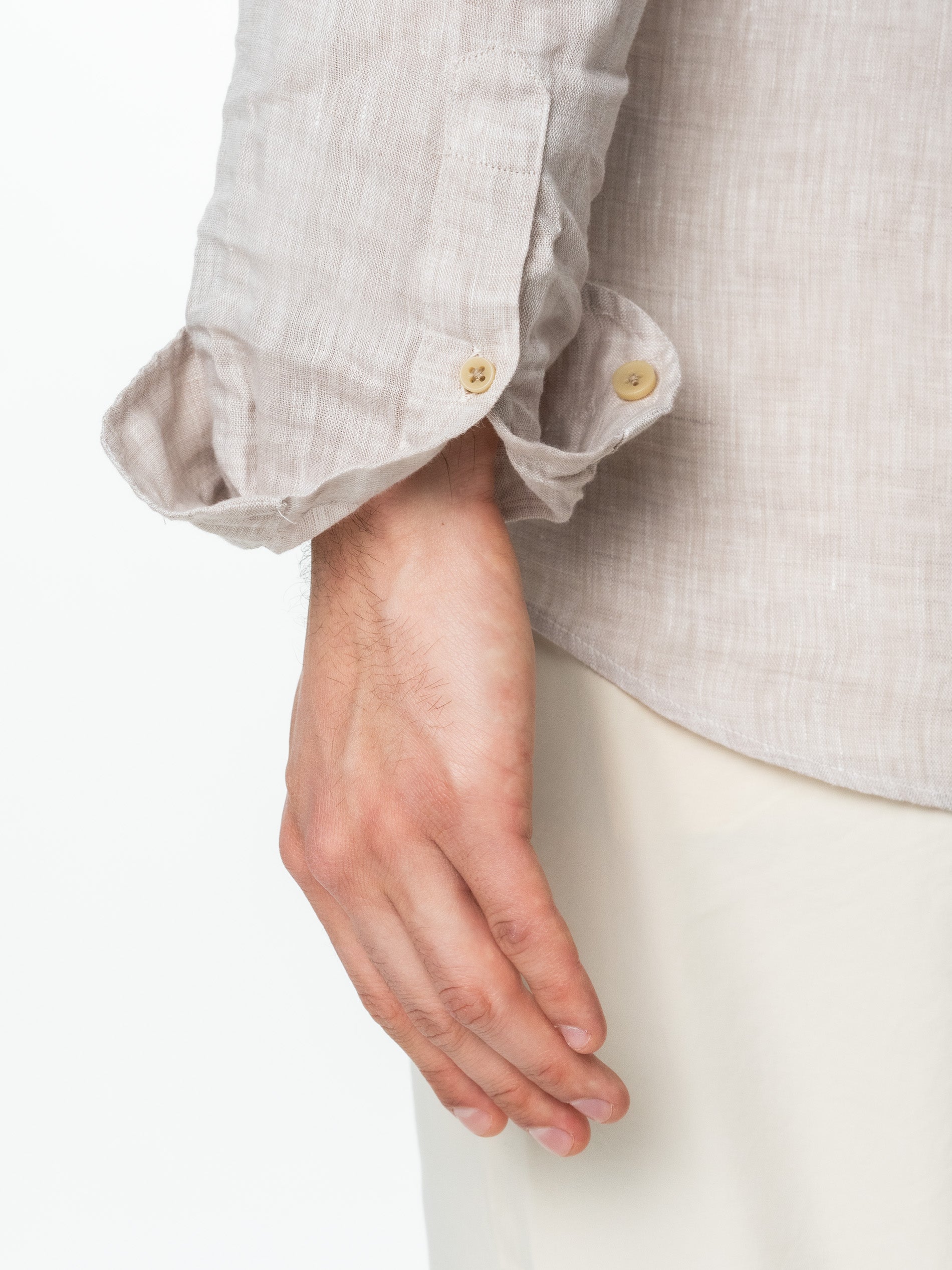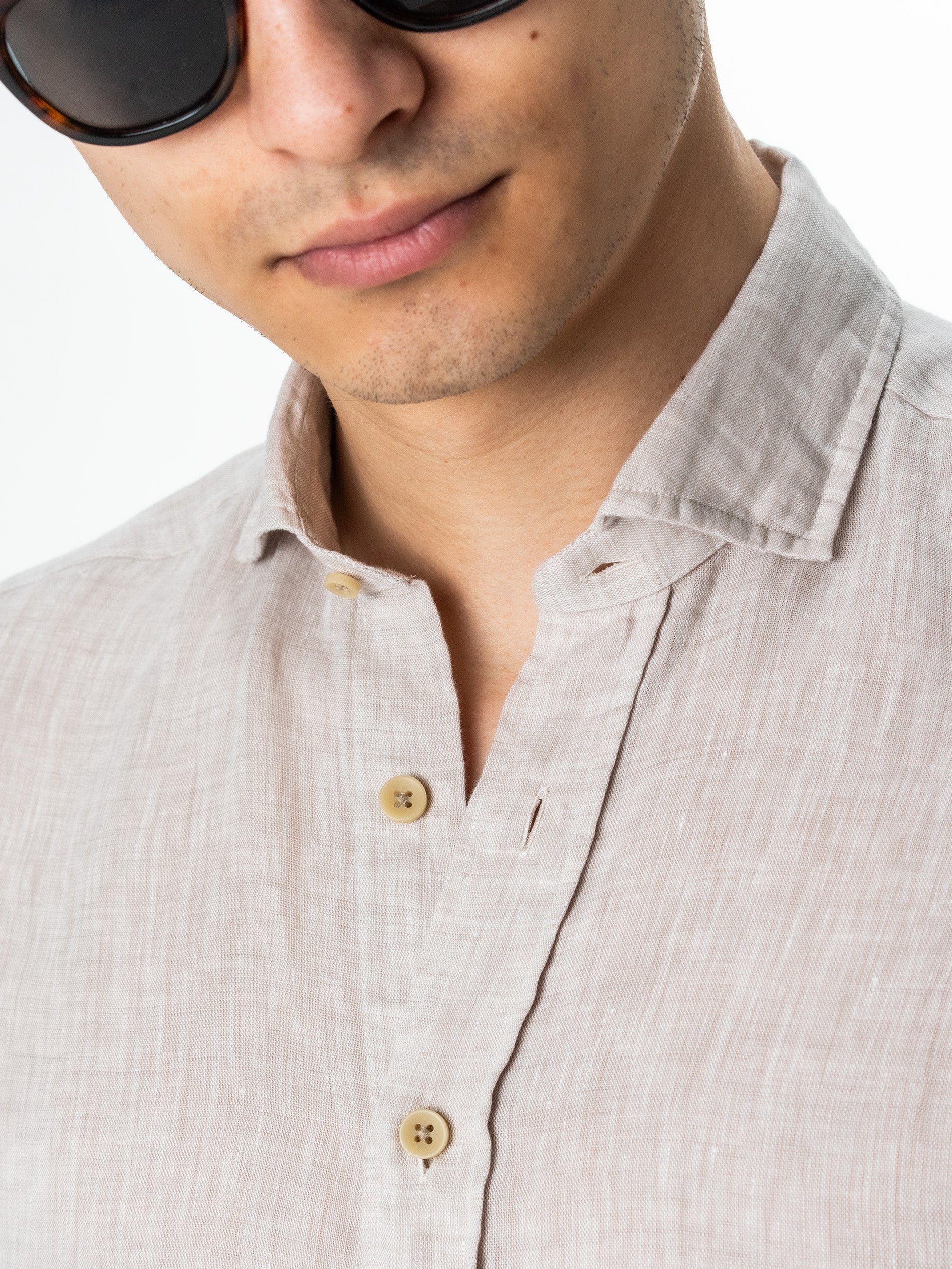 Camasa Vara Barbati Bej Nisip Din 100% In Natural BMan855 din 100% țesătură Italiana Bianco Nero din in natural, este concepută pentru zilele de vară călduroase, când tot ce vrem este să purtăm ceva răcoros și să păstrăm un look sofisticat. Poate fi asortată cu pantaloni model Chinos sau Gurkha Design.