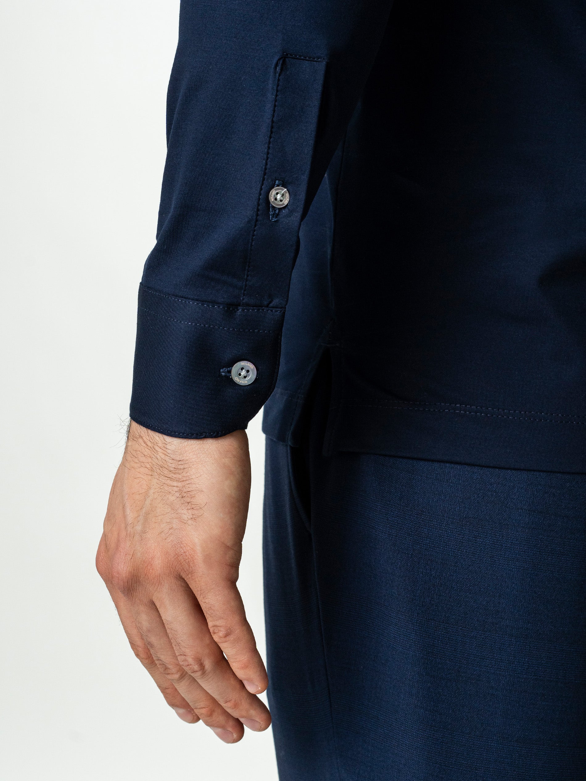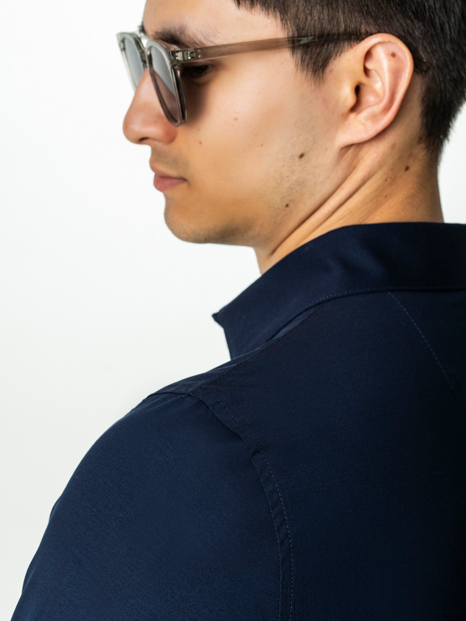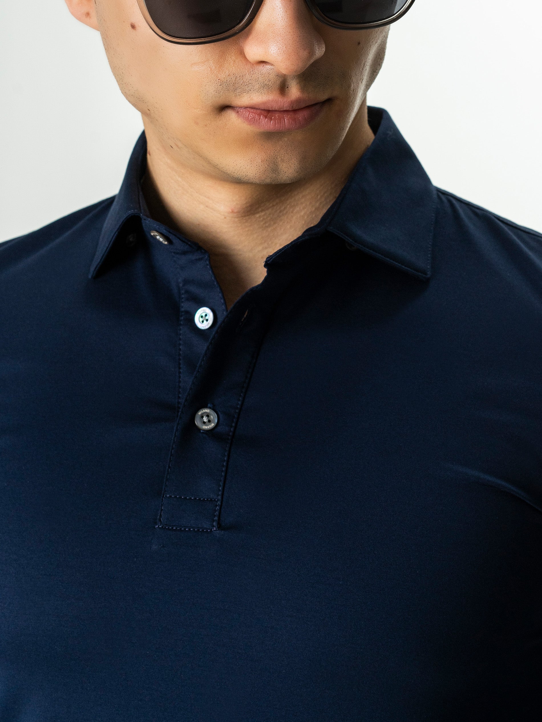 Camasa Bleumarin Din Bumbac Egiptean Barbati Cu Guler Polo BMan869. Calitatea premium 100% Bumbac Egiptean se remarca printr-un produs diferit, atragator si potrivit pentru evenimentele business casual, travel si mediul de birou de zi cu zi. Prezenta a doar trei nasturi, gulerul tip polo, materialul confortabil si manseta de camasa fac din acest produs o alegere ideala.