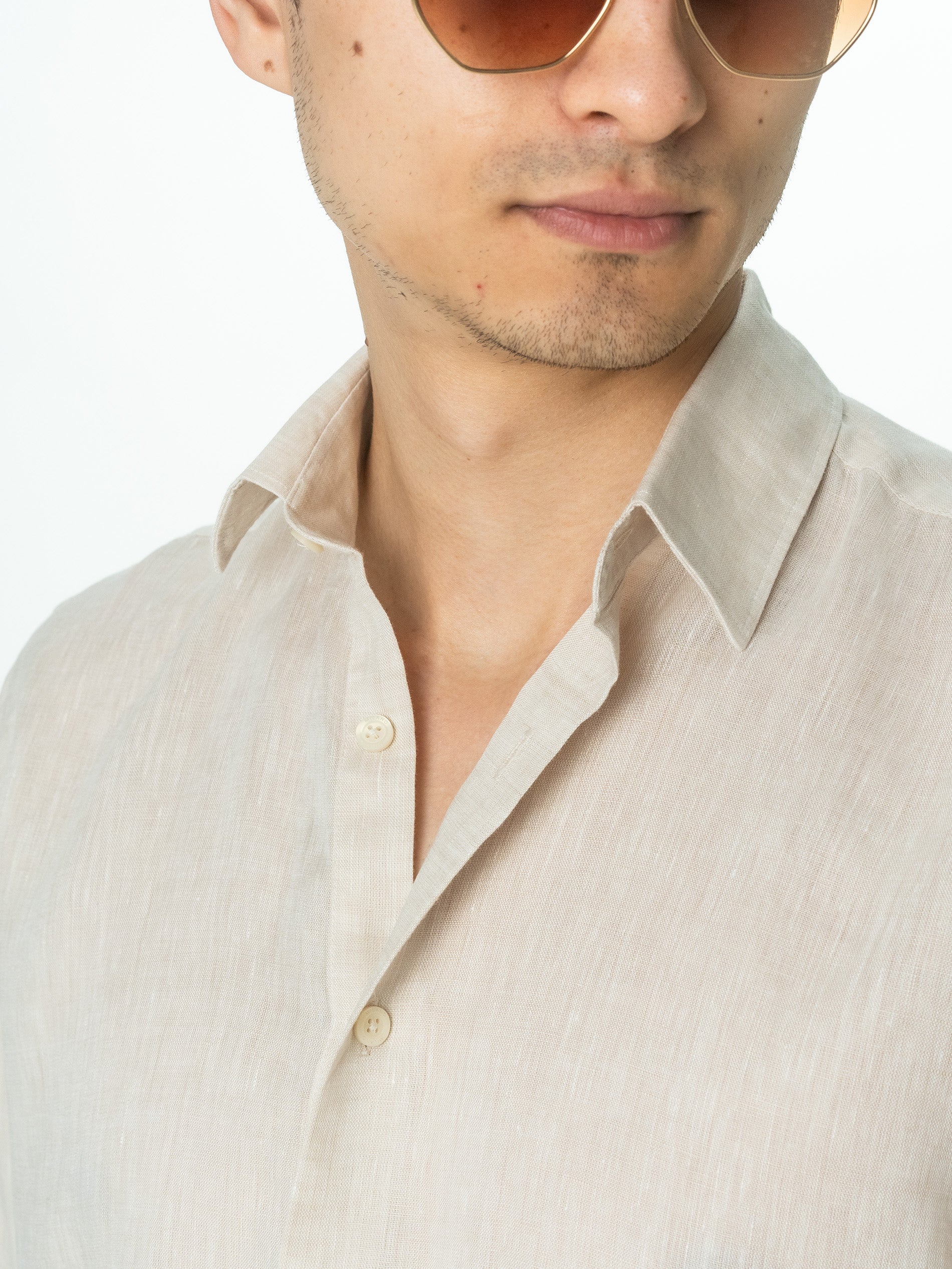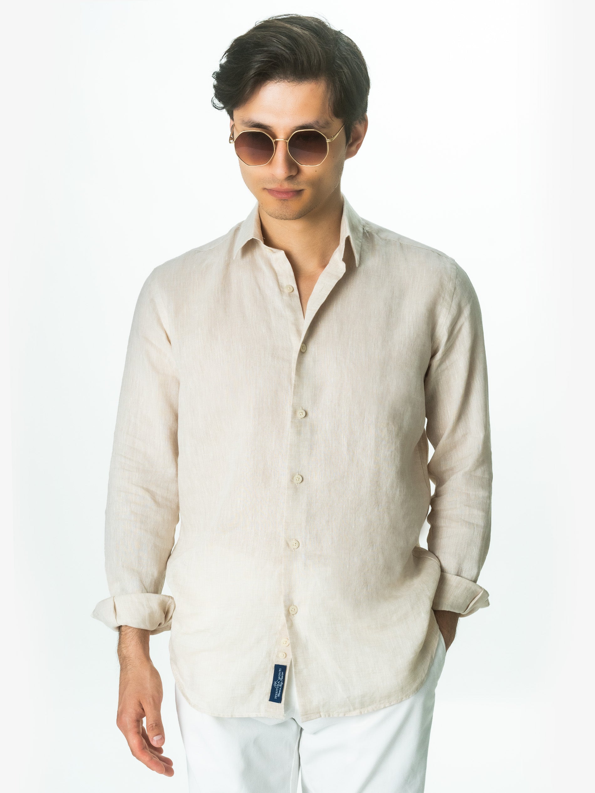 Camasa Crem In Natural Tessitura Monti Bărbați De Vară BMan855, este concepută pentru zilele de vară călduroase, când tot ce vrem este să purtăm ceva răcoros și să păstrăm un look sofisticat. Poate fi asortată cu pantaloni model Chinos sau Gurkha Design.