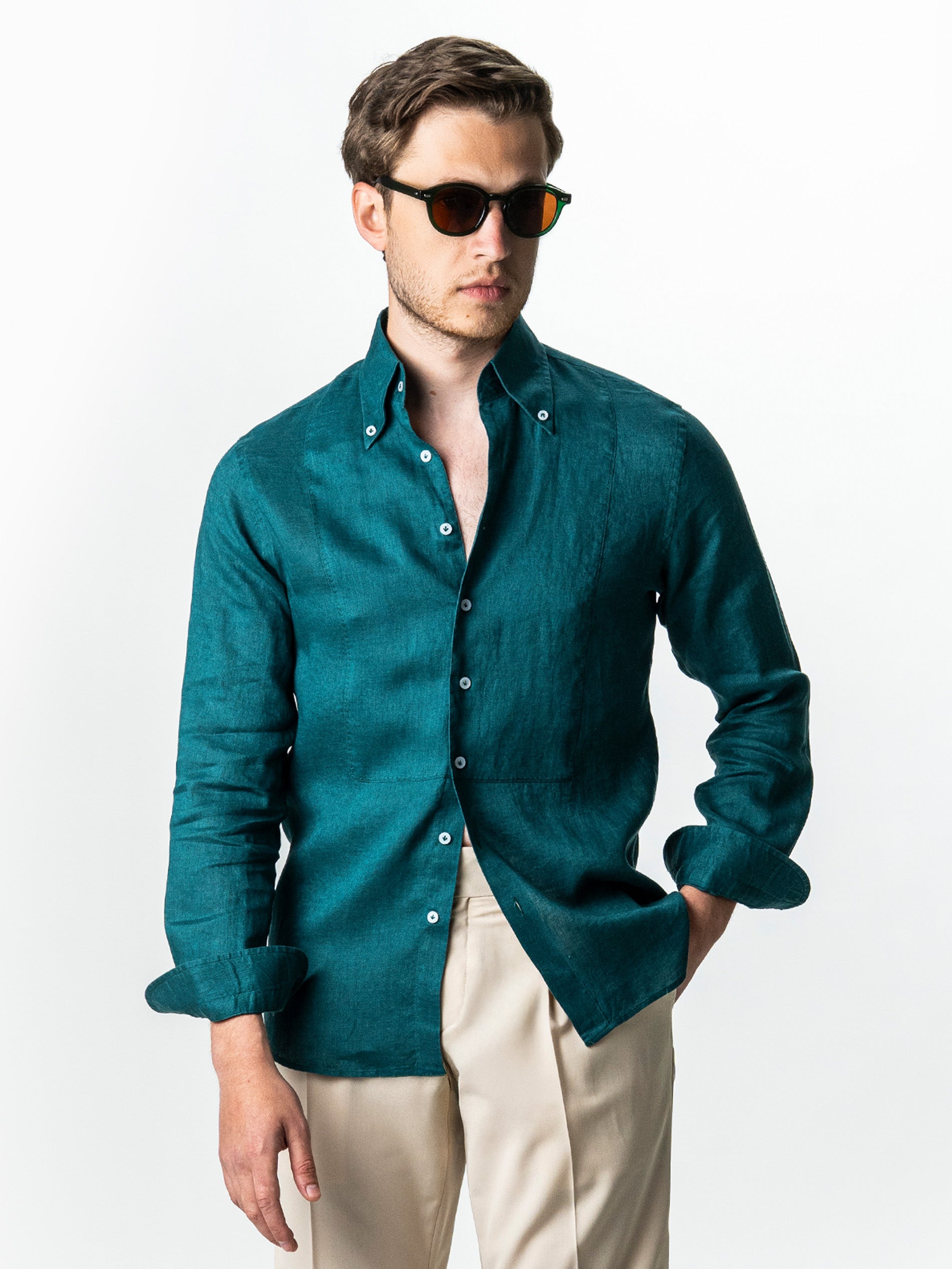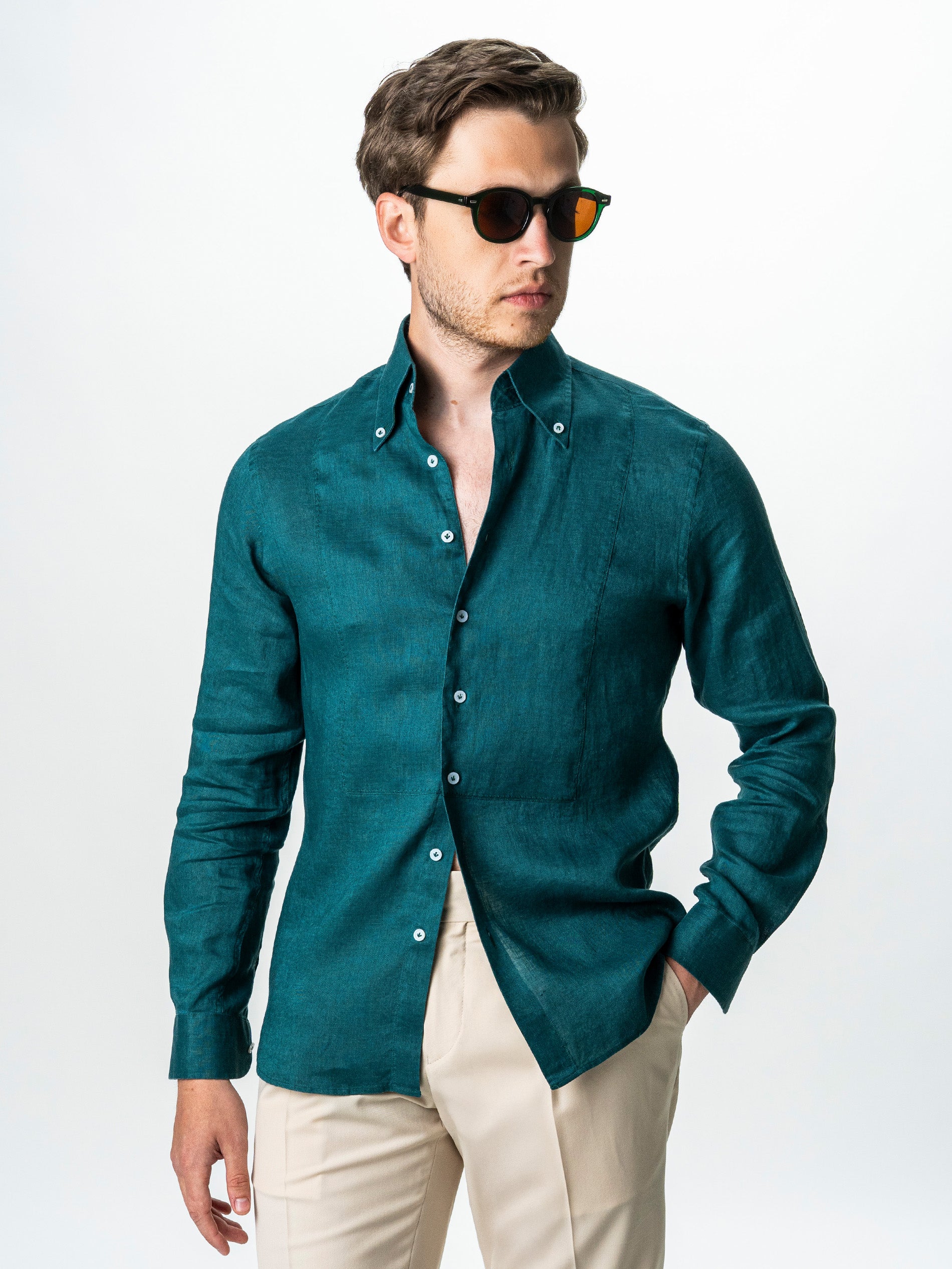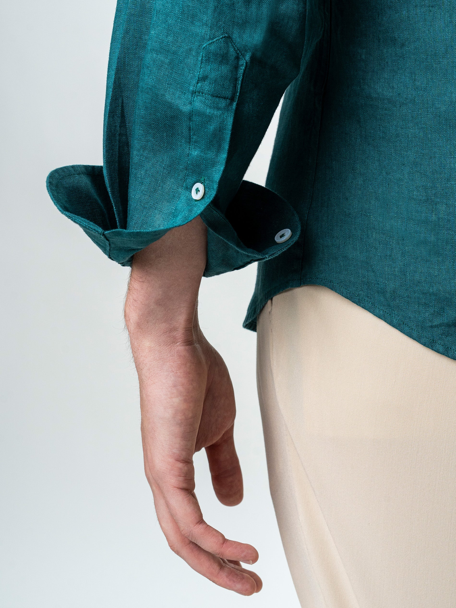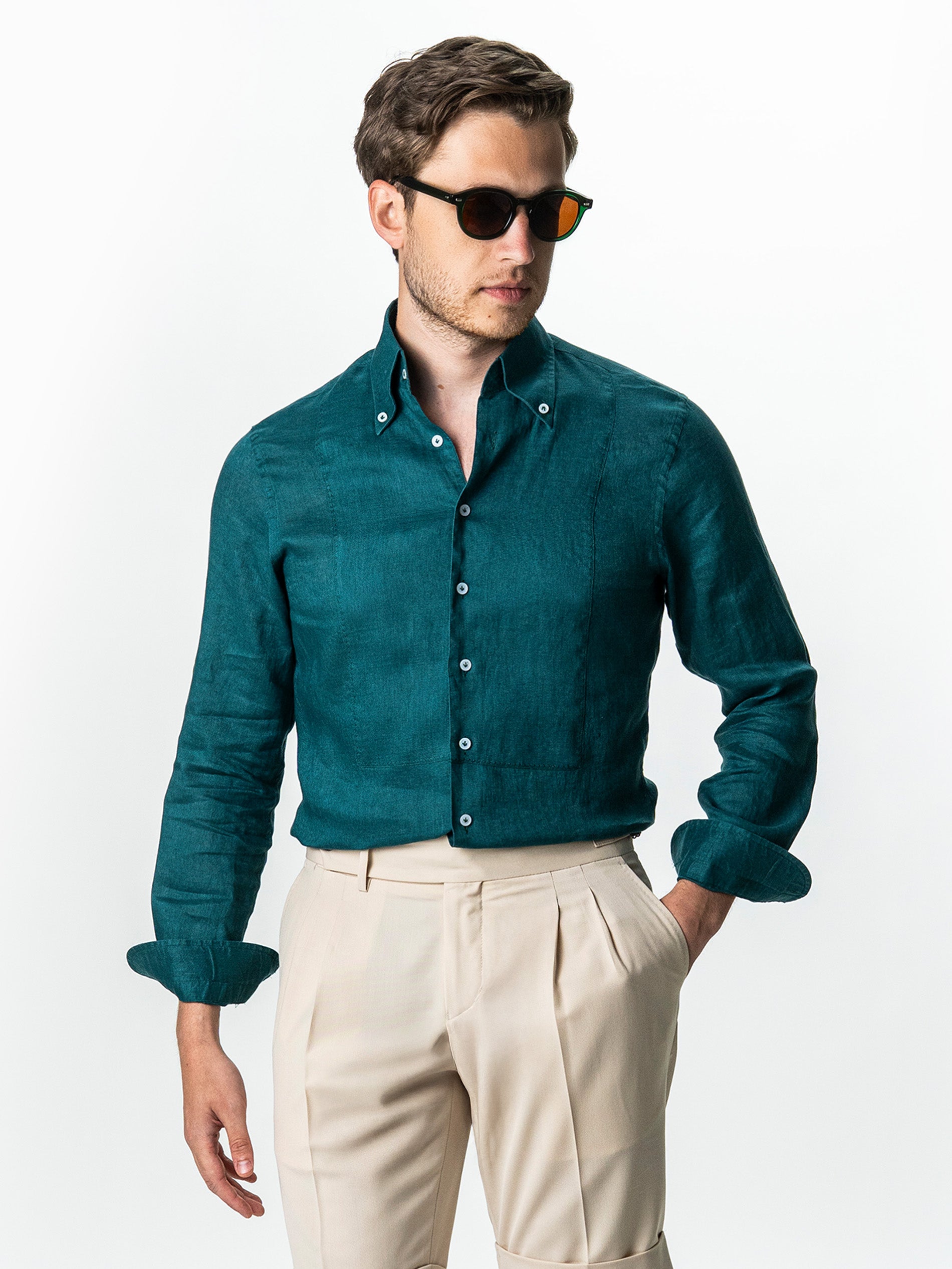 Camasa Barbati Verde Din 100% In Natural BMan0068 oferind o senzatie placuta la purtare si o respirabilitate excelenta, ideala pentru temperaturi ridicate. Are un design clasic, cu maneca lunga si croiala lejera, accentuata de textura usor transparenta si aerisita a materialului. Gulerul este prevazut cu nasturi laterali subtili care permit o fixare eleganta, mentinand forma impecabila indiferent de modul in care este purtata. Este o piesa versatila care se potriveste atat intr-un context casual, cat si intr-o tinuta de vara mai rafinata, combinata cu pantaloni din in sau chinos.