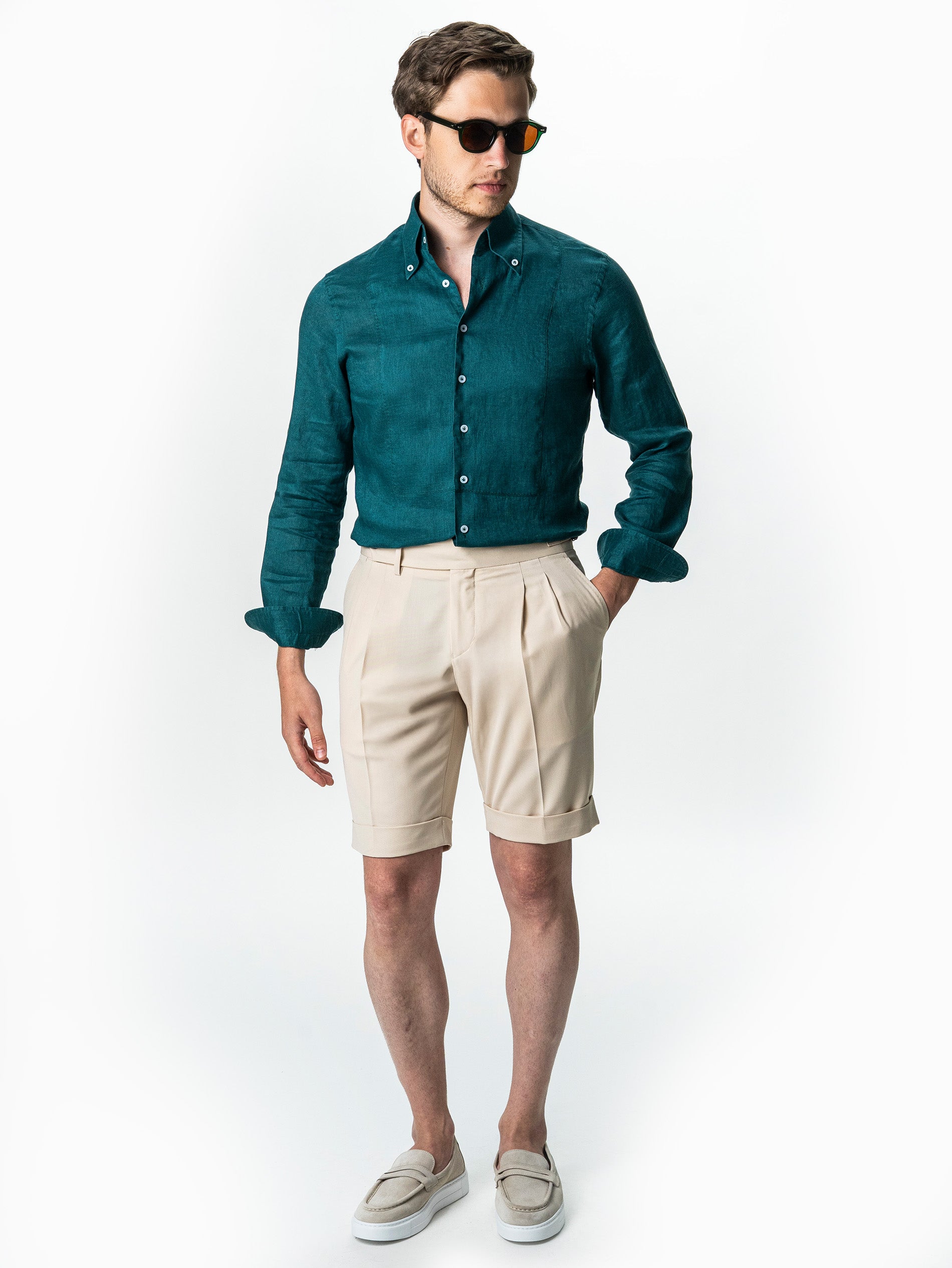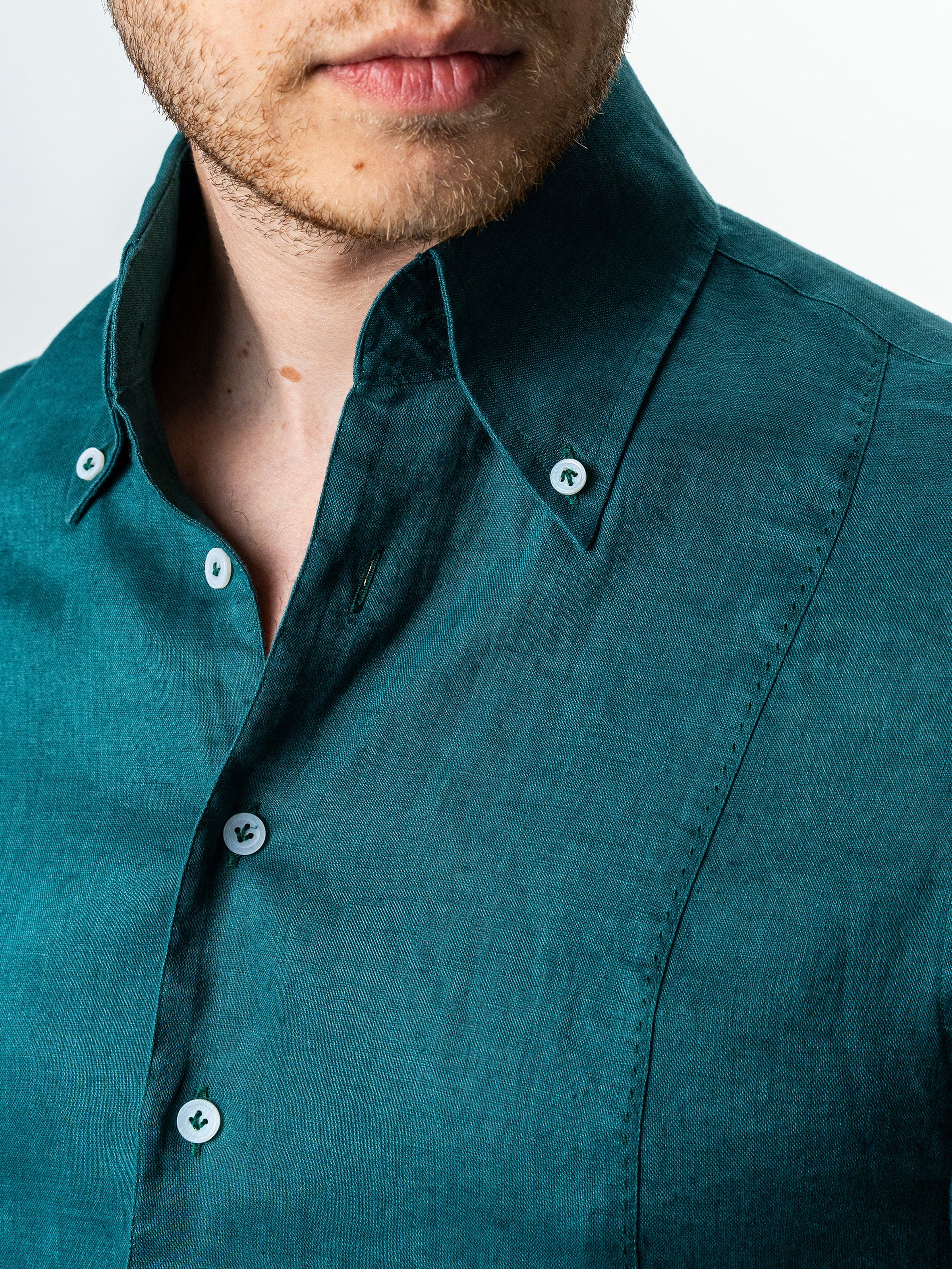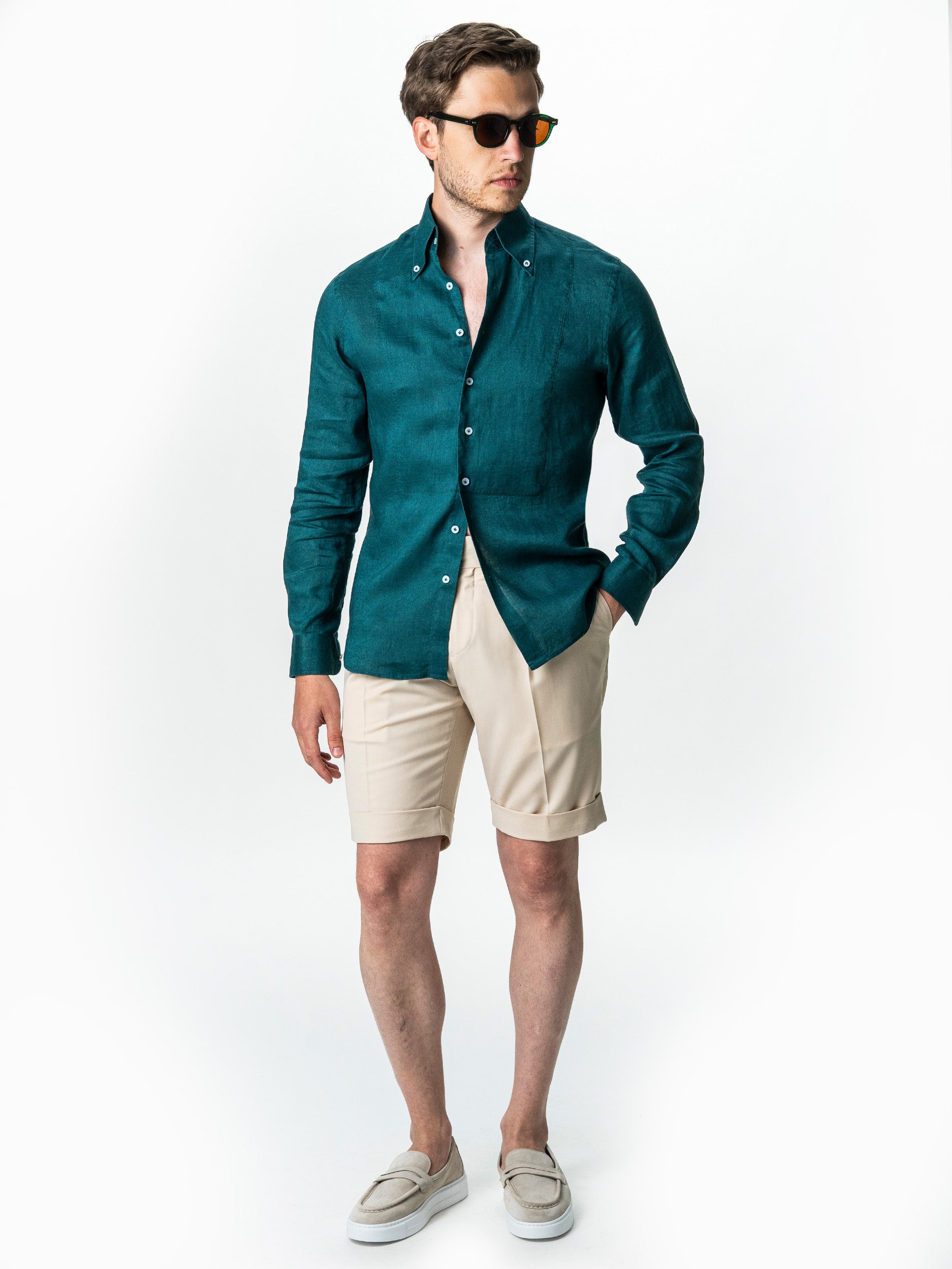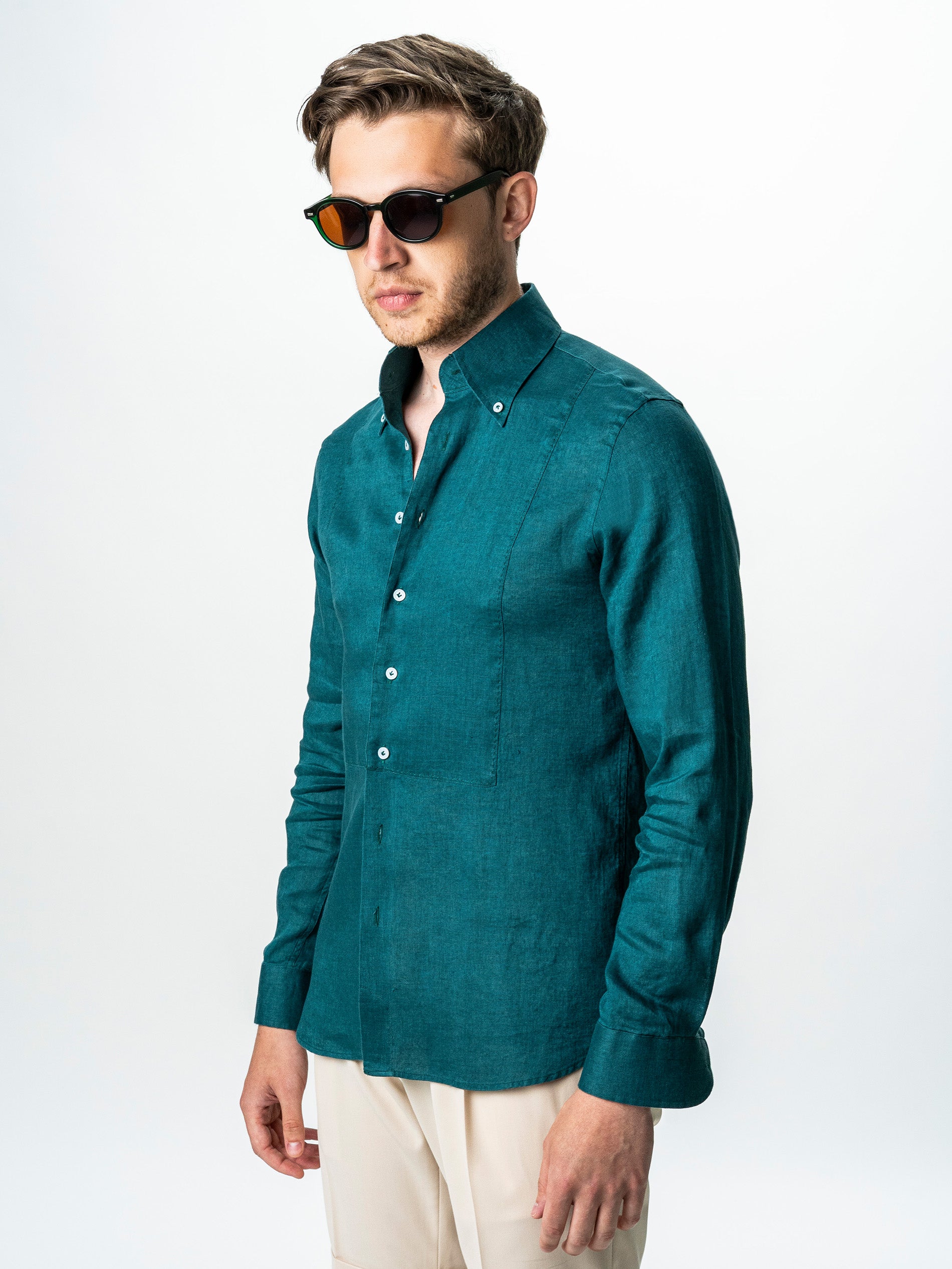 Camasa Barbati Verde Din 100% In Natural BMan0068 oferind o senzatie placuta la purtare si o respirabilitate excelenta, ideala pentru temperaturi ridicate. Are un design clasic, cu maneca lunga si croiala lejera, accentuata de textura usor transparenta si aerisita a materialului. Gulerul este prevazut cu nasturi laterali subtili care permit o fixare eleganta, mentinand forma impecabila indiferent de modul in care este purtata. Este o piesa versatila care se potriveste atat intr-un context casual, cat si intr-o tinuta de vara mai rafinata, combinata cu pantaloni din in sau chinos.