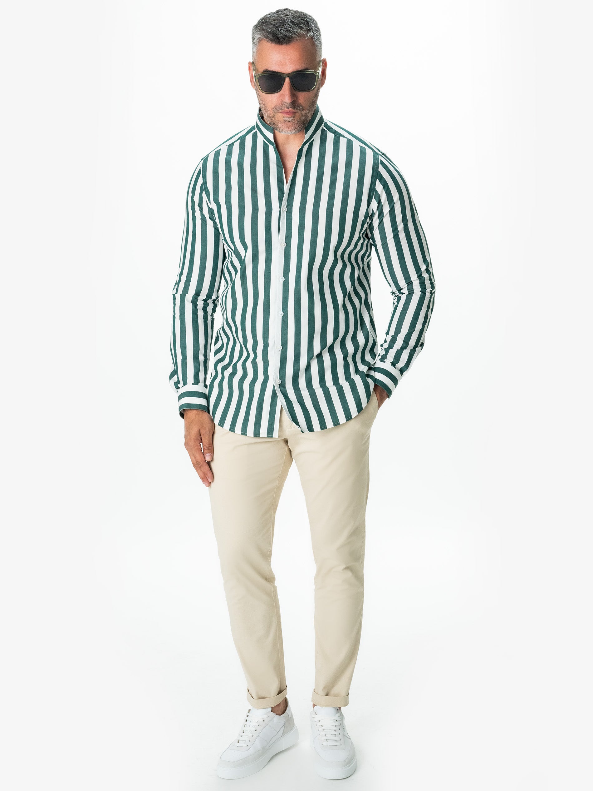Camasa Barbati Verde Modern Casual Guler Monaco BMan0047 , este confectionata din 100% bumbac premium Bianco Nero (Italia), ceea ce o face confortabila si respirabila, perfecta pentru o varietate de ocazii sau evenimente de de zi sau formale de seara. Cu un design fără guler, cămașa noastră redefineste conceptul de eleganță casual. Croiala sa modernă și lejeră completează perfect orice ținută urbană de vară, adăugând un plus de stil și rafinament. Detaliile subtile, precum cusăturile fine și butonierele discrete, aduc un aer sofisticat și atenție la detalii.