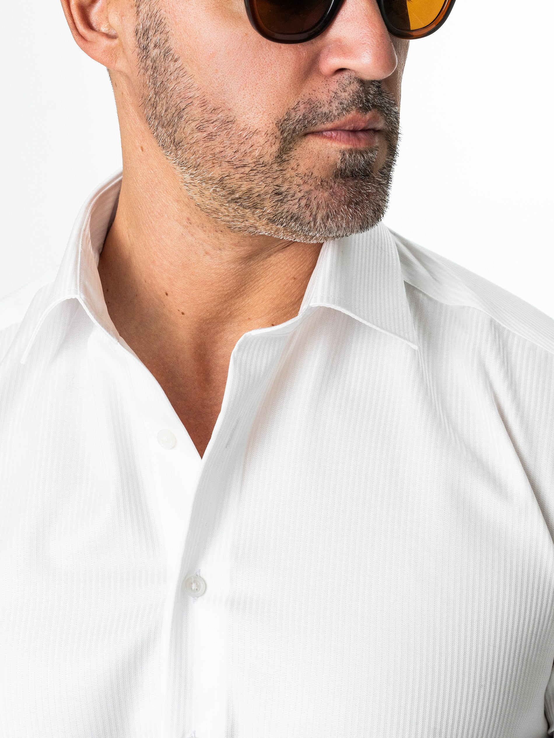 Camasa Barbati Alba Off White Bumbac Italian Premium No Iron BMan0062 este confectionata dintr-o tesatura italiana de 100% Bumbac Premium, material elastic si foarte usor de calcat ce nu se sifoneaza in timpul purtarii. Un alt avantaj o reprezinta faptul ca-si pastrezeaza o atingere fina si o elasticitate minima pentru un confort sporit. Prezinta o croiala slim, guler intarit si mansete in colturi. A fost conceputa pentru barbatii dinamici, sa nu formeze cute evidente. Poate fi asortata atat la blugi cat si la pantaloni eleganti.