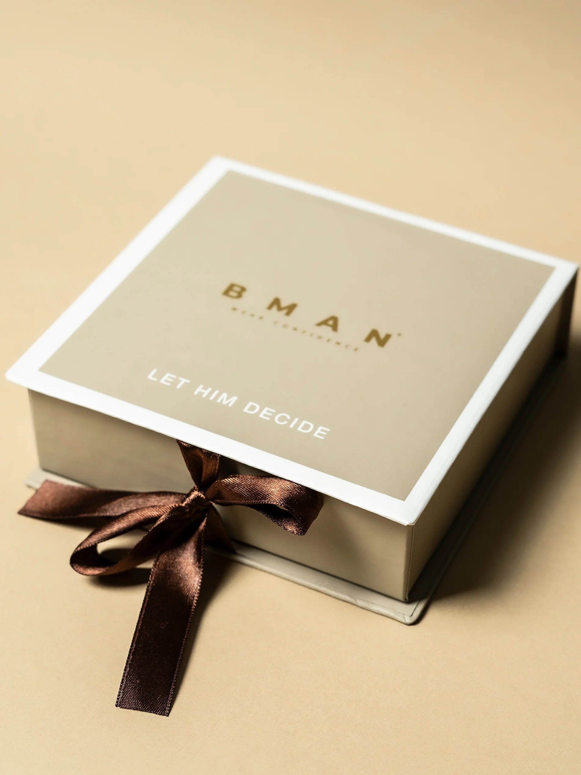 Cutie Elegantă mobilă BMan Voucher, creată din material premium fabricat în Romania;