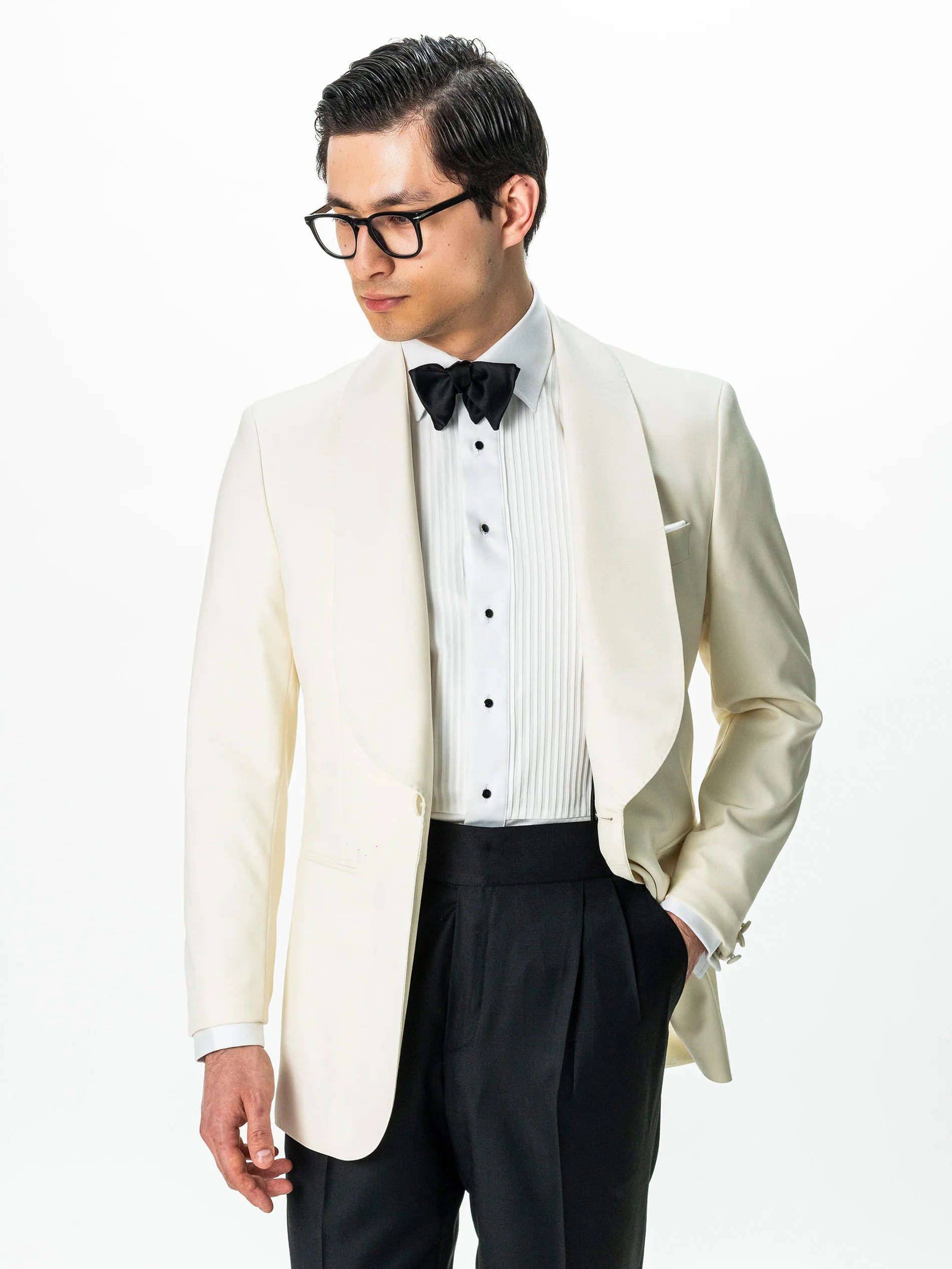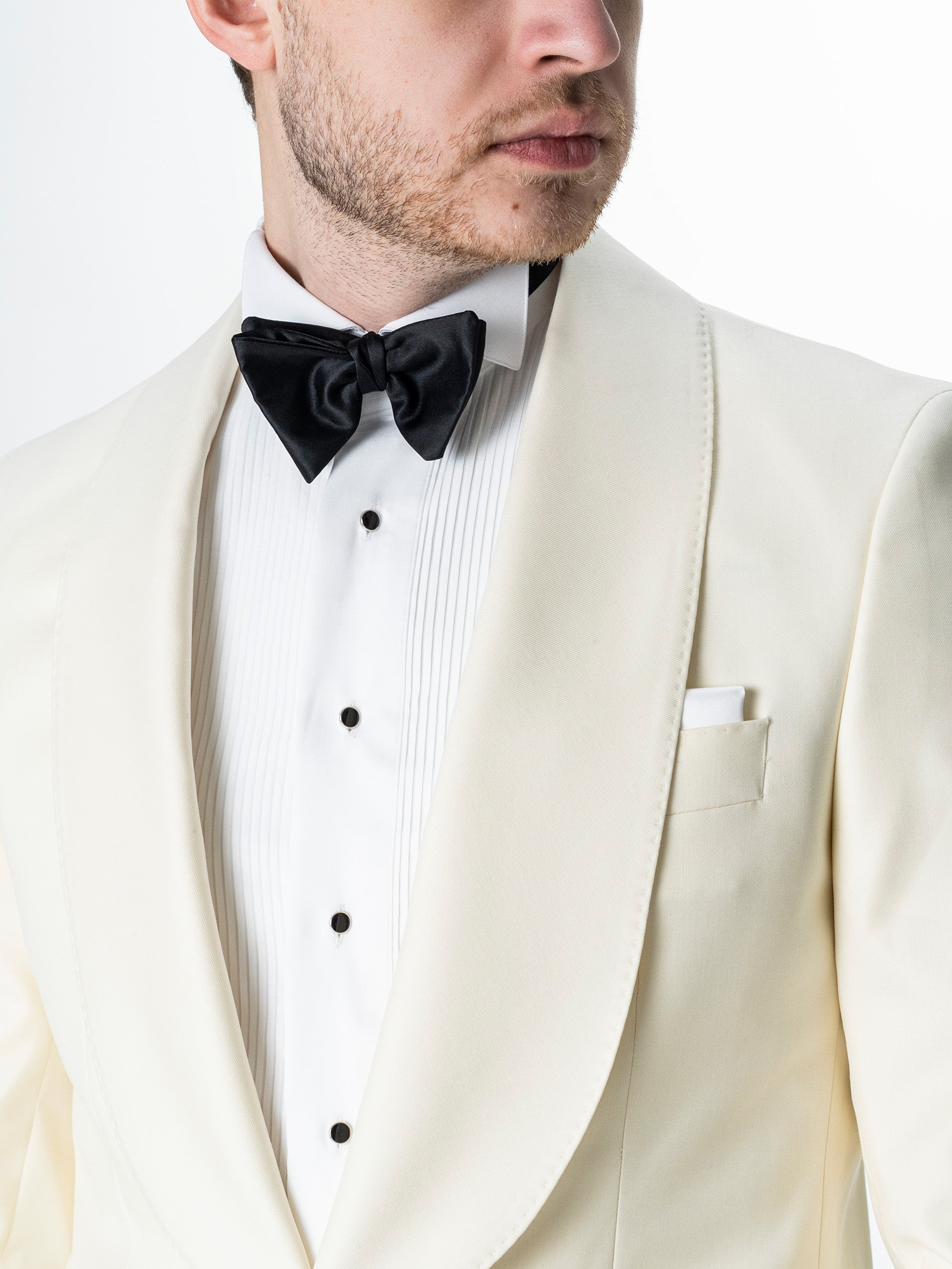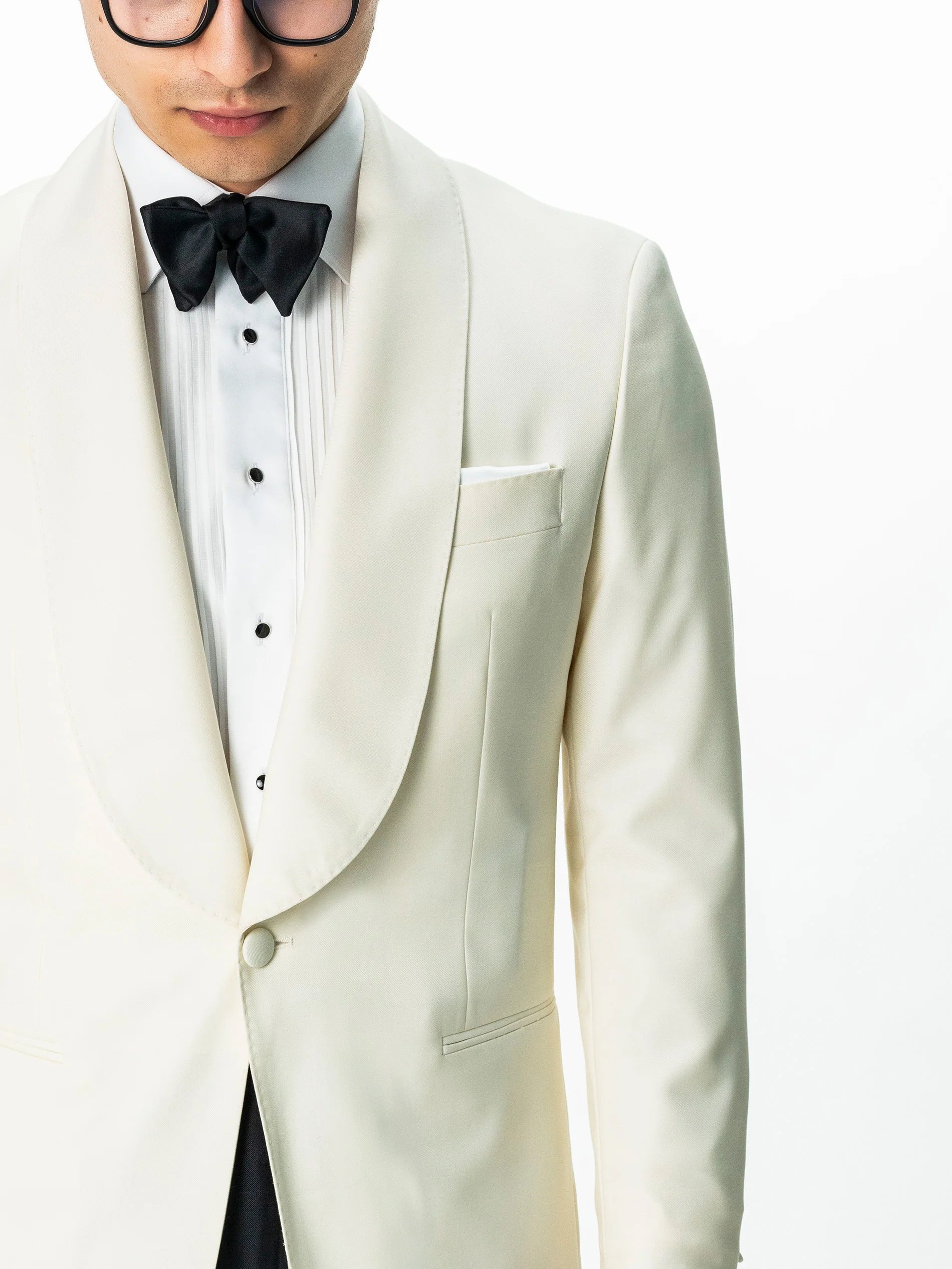 Costum Barbati Ceremonie Alb Pearl , creat din 100% tesatura fina de lana Vitalis Barberis, material confortabil de o calitate ridicată. Costumul este format din doua piese, sacou alb si pantaloni negri, acest contrast facandu-l foarte apreciat pentru o tinuta de ceremonie. Interiorul sacoului este unul căptușit în totaliate pe interior. Acesta se remarcă prin calitatea si confortul ridicat oferit de croiala si tesătura naturala existenta. Modelul sacoului si rever sal, la un singur nasture imbracat si pantalonii negrii fac acest costum o alegere inspirata pentru ceremonii si evenimente speciale de-a lungul intregului an, inspira o atentie la detalii deosebita si o atitudine sigura pe sine.