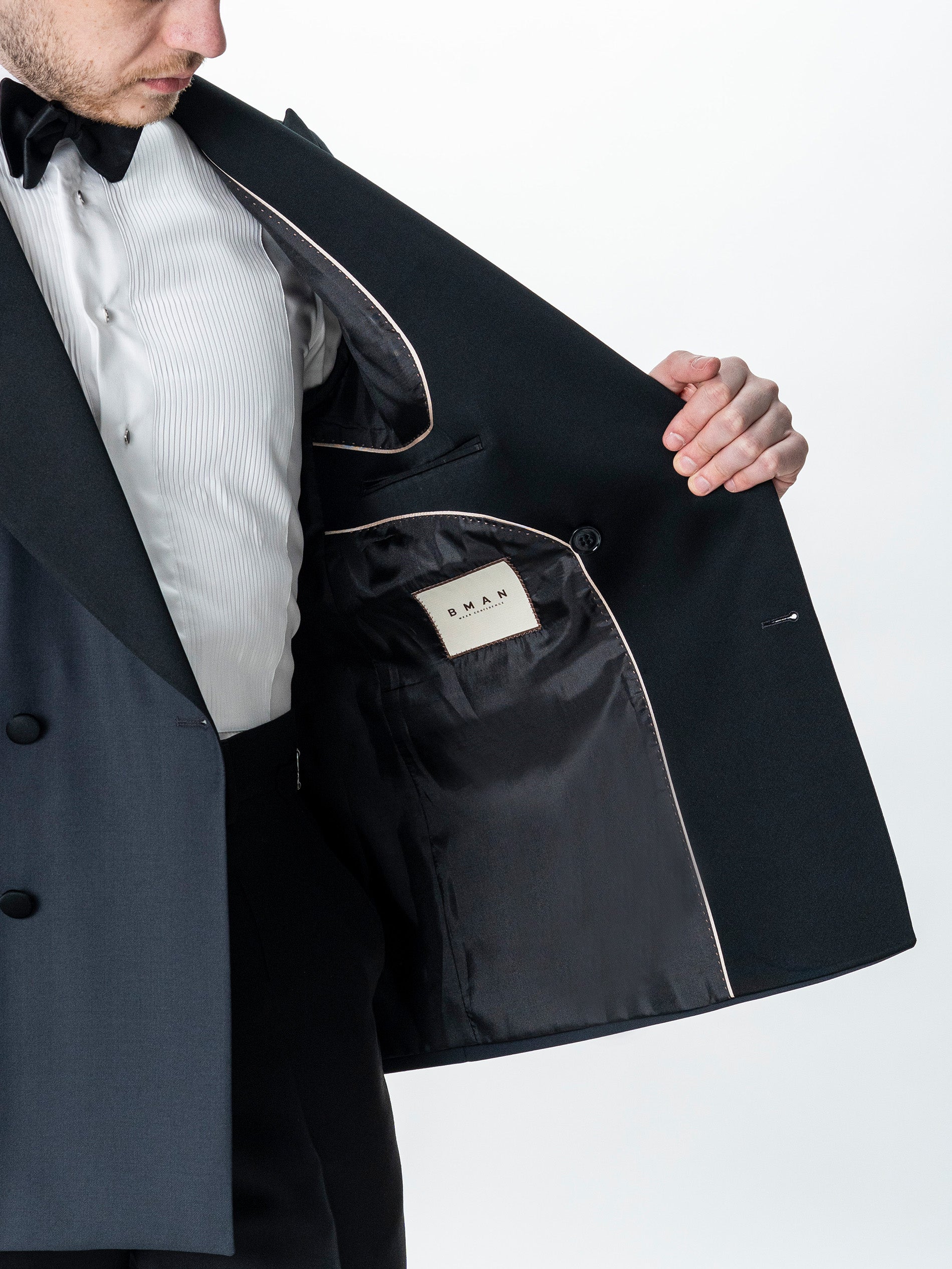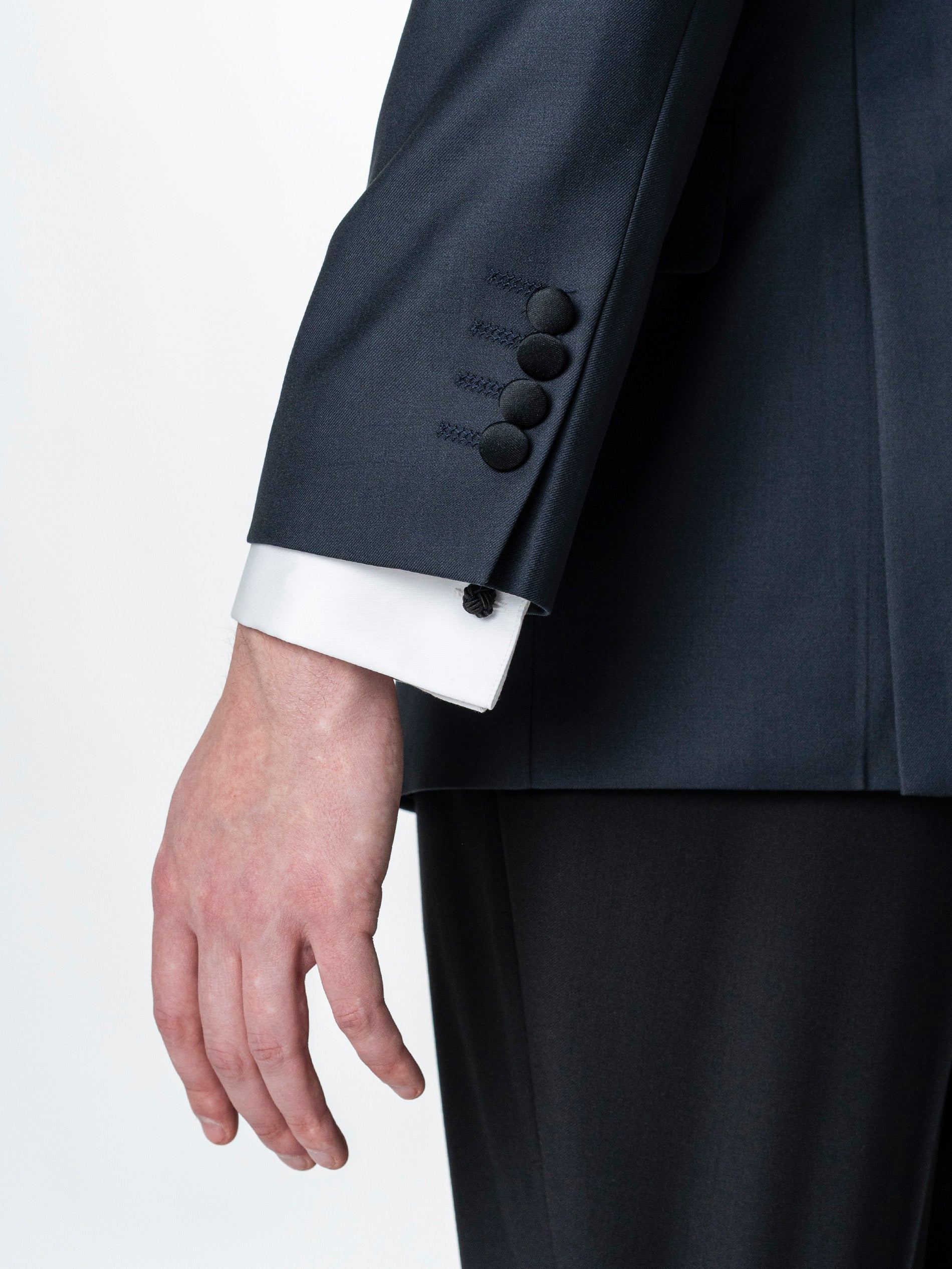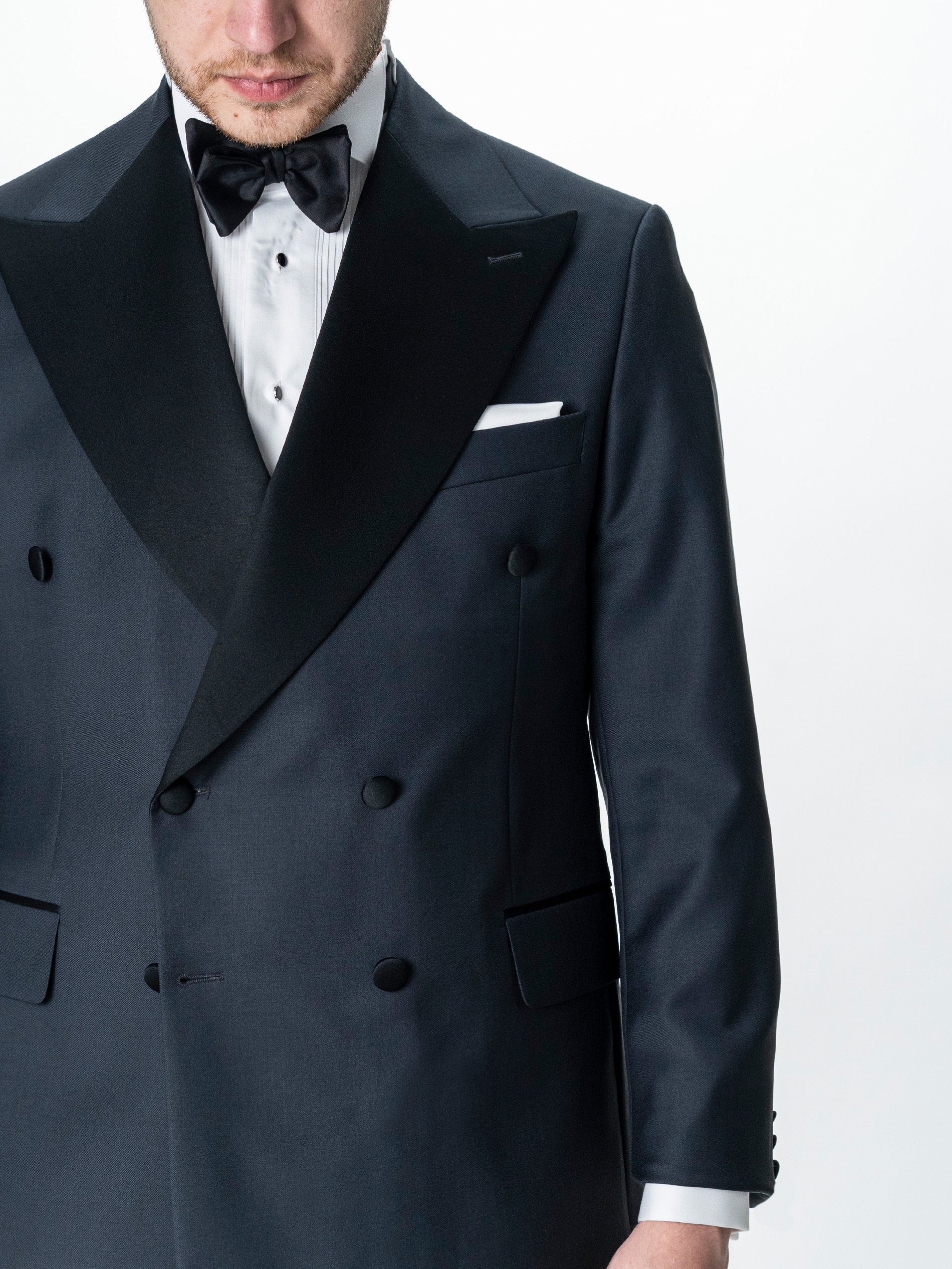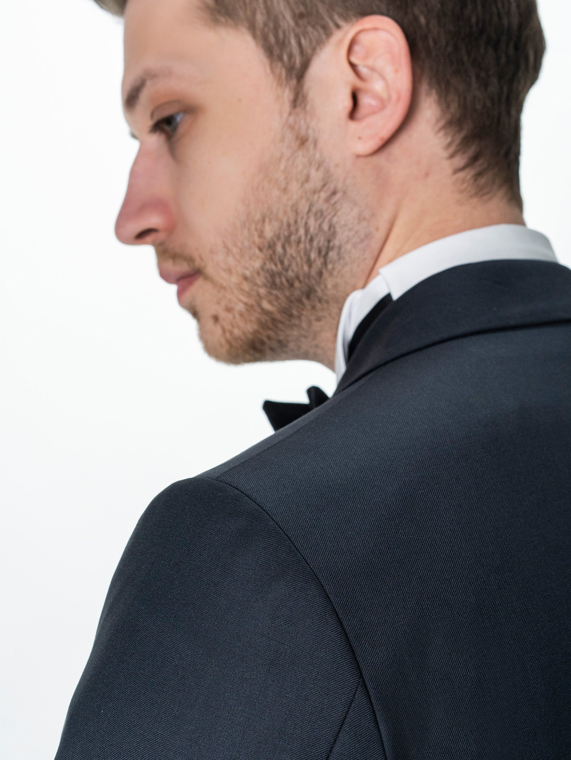 Costum Premium Barbati Ceremonie Gri Inchis Doua Randuri, creat din 100% tesatura fina de lana Vitale Barberis Canonico SuperBio 21 Microni, material confortabil de o calitate ridicata. Costumul este format din doua piese, rafinamentul facandu-l foarte apreciat pentru o tinuta de ceremonie. Interiorul sacoului este unul captusit in totaliate pe interior. Acesta se remarca prin calitatea si confortul ridicat oferit de croiala si tesatura naturala existenta. Modelul sacoului cu rever ascutit, la doua randuri de nasturi imbracati si pantalonii negrii fac acest costum o alegere inspirata pentru ceremonii si evenimente speciale de-a lungul intregului an, inspira o atentie la detalii deosebita si o atitudine sigura pe sine.