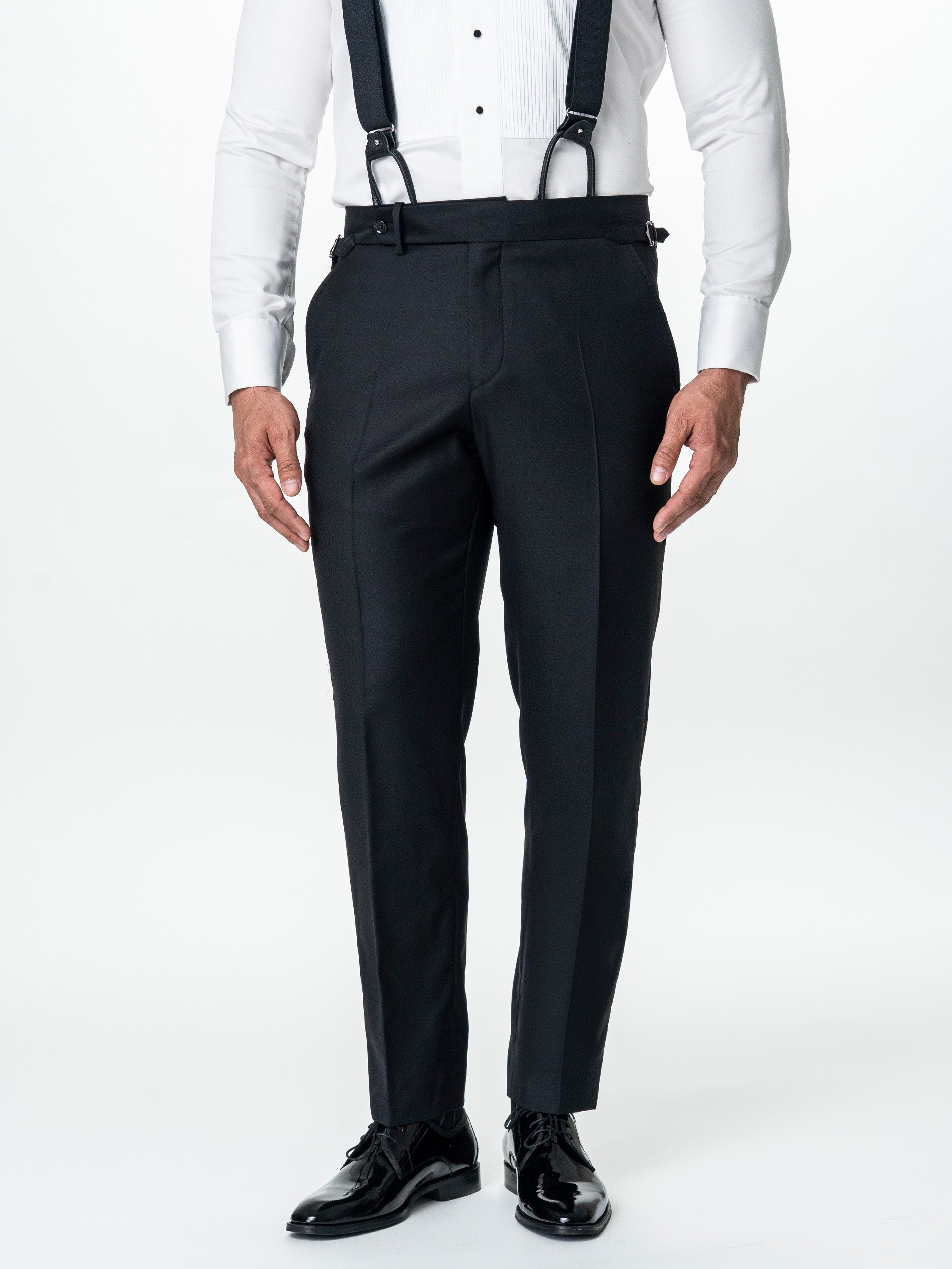Costum Ceremonie Barbati Smoking Negru Mat Lana Vitale Barberis BMan341 reprezinta expresia pura a elegantei clasice, construit pe o linie curata si echilibrata, unde fiecare detaliu este gandit pentru o prezenta impecabila. Reverele late tip ascutit, finisate cu discretie, se integreaza natural in structura sacoului, oferind continuitate si rafinament fara excese. Tesatura din 100% lana Vitale Barberis finete 110’S aduce un plus de finete si confort, avand o cadere fluida si o textura placuta la atingere. Sacoul este completat de pantaloni cu linie dreapta, care alungesc silueta si pastreaza o estetica precisa, potrivita pentru evenimente formale si ocazii speciale. Este un ansamblu care transmite siguranta, echilibru si o eleganta discreta, usor de integrat in orice context black tie.