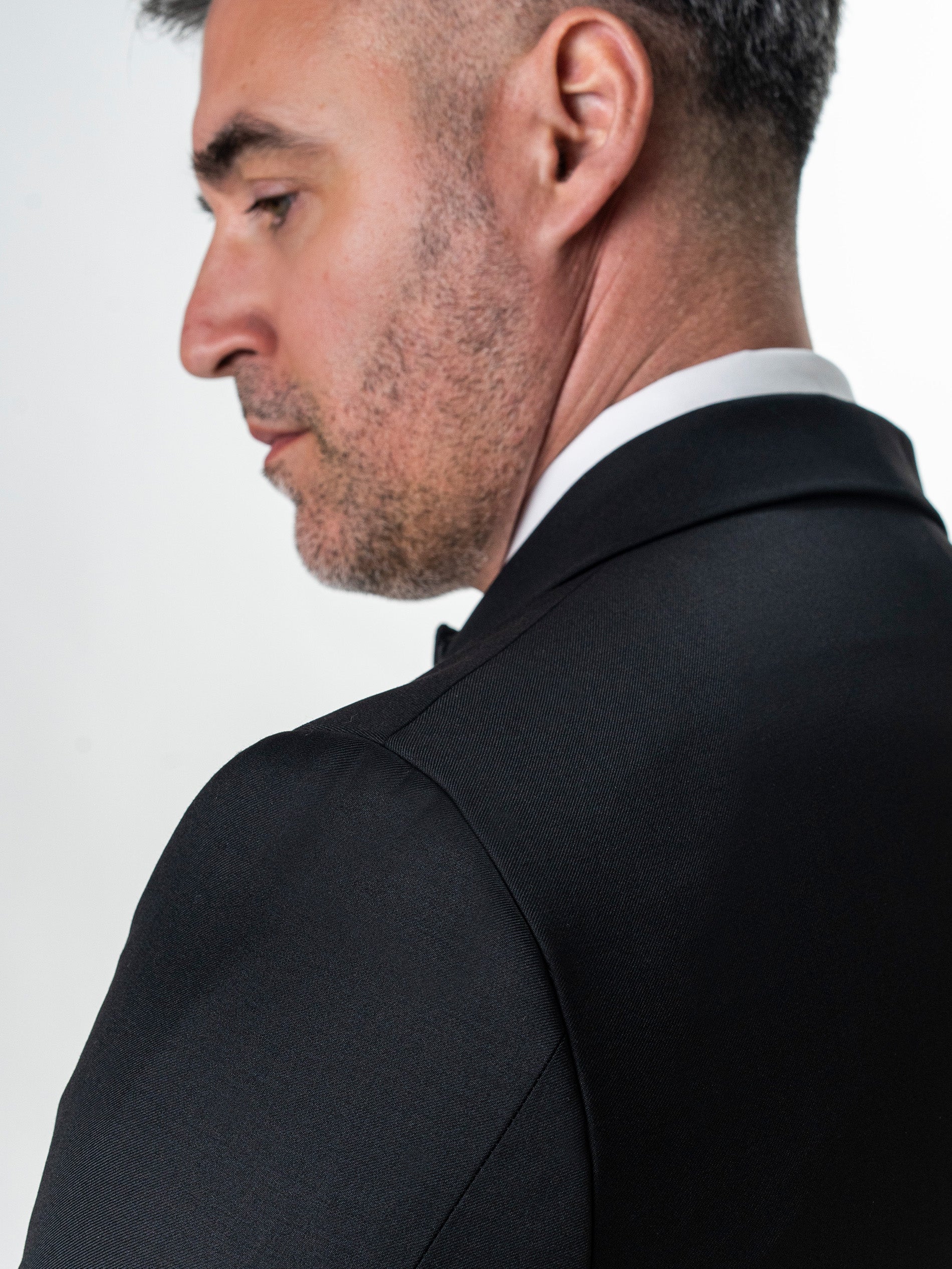 Costum Mire Smoking Negru din 100% Lana Vitale Barberis BMan346 reinterpretat in varianta double-breasted aduce un plus de prezenta si rafinament unei piese clasice. Reverele late, ascutite, ample si fluide, creeaza o linie continua care evidentiaza zona pieptului si confera tinutei un aer sigur si bine definit. Constructia incrucisata adauga profunzime vizuala, pastrand in acelasi timp echilibrul si eleganta specifice unui ansamblu formal. Realizat din 100% lana Vitale Barberis 110’S, materialul se remarca prin finete si o cadere naturala, oferind confort si libertate de miscare pe durata intregii purtari. Pantalonii completeaza armonios tinuta, mentinand o linie curata si alungita. Este o alegere potrivita pentru evenimente unde prezenta trebuie sa fie clara, sofisticata si bine controlata.