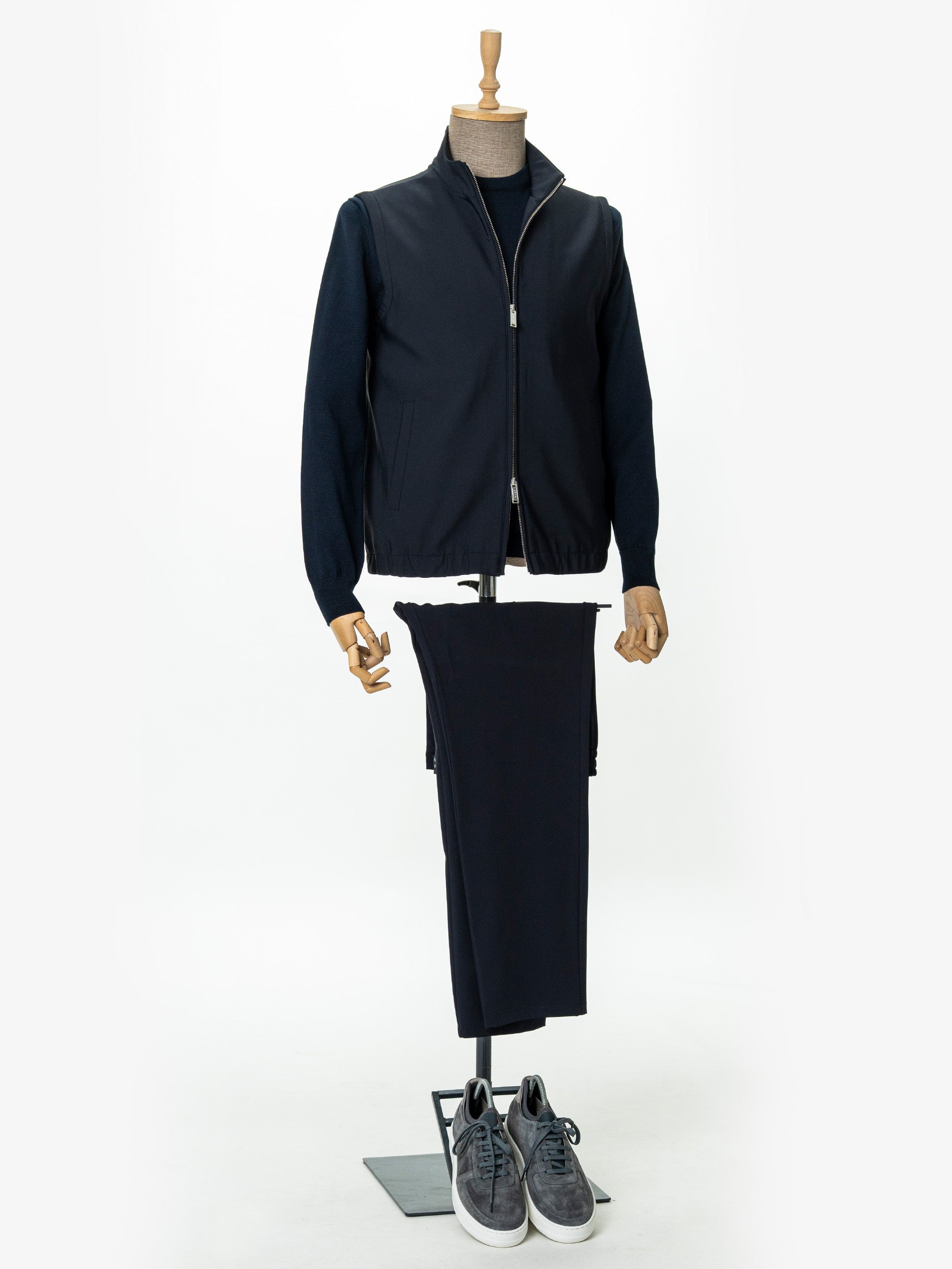 8. Vesta Premium Tip Jacketa Fara Maneci Bleumarin BMan0003 imbina estetica moderna cu functionalitatea premium, oferind o silueta curata si rafinata. Tesatura tehnica, cu o compozitie echilibrata de poliamida, poliester si elastan, asigura elasticitate, rezistenta si confort pe tot parcursul zilei.