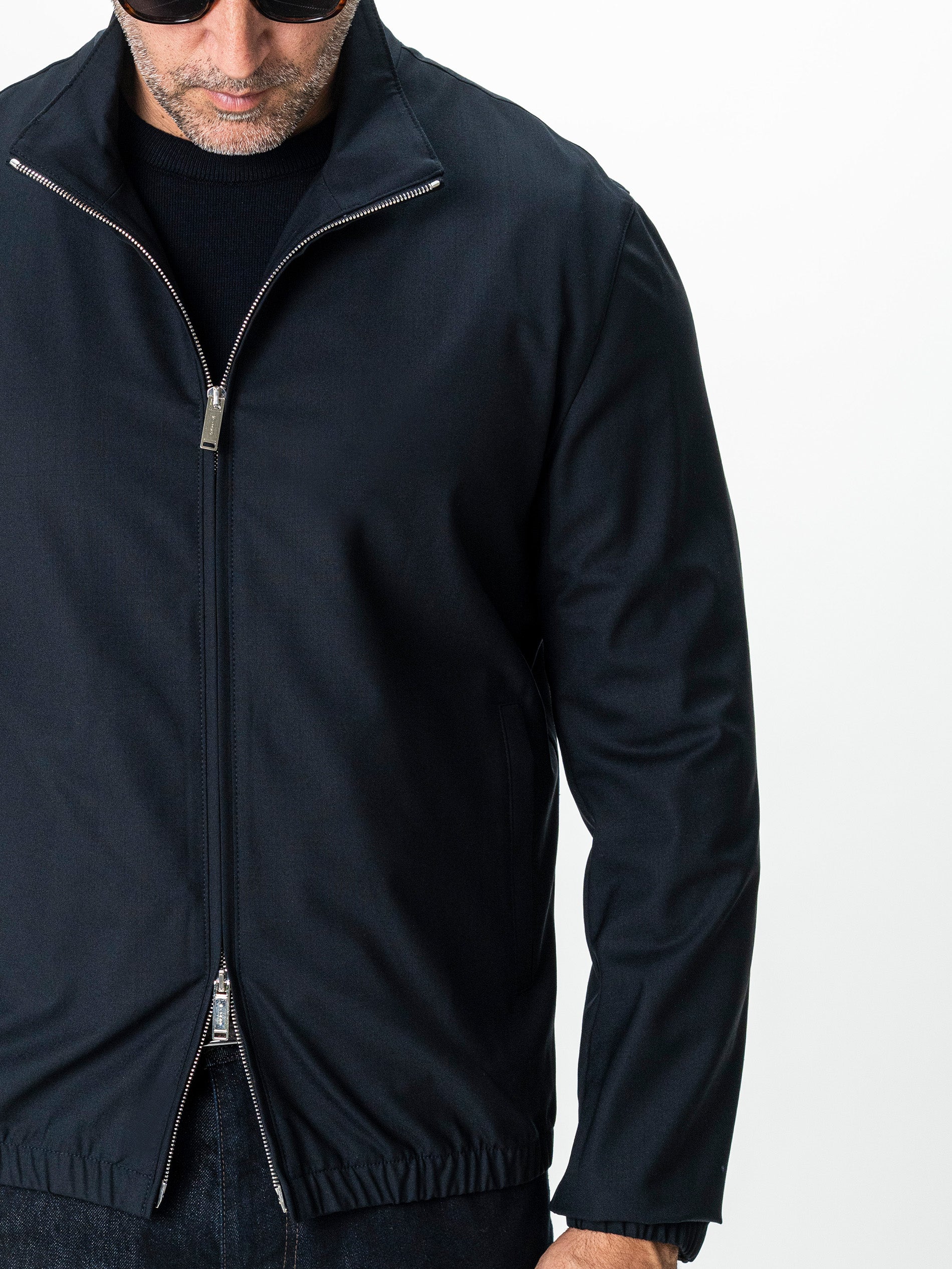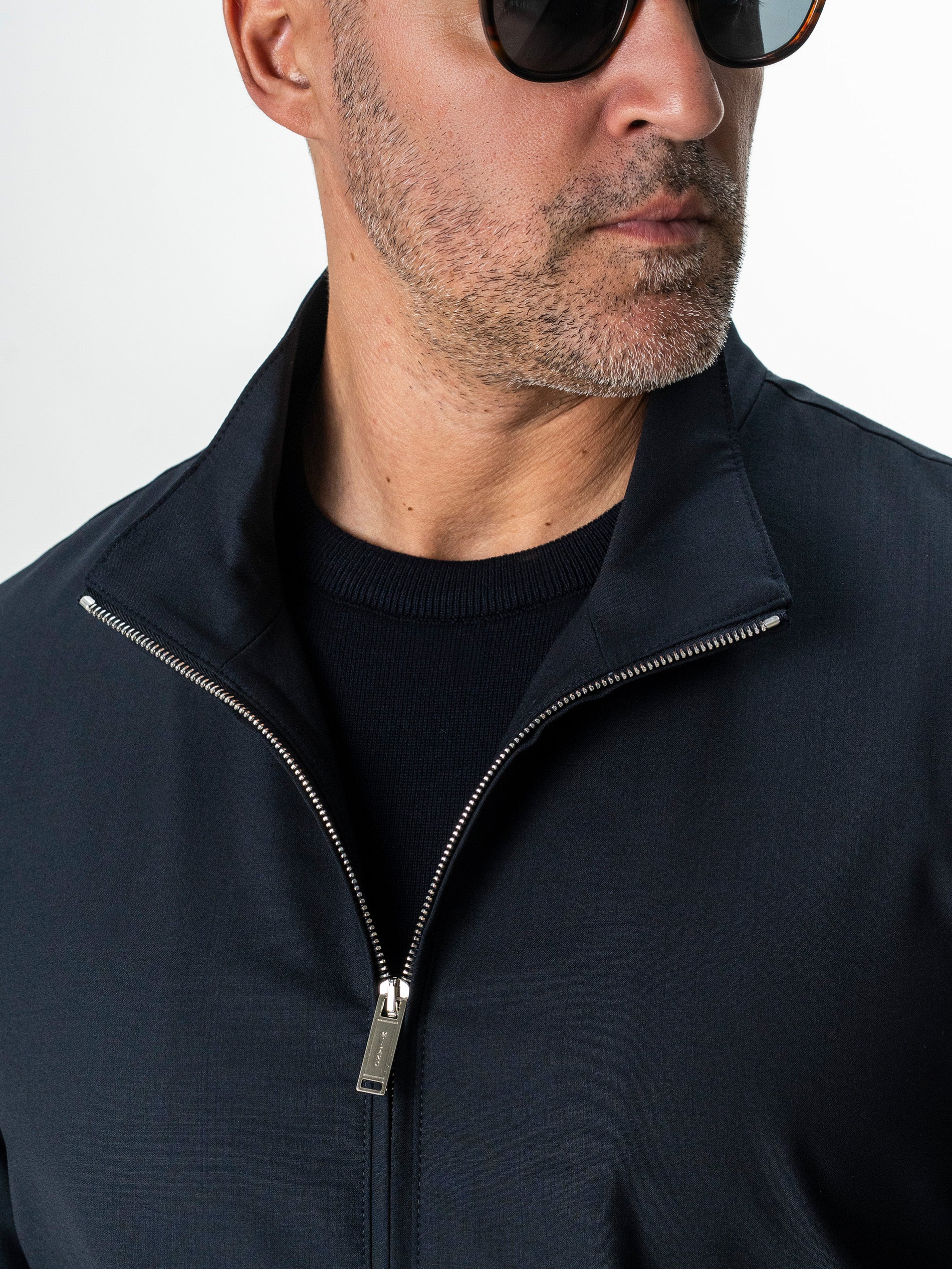 Jacheta Premium Barbati Bleumarin Din Lana BMan0241 este realizat dintr-o tesatura premium cu continut ridicat de lana (66%), imbinand confortul natural al fibrelor fine cu rezistenta poliesterului si elasticitatea oferita de elastan. Materialul are o textura usor groasa, ceea ce il face potrivit pentru sezonul de toamna, mentinand in acelasi timp o silueta curata si moderna. Fermoarul dublu, mansetele elastice si croiala lejera asigura libertate de miscare si un look rafinat in acelasi timp.