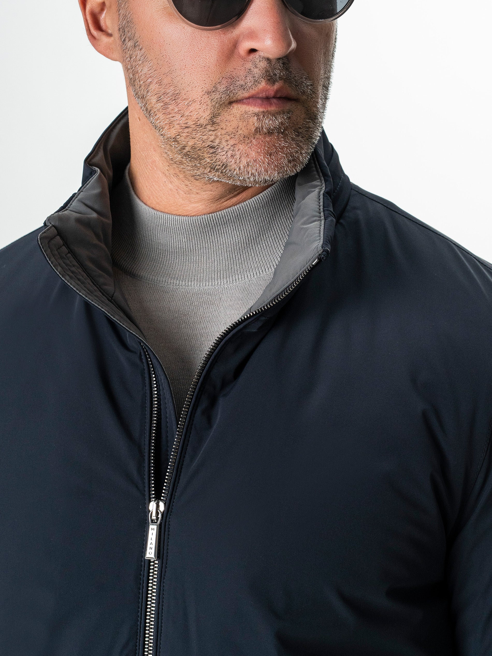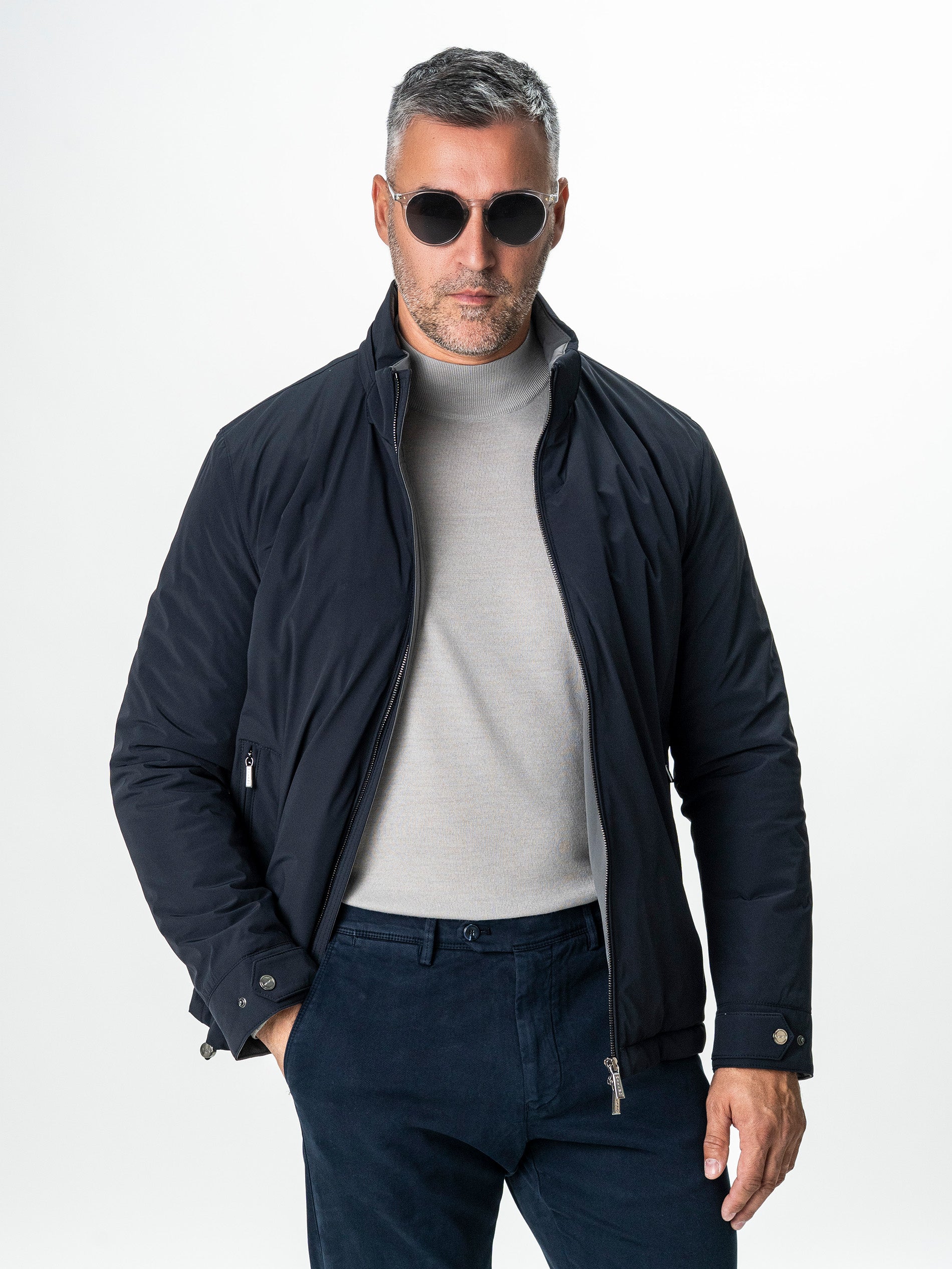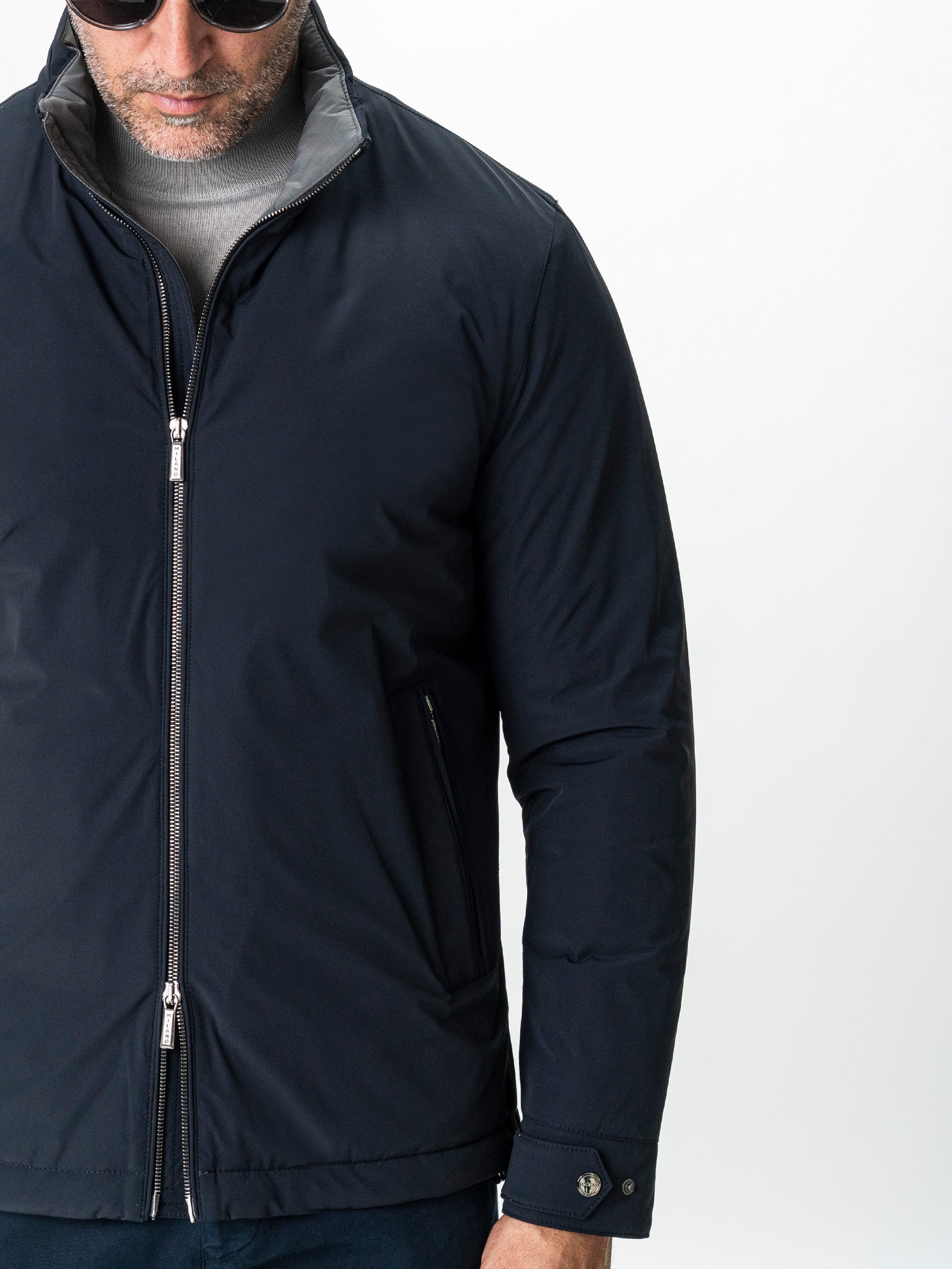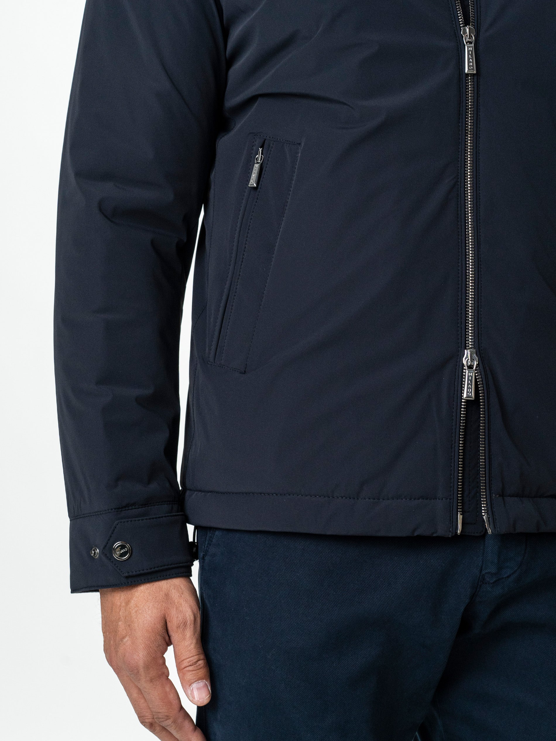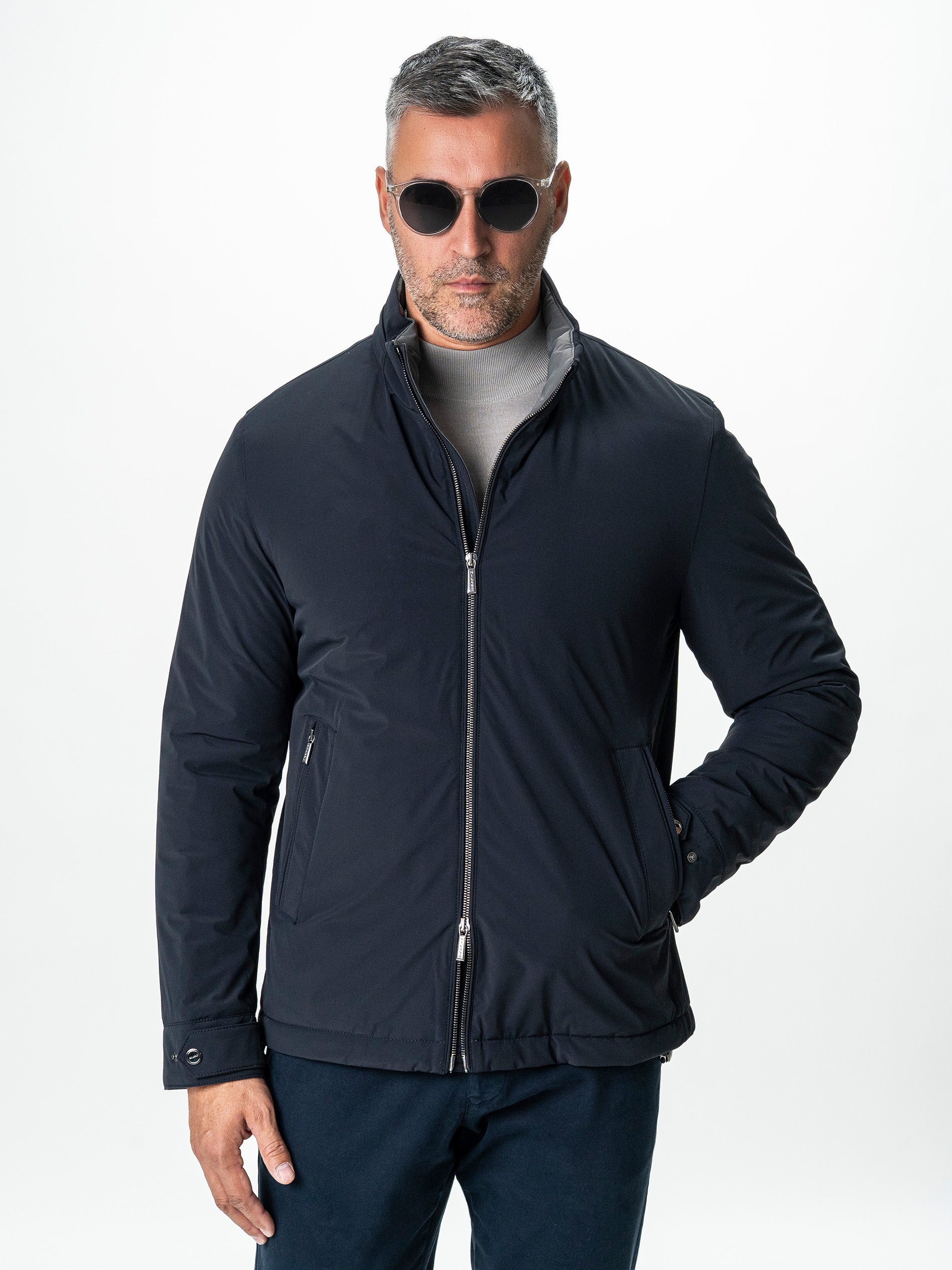 ✔ Închidere: Fermoar metalic frontal + capse la manșete pentru reglaj