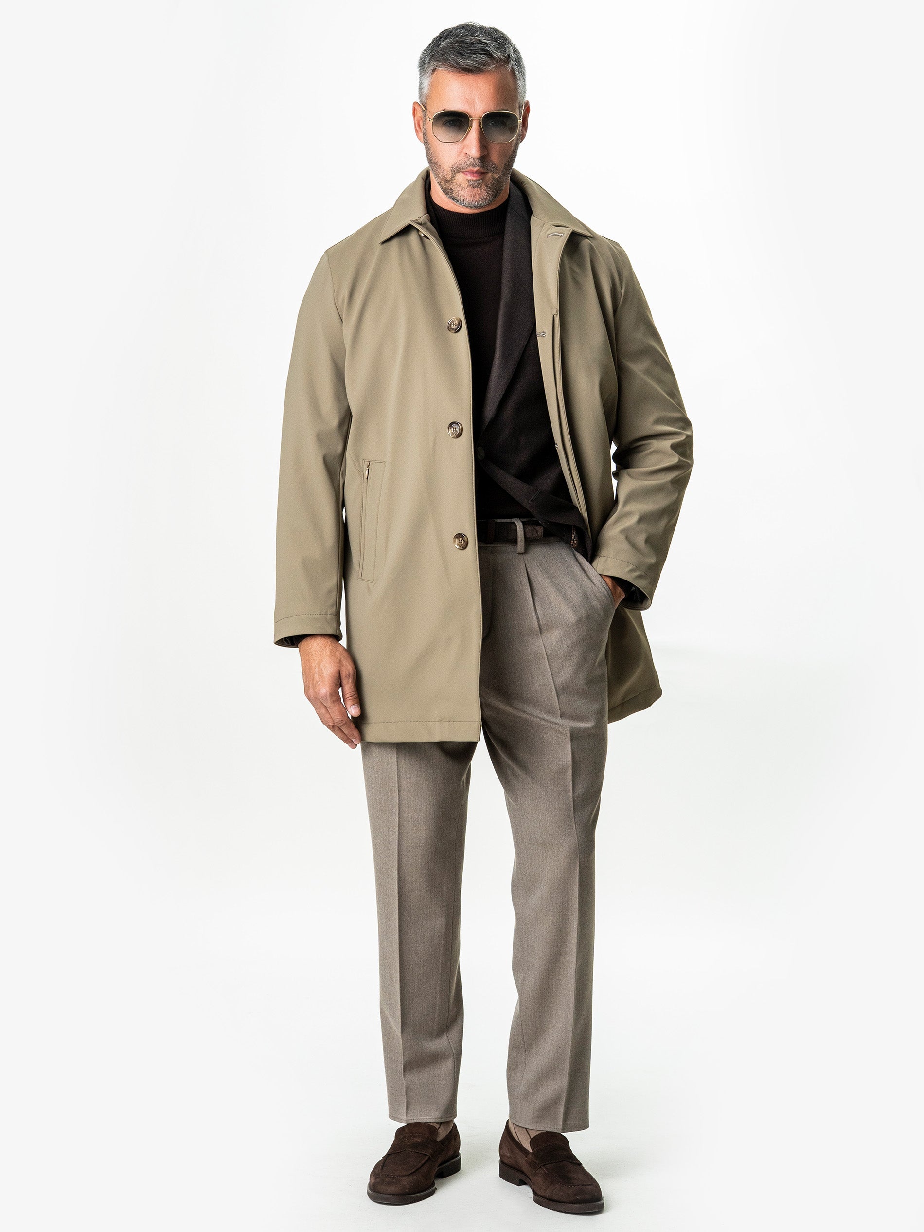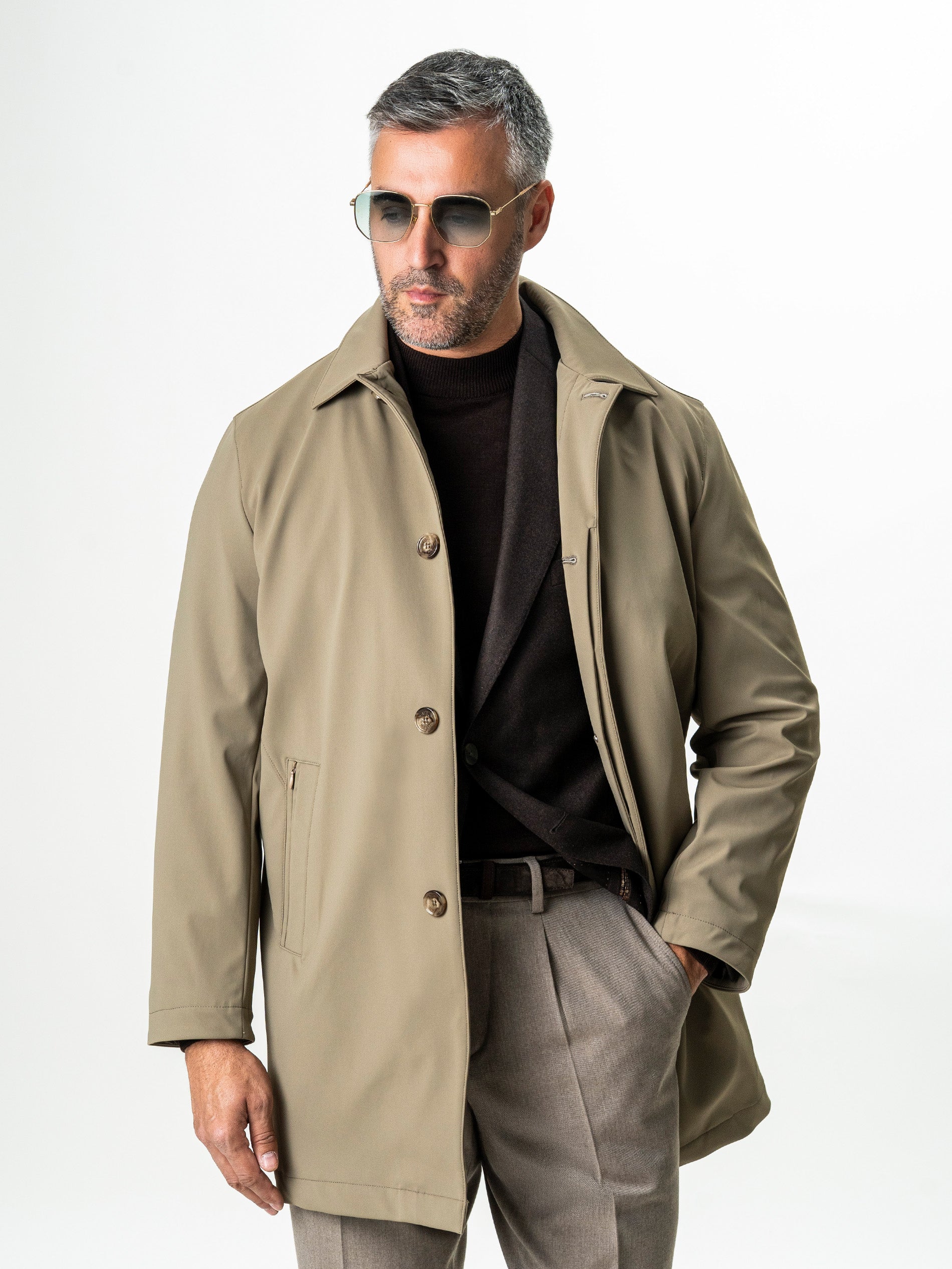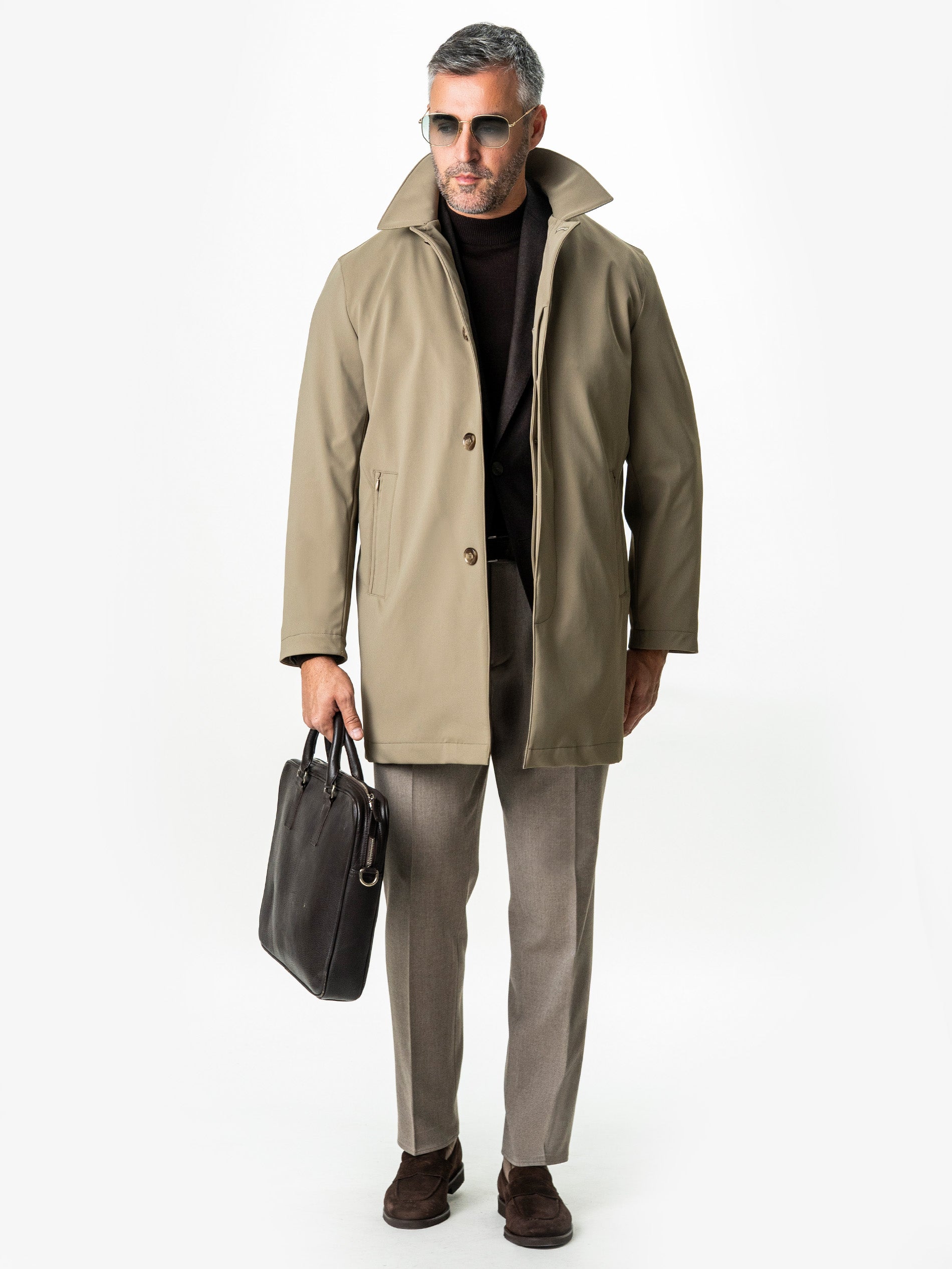 Geaga Tip Pardesiu Business Cappuccino BMan0001 exprima perfect echilibrul dintre rafinament si functionalitate. Croiala curata, liniile fluide si nuanta sofisticata de bej-verzui creeaza o piesa moderna, ideala pentru garderoba urbana. Materialul tehnic de ultima generatie ofera elasticitate, respirabilitate si protectie impotriva vantului, transformand aceasta jacheta intr-o alegere impecabila atat pentru oras, cat si pentru calatorii. Este o reinterpretare contemporana a stilului clasic sartorial, cu o prezenta subtil luxoasa.