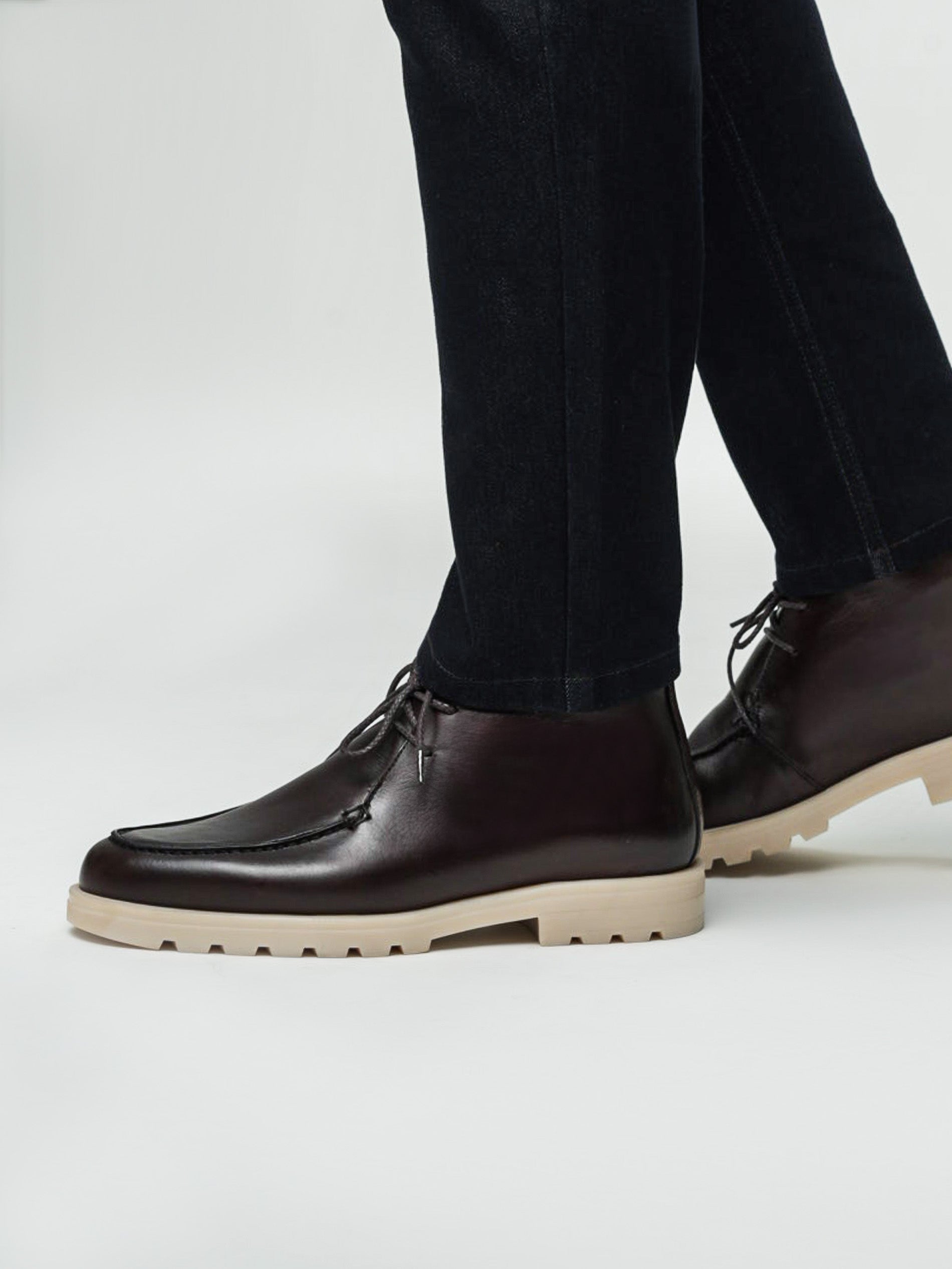 Ghete Barbati Cafenii Model Chukka Din 100% Piele BMan148 sunt o interpretare moderna a elegantei relaxate. Cu o silueta curata si o textura catifelata, aduc echilibrul perfect intre rafinament si confort cotidian. Talpa robusta ofera stabilitate, iar constructia premium din piele naturala promite rezistenta in timp si o senzatie autentica la purtare. Un model versatil, potrivit atat pentru tinute smart-casual, cat si pentru momentele de weekend cu stil.