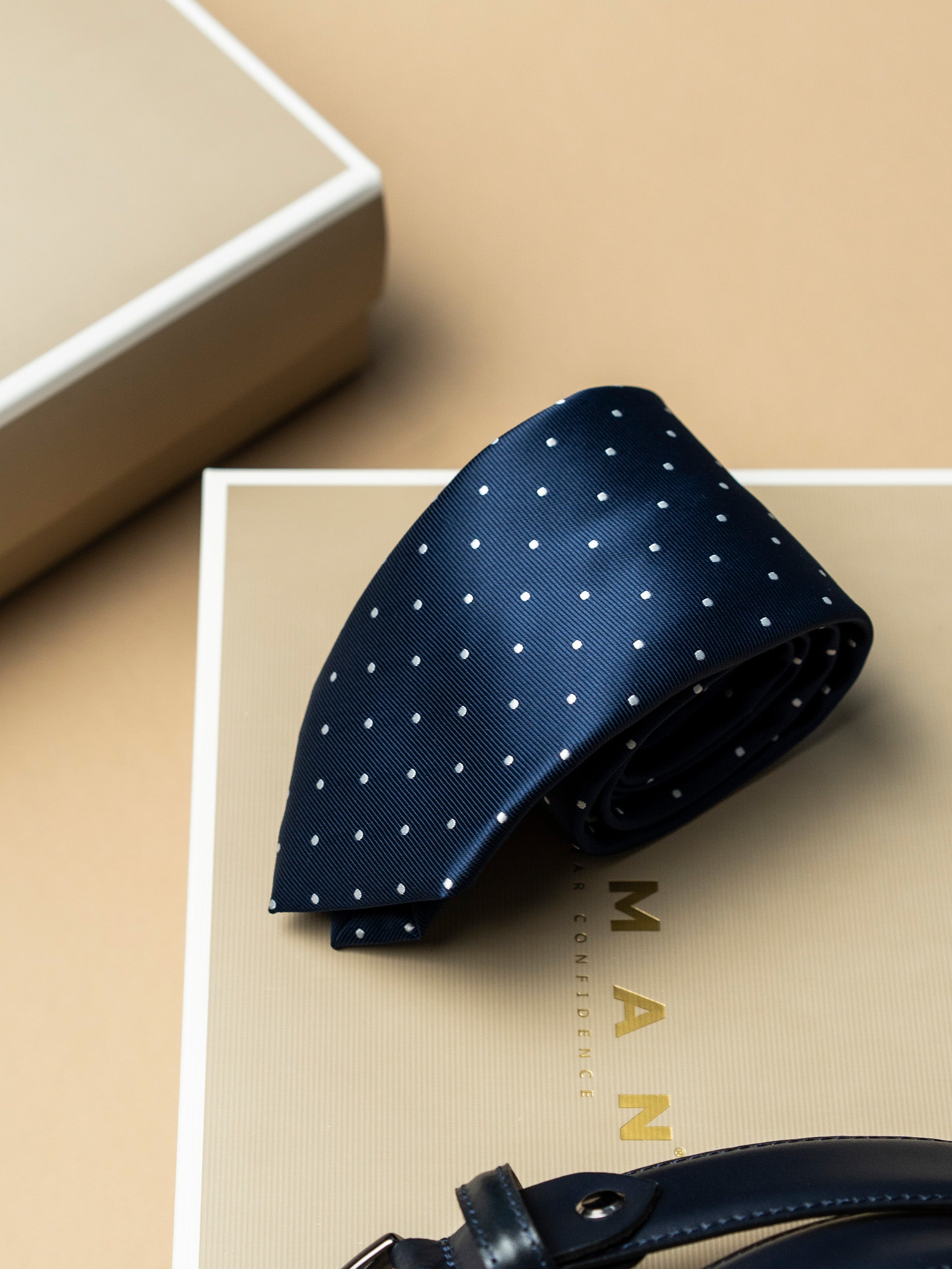 1. Cravata Eleganta & Business Barbati Bleumarin Imprimeu Puncte Albe Bman919