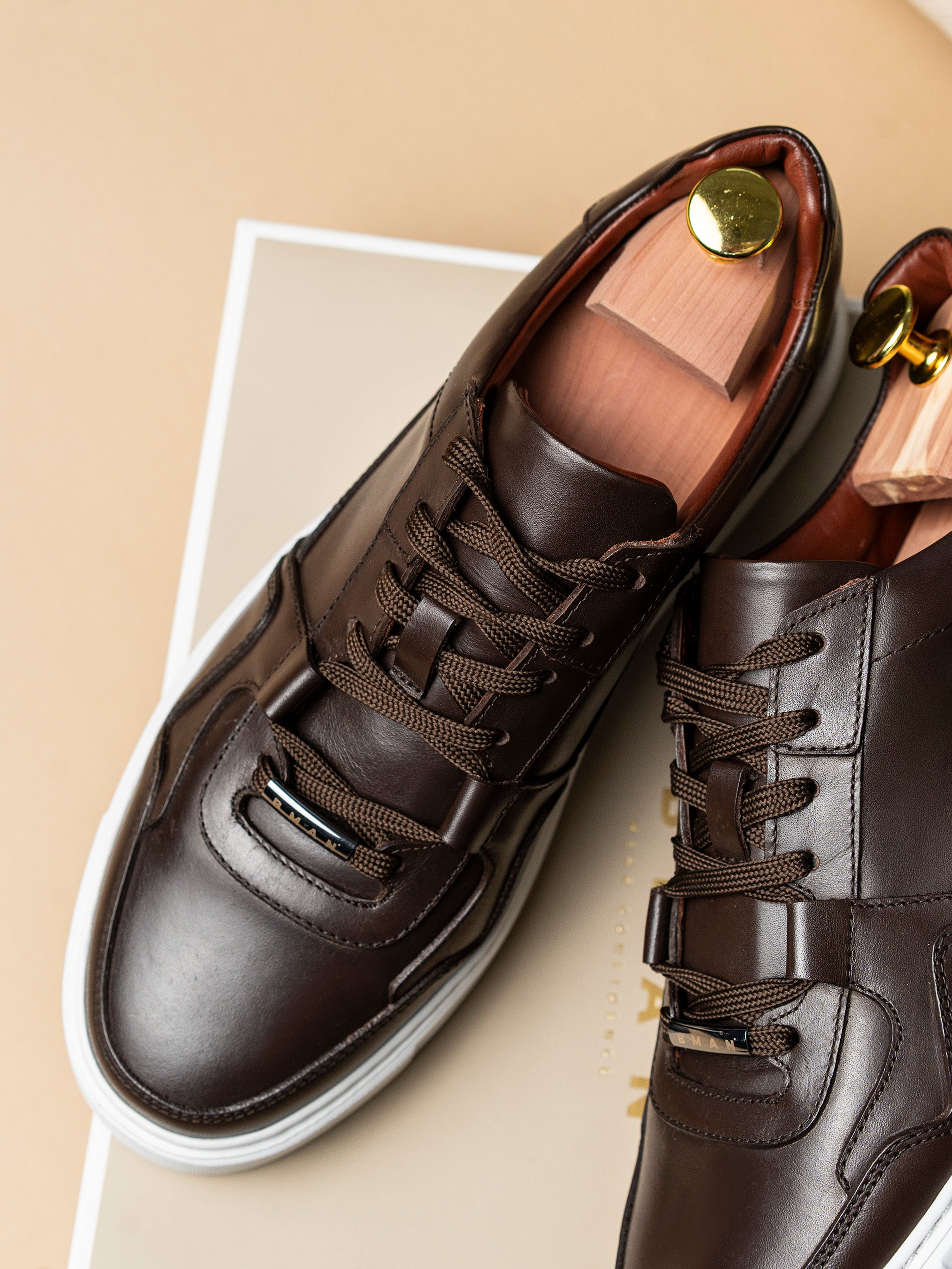• 1. Pantofi Casual Barbati Sneakers Maro Inchis Din 100% Piele Naturala BMan0353 sunt confectionati din piele naturala 100%, sireturi de culoare maro, iar talpa din spuma eva prezinta un confort ridicat in purtarea zilnica.