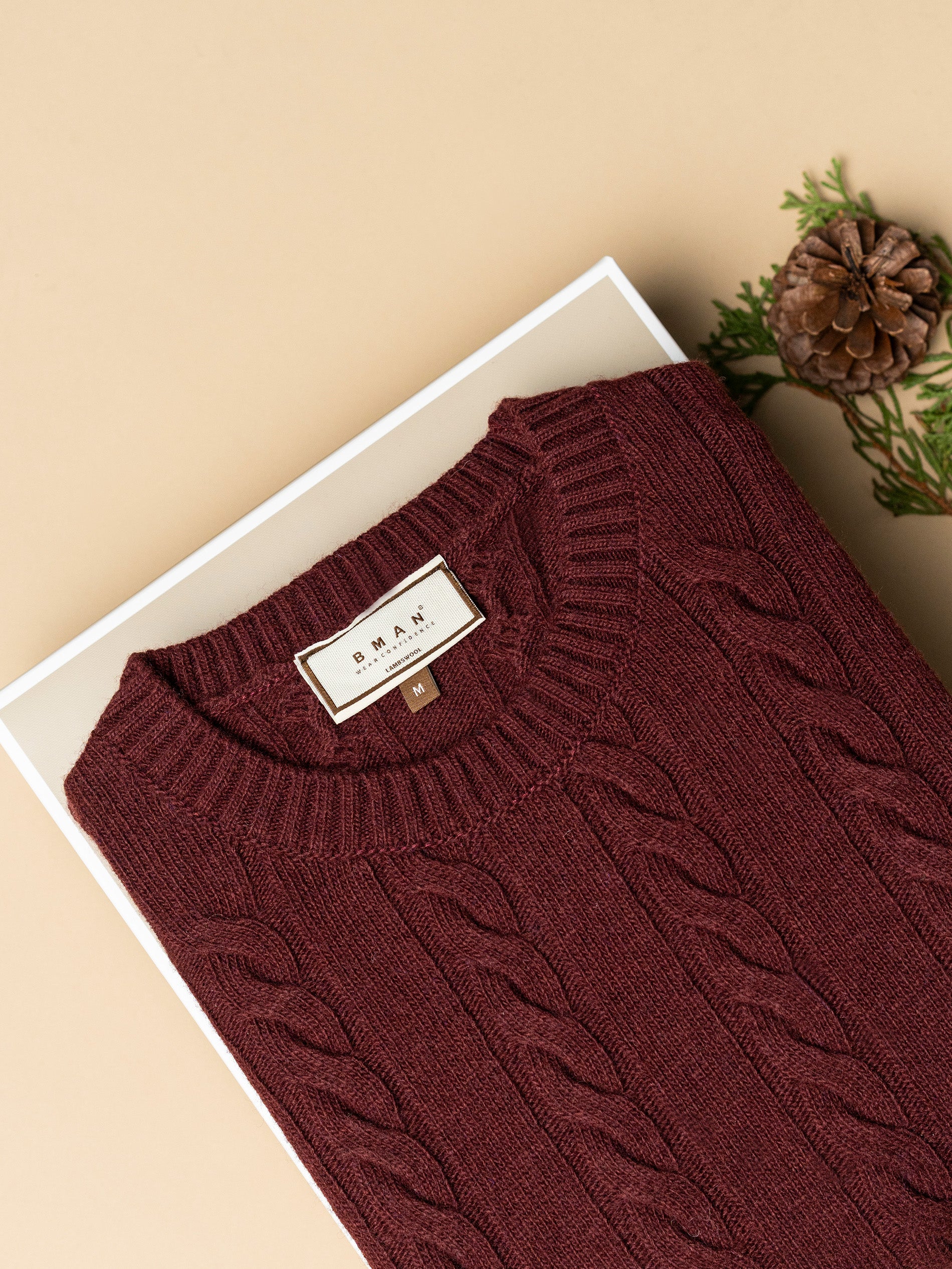 • 1. Pulover Barbati Bordo Toamna & Iarna Din 100% Lambswool Torsada BMan0010, cu un sofisticat imprimeu torsadă, este alegerea ideală pentru a vă menține călduros și stilat în sezonul rece.