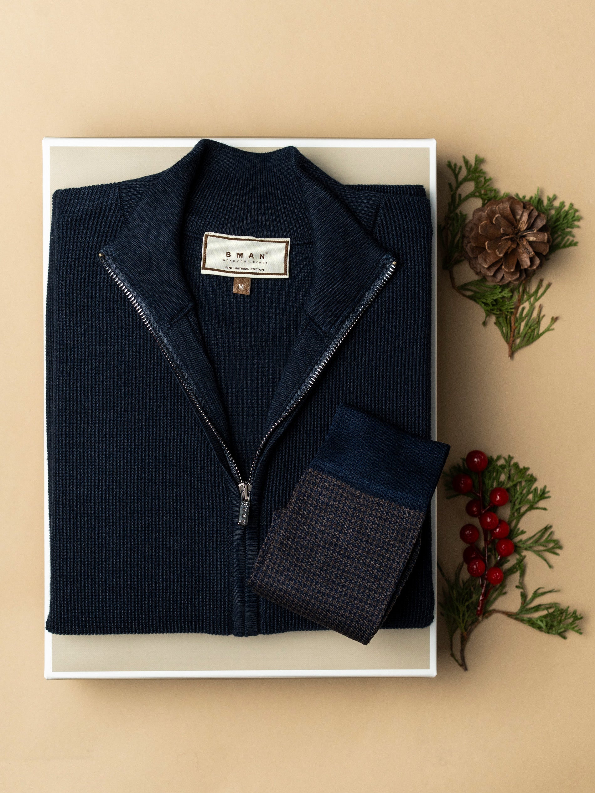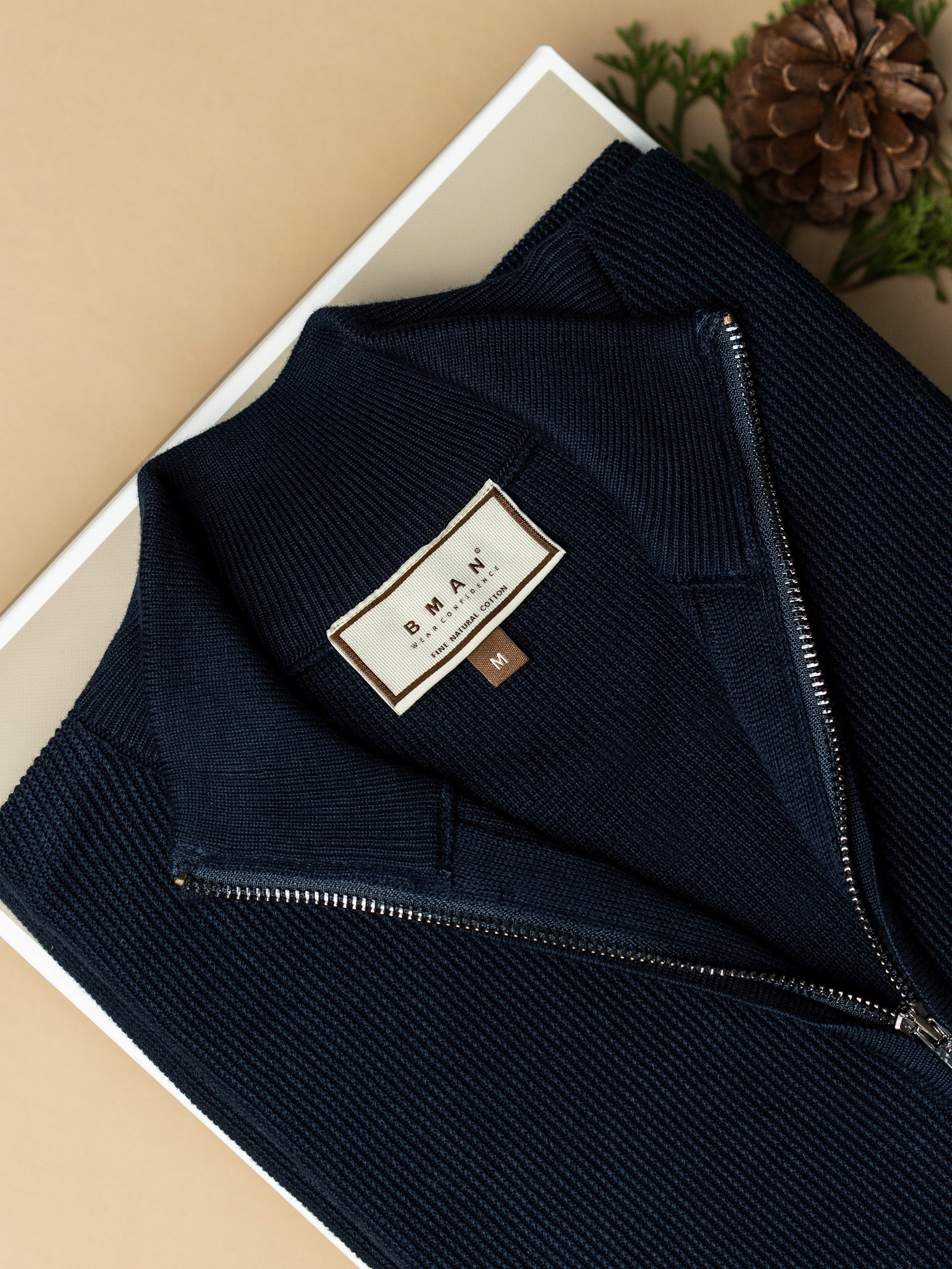1. Pulover Barbati Bleumarin Cu Fermoar 100% Bumbac BMan0029 este definitia confortului rafinat: tricotajul fin din bumbac 100% are o textura discreta, cu nervuri subtile care contureaza o silueta eleganta si moderna.