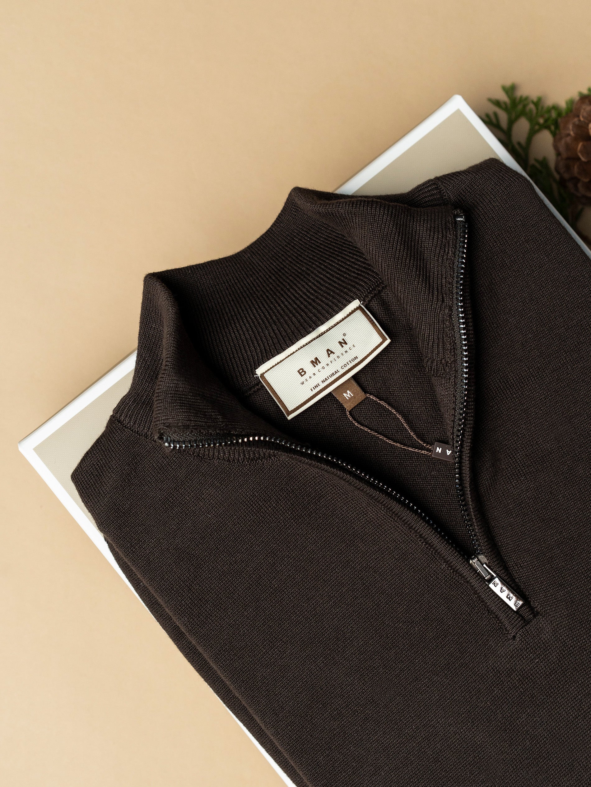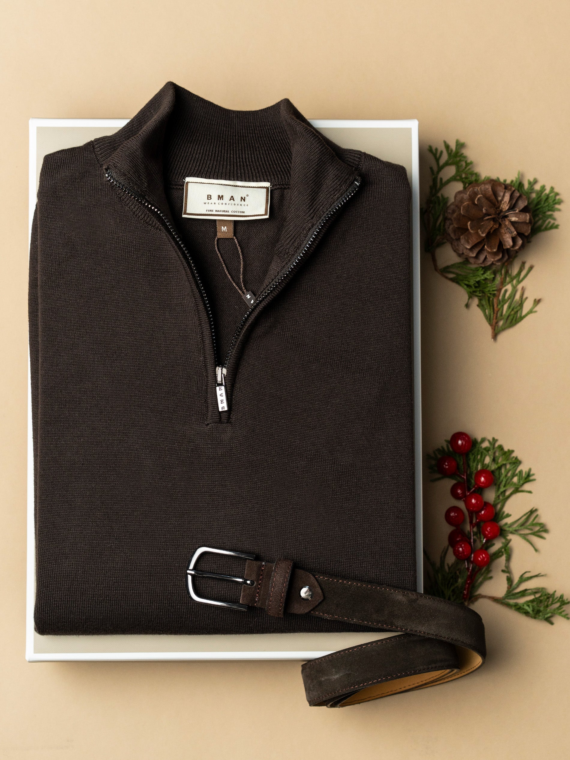 1. Pulover Cu Fermoar Office Barbati Maro Inchis Lana Merinos Falco BMan0003, un esențial pentru sezonul racoros de toamnă și iarnă, perfect adaptat pentru mediul de birou, business, și nu numai.