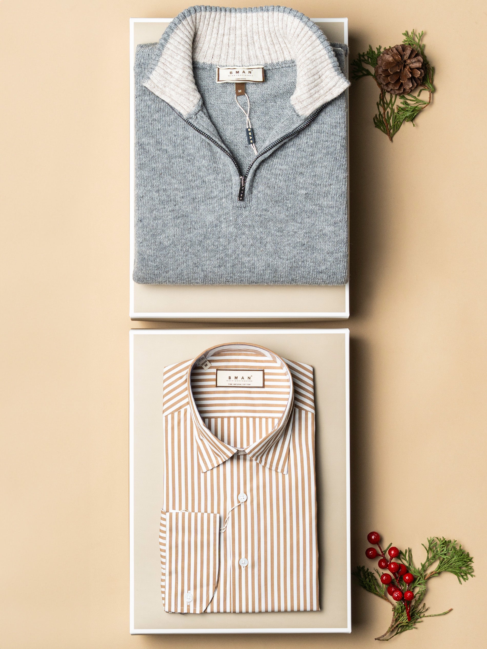 Pachet Cadou Barbati Pulover Cu Camasa Bman0118