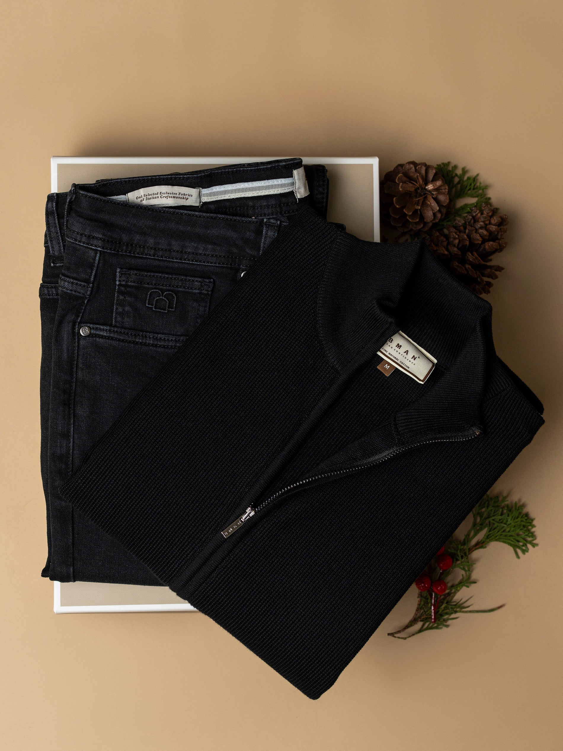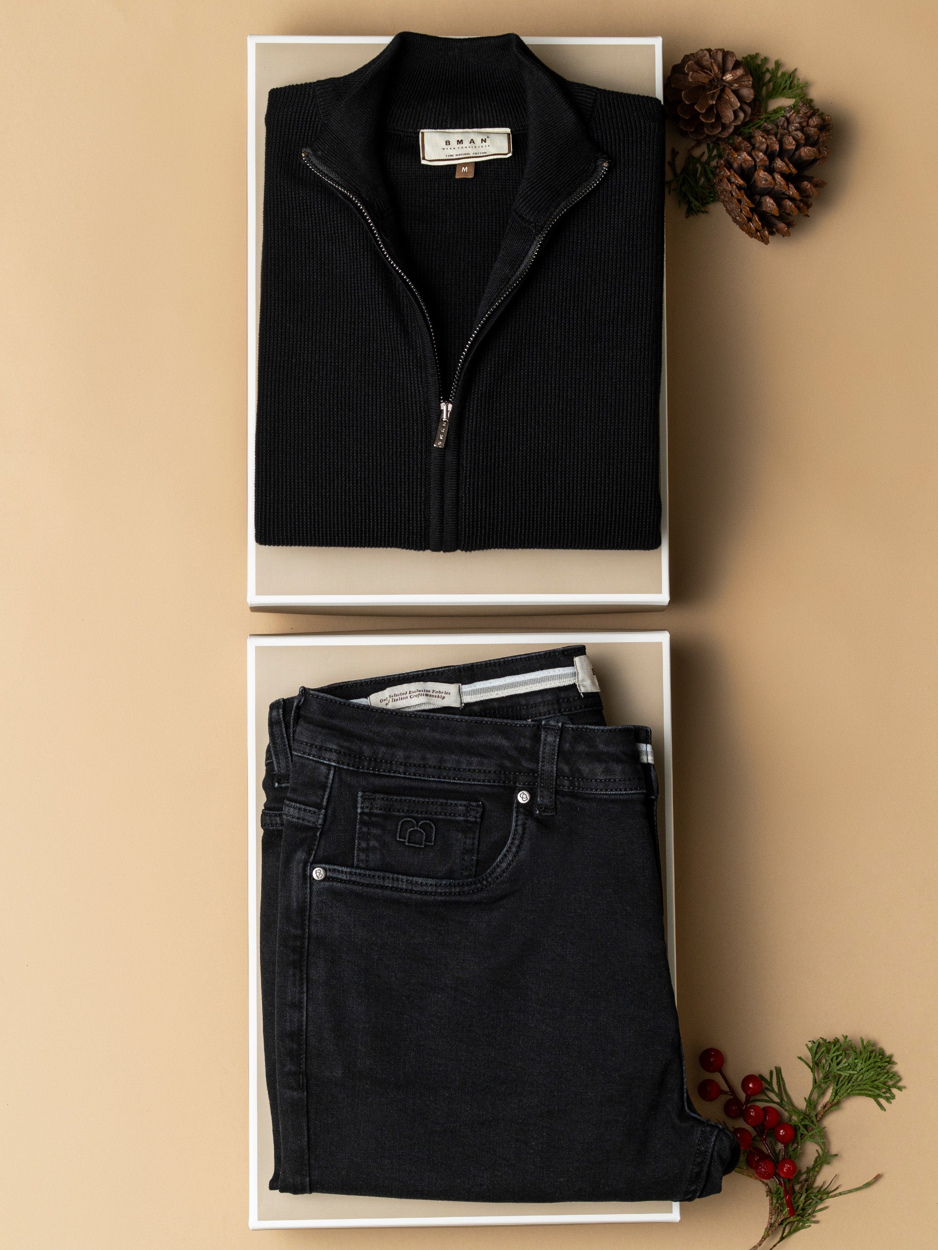 Pachet Cadou Barbati Pulover Cu Fermoar Si Blugi Bman0078