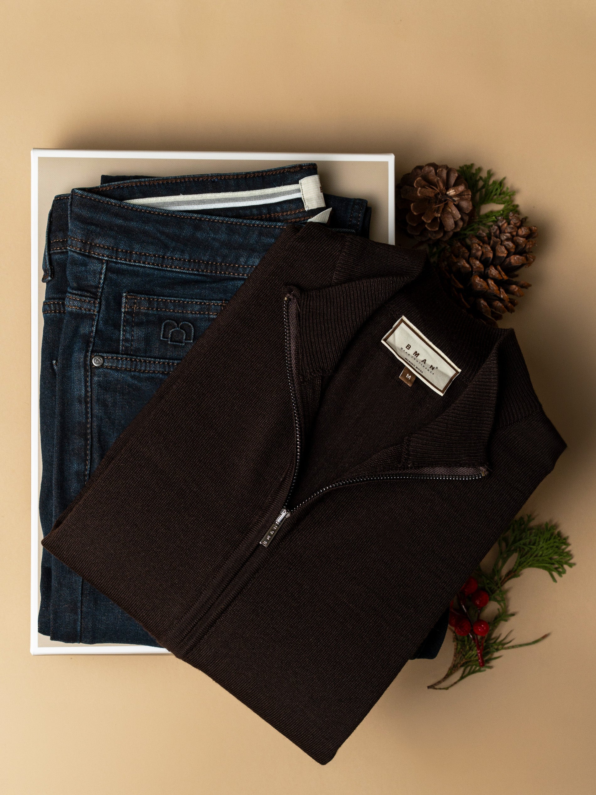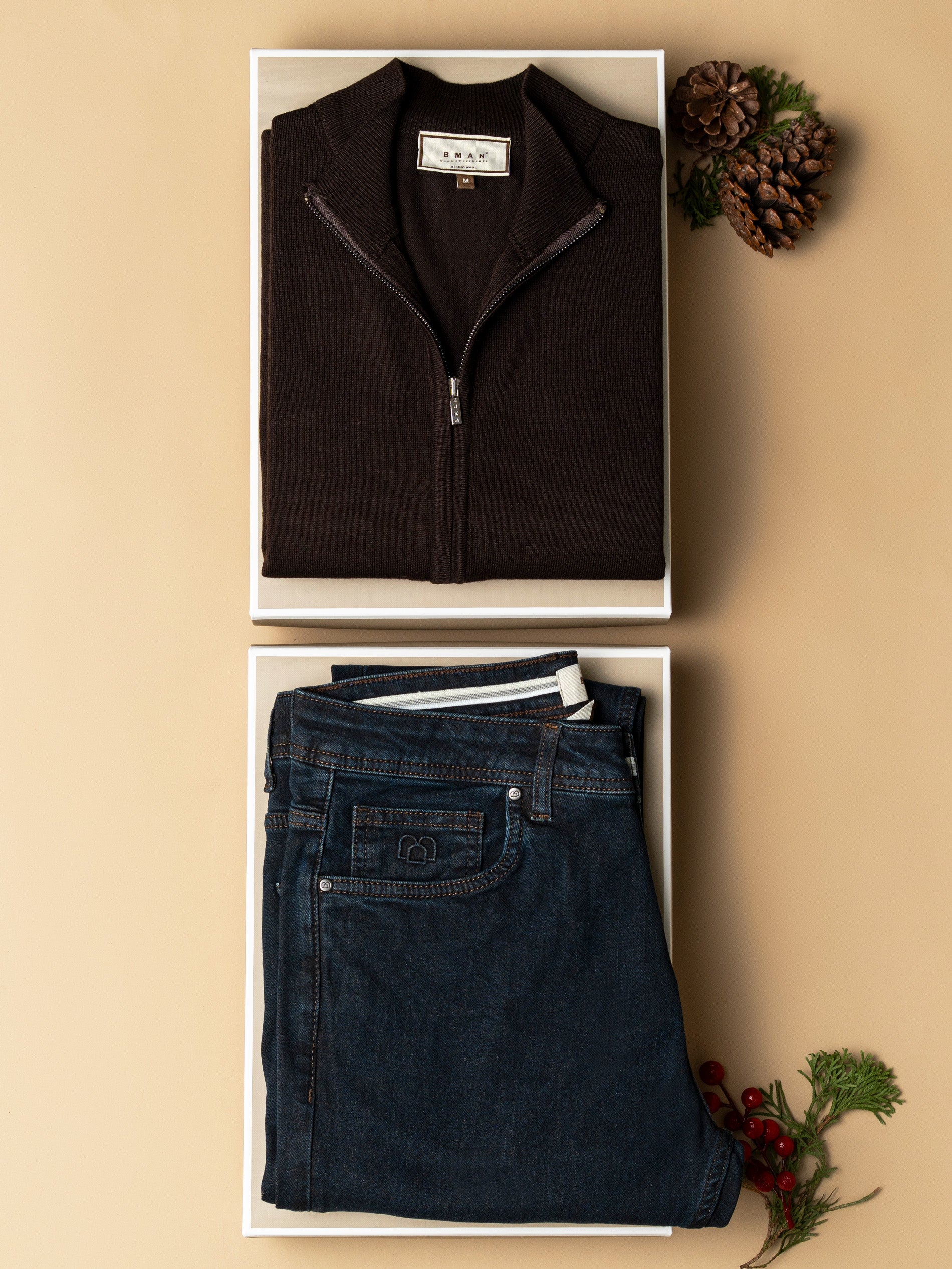 Pachet Cadou Barbati Pulover Cu Fermoar Si Blugi Bman0085