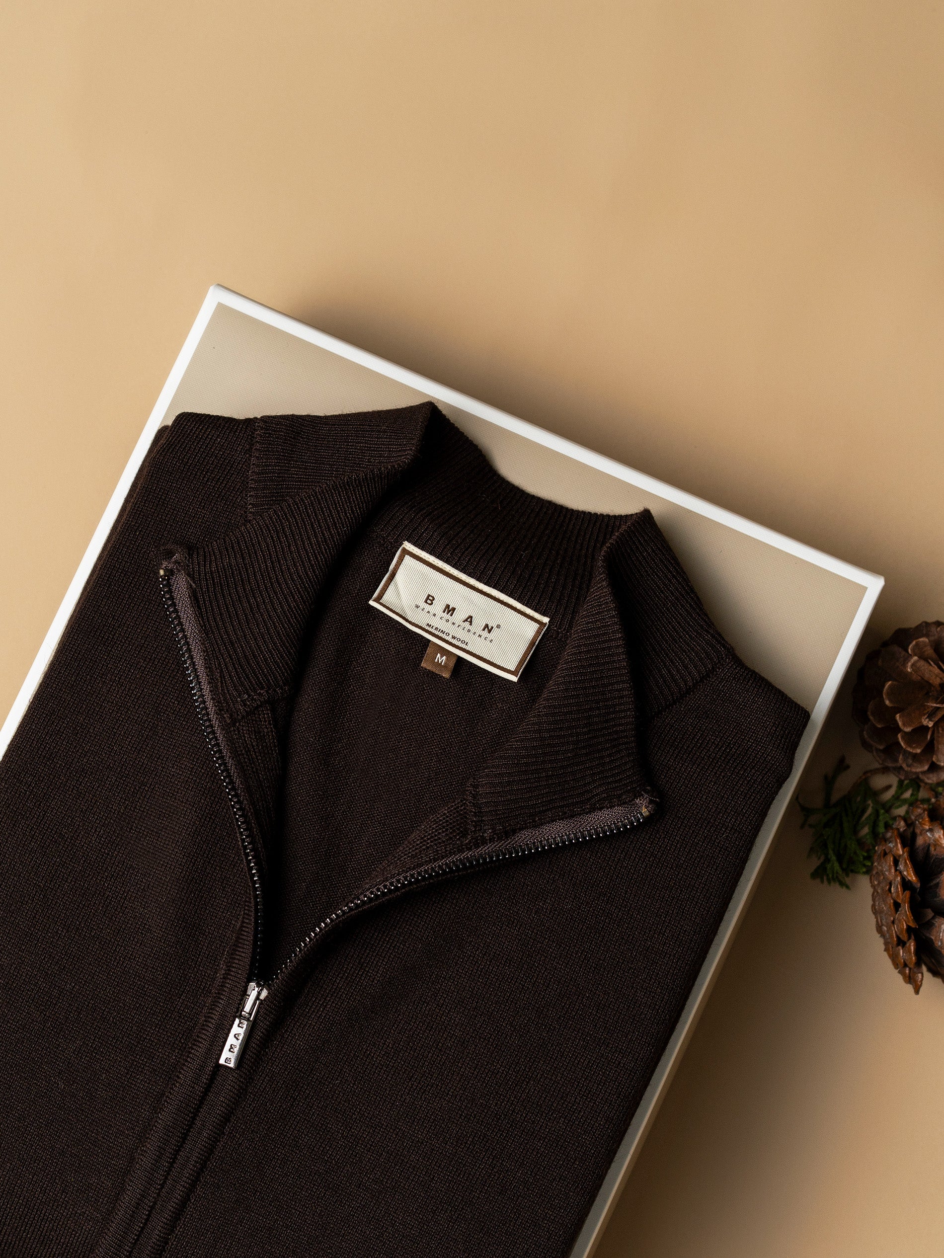 • 1. Pulover Cu Fermoar Lung Barbati Cafeniu Lana Merinos Falco BMan0005 descoperă puloverul de bărbați cu fermoar dublu lung, un esențial pentru sezonul racoros de toamnă și iarnă, perfect adaptat pentru mediul de birou, business, și nu numai.