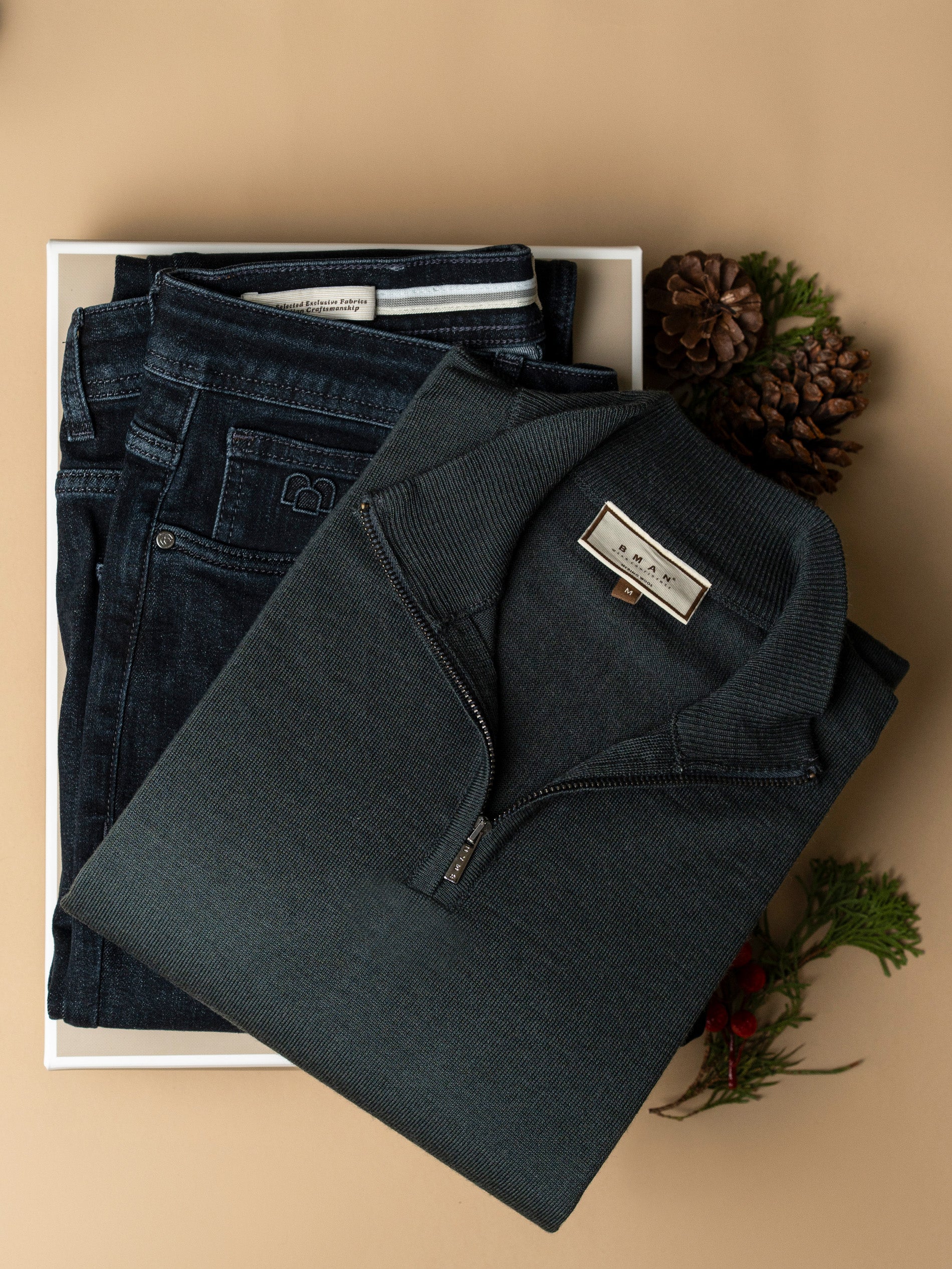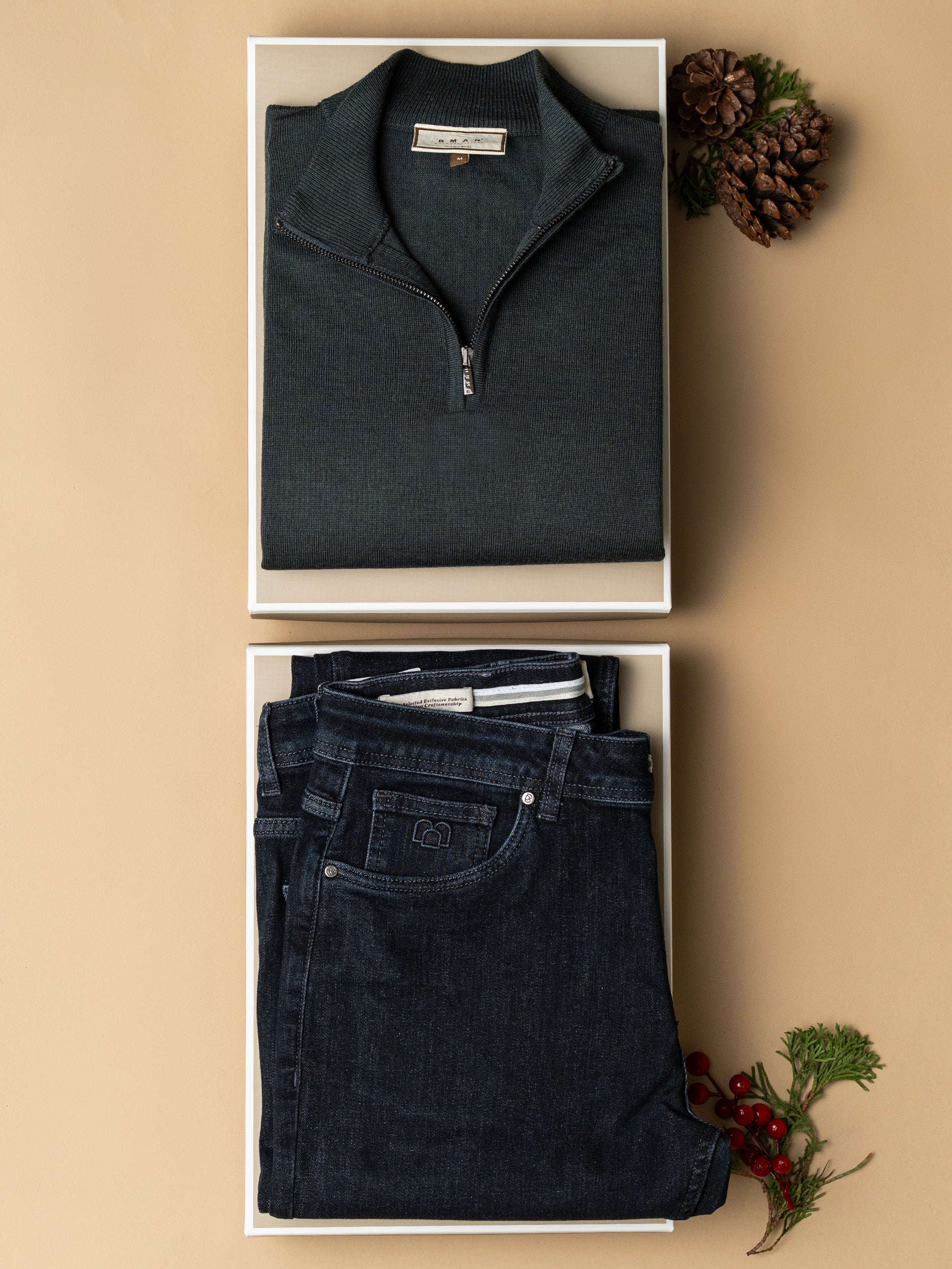 Pachet Cadou Barbati Pulover Cu Fermoar Si Blugi Bman0086