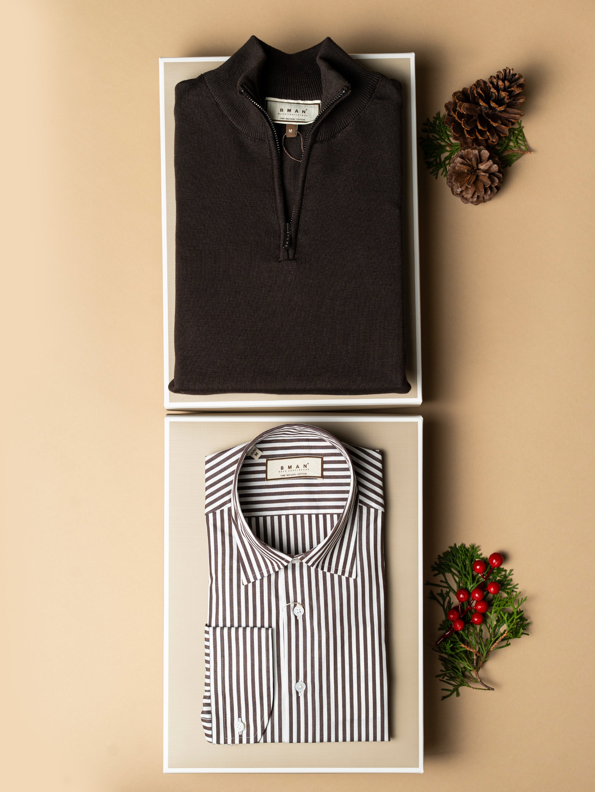 Pachet Cadou Barbati Pulover Cu Fermoar Si Camasa Bumbac Bman0001