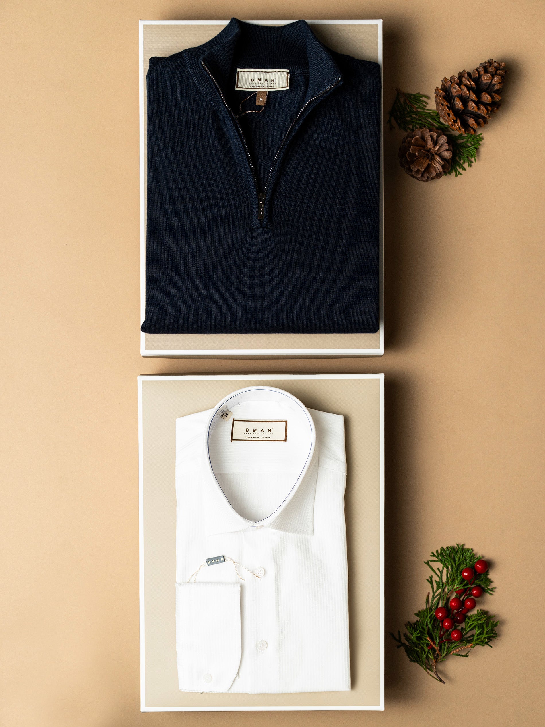 Pachet Cadou Barbati Pulover Cu Fermoar Si Camasa Bumbac Bman0008