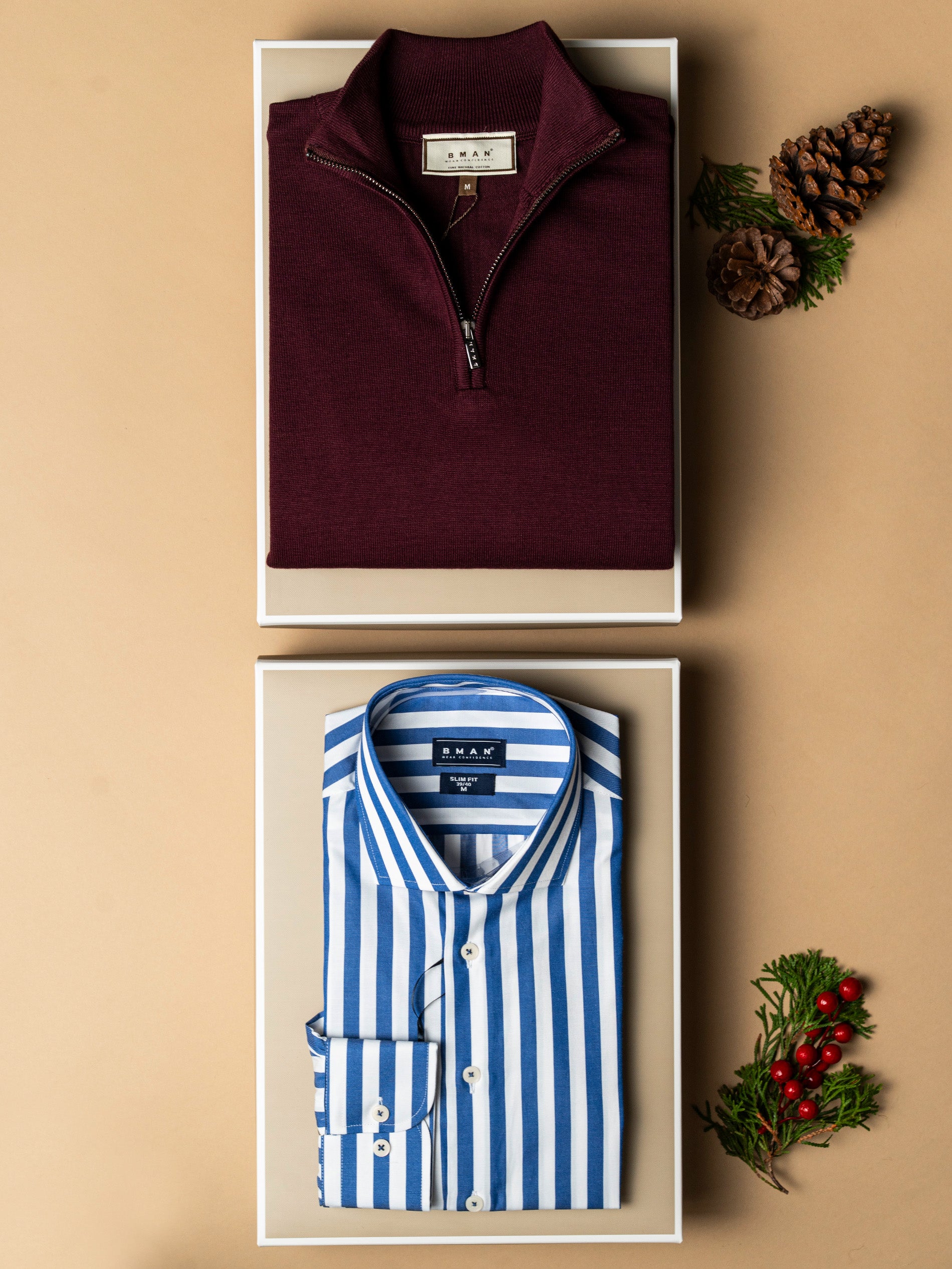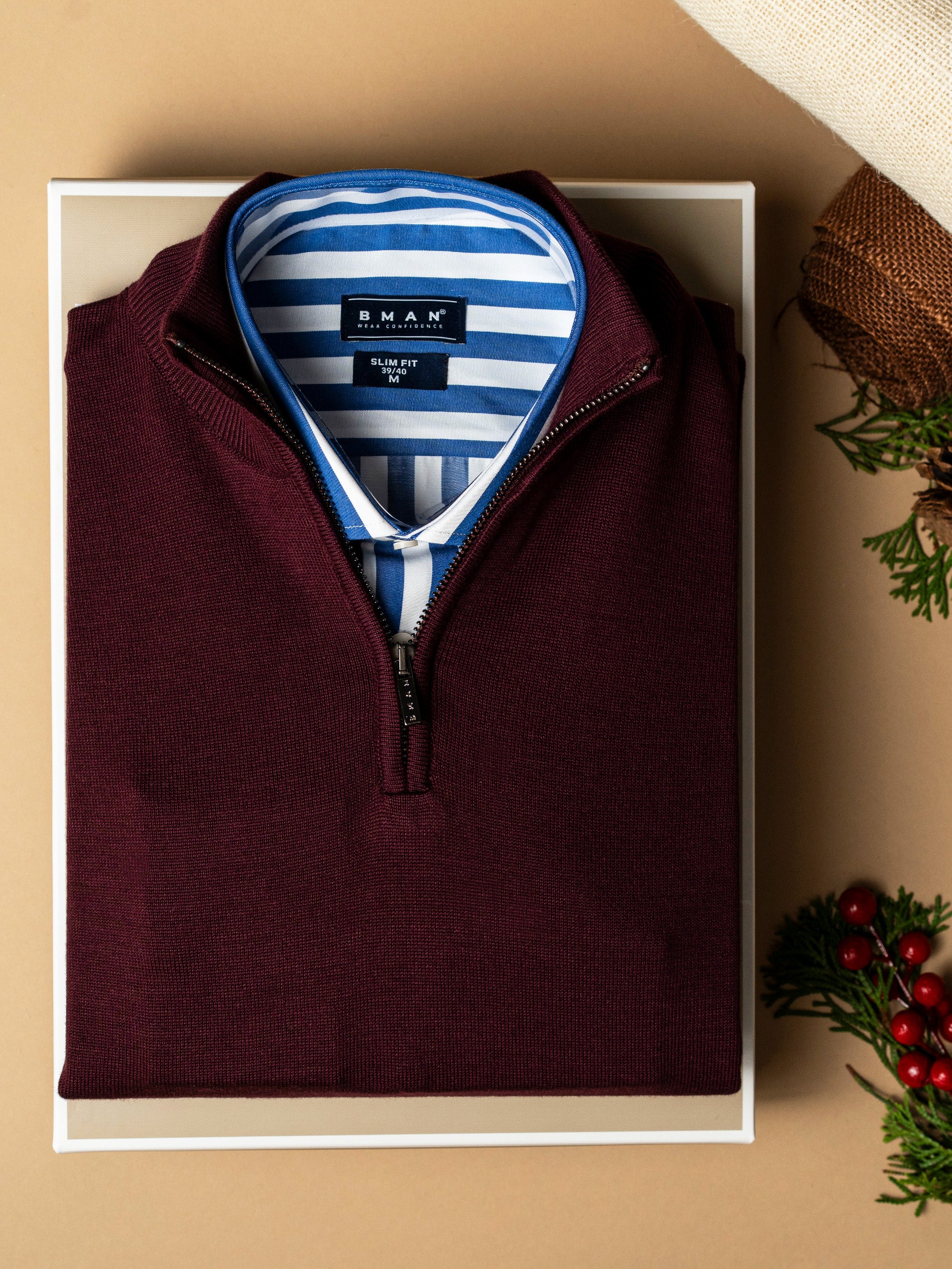 Pachet Cadou Barbati Pulover Cu Fermoar Si Camasa Bumbac Bman0010