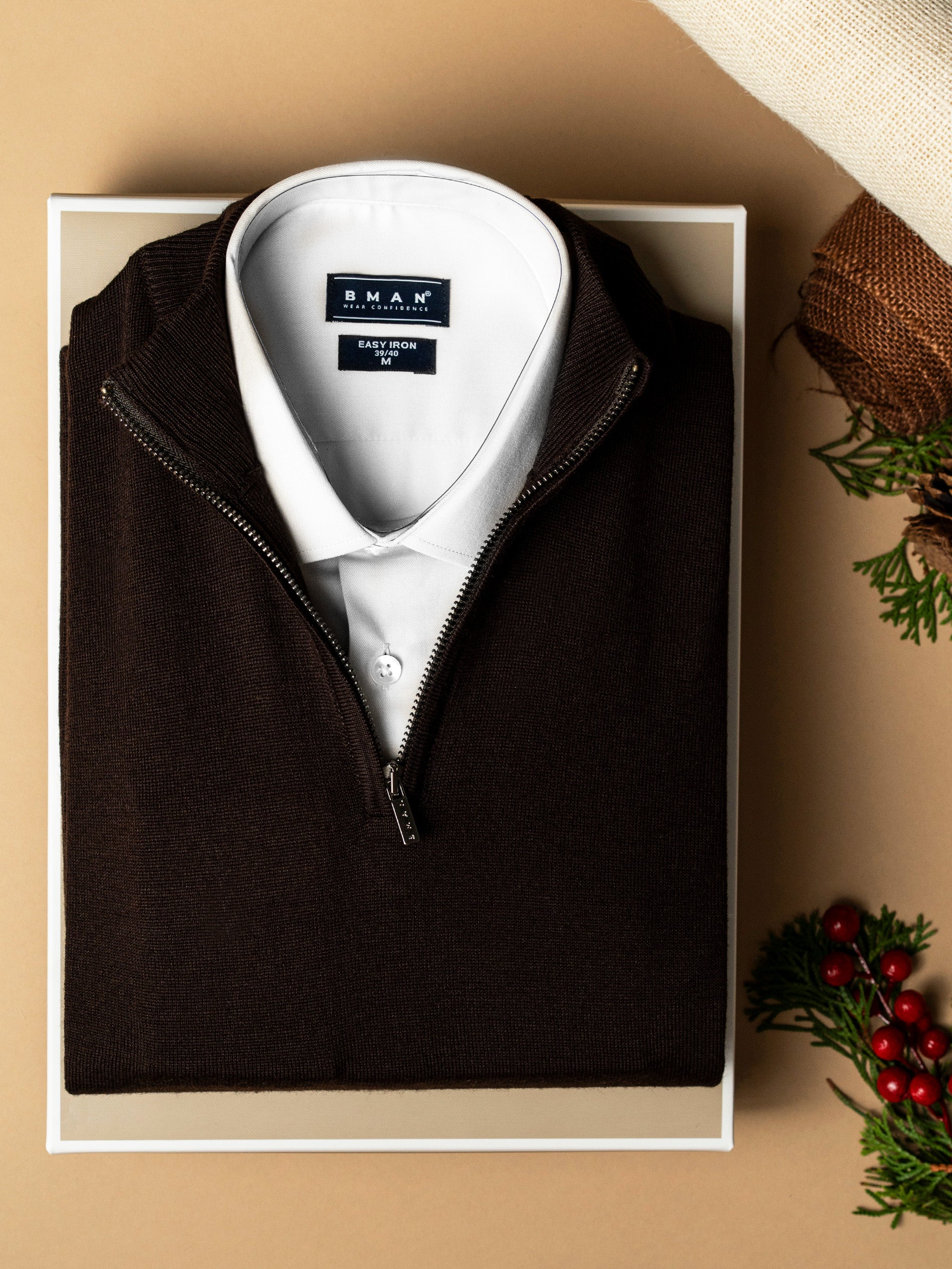 Pachet Cadou Barbati Pulover Cu Fermoar Si Camasa Bumbac Bman0013