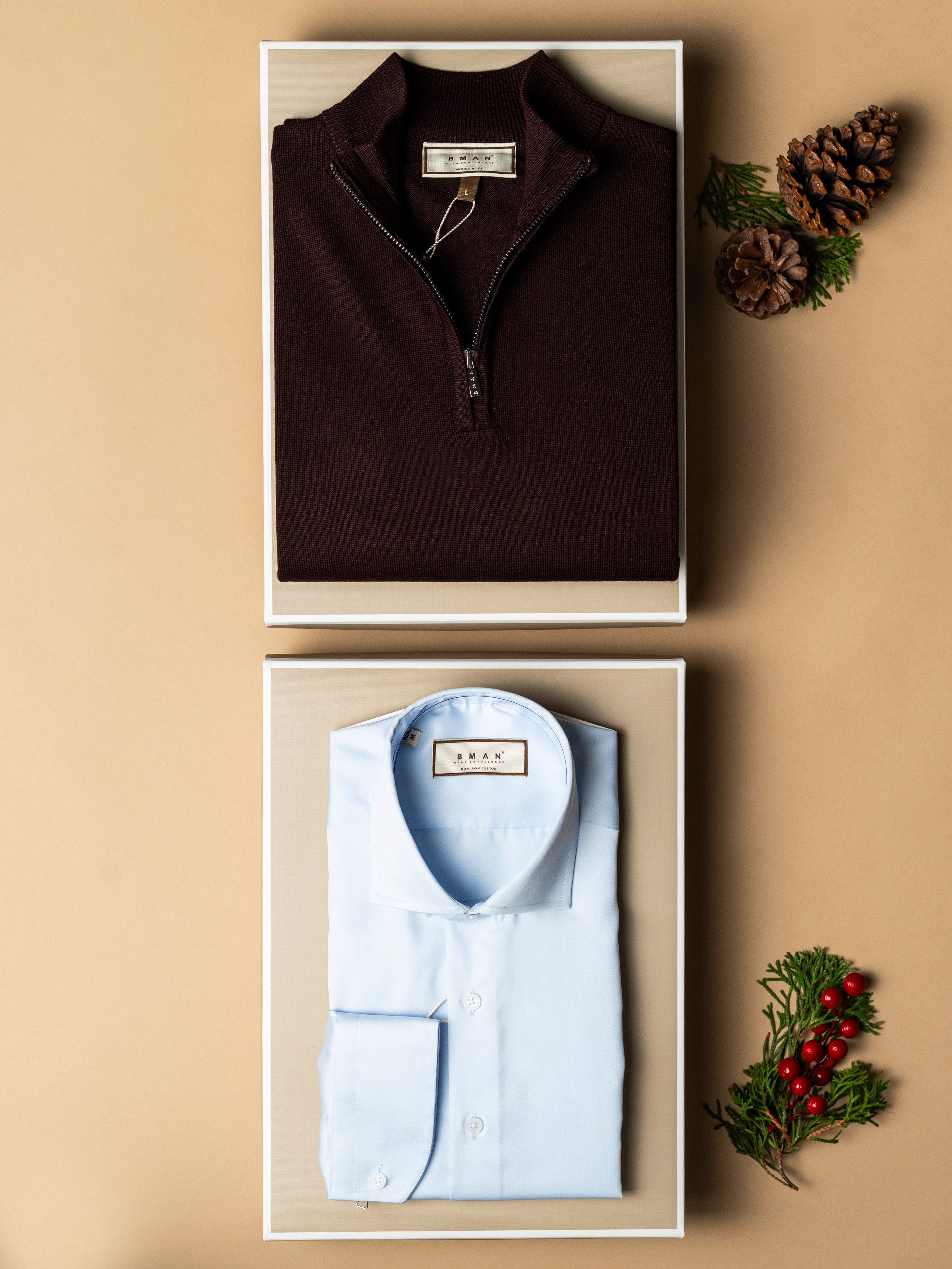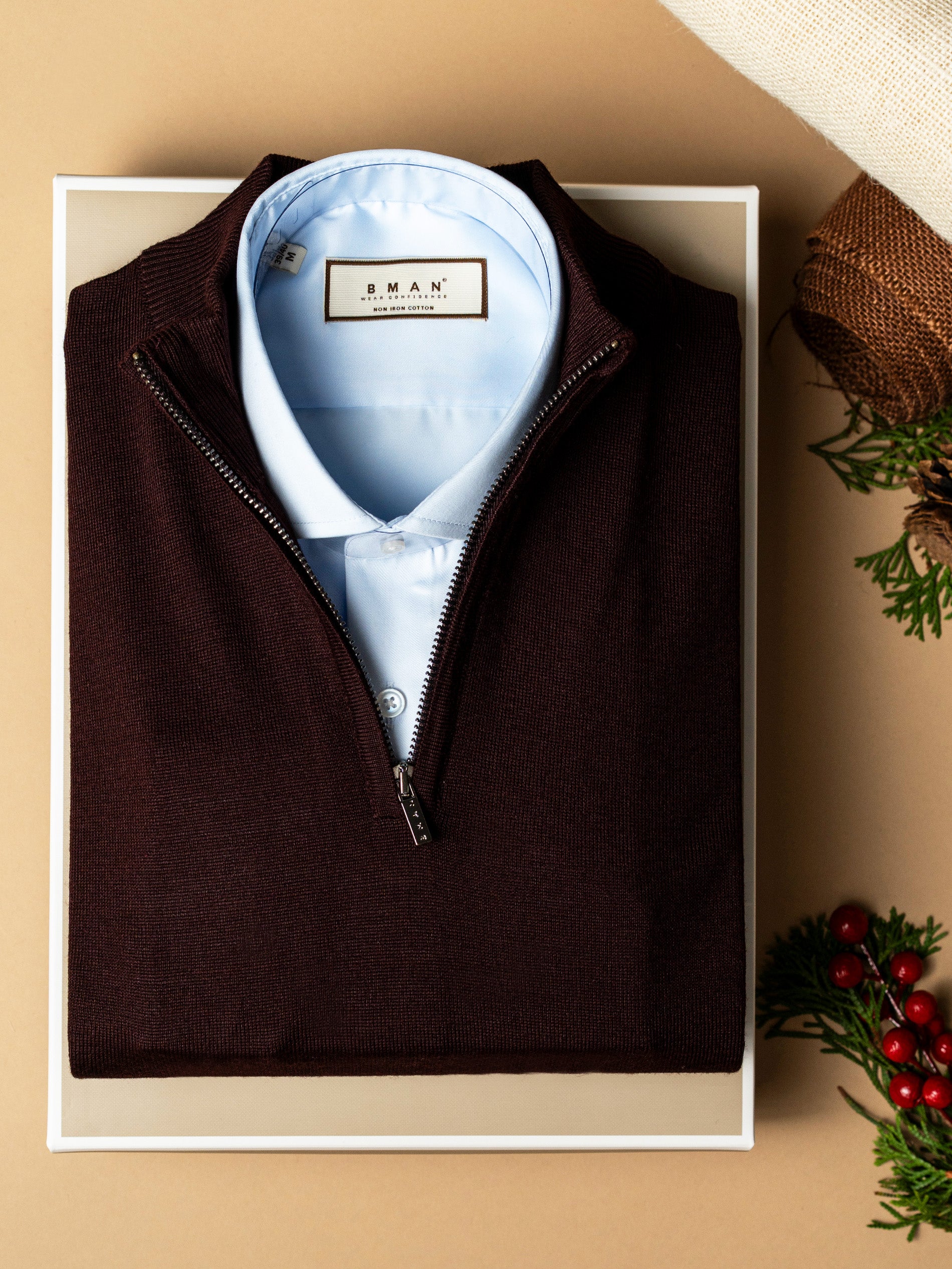 Pachet Cadou Barbati Pulover Cu Fermoar Si Camasa Bumbac Bman0019