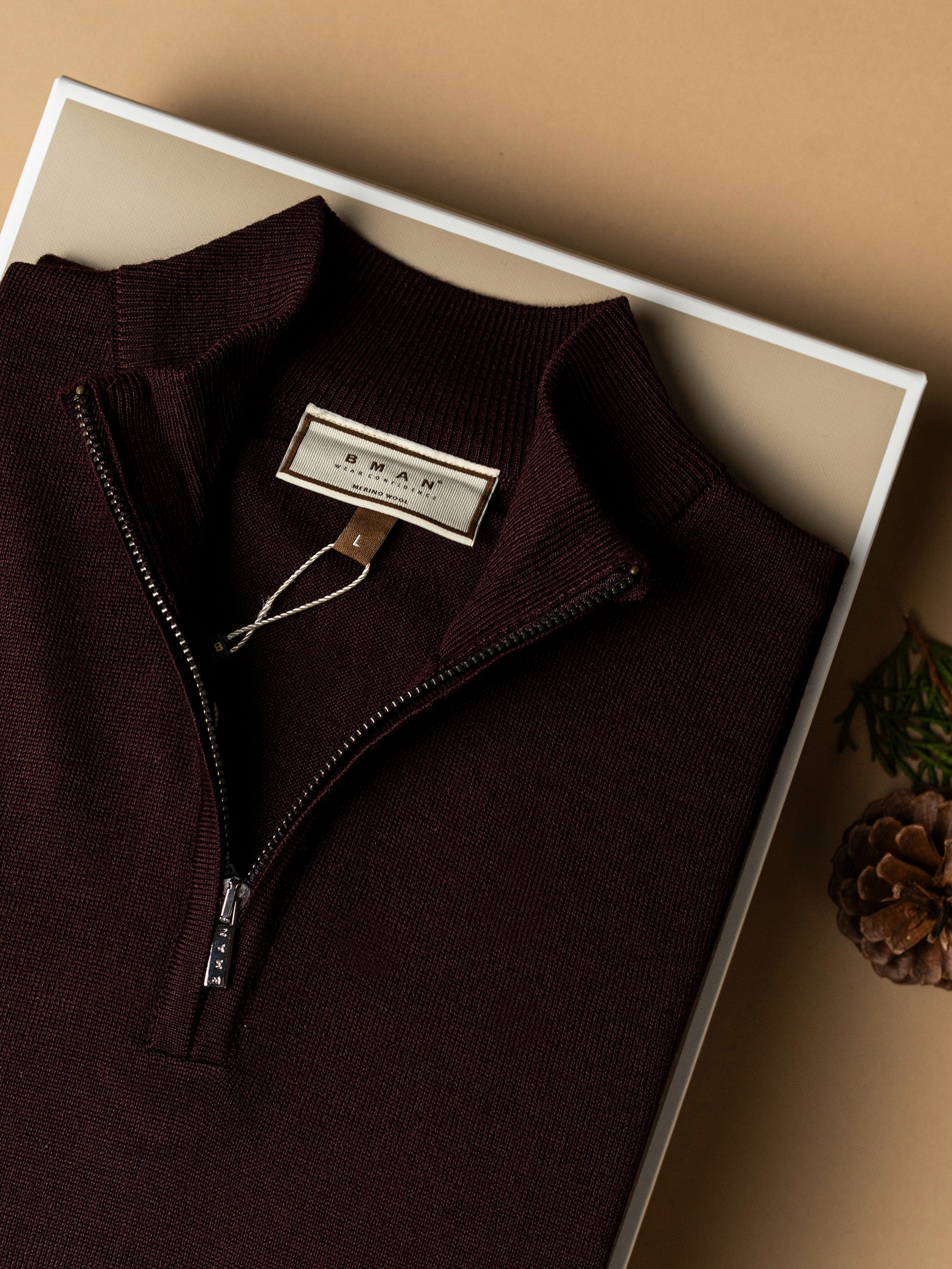 • 1. Pulover Cu Fermoar Office Barbati Bordo Din Lana Merinos Falco BMan0003, un esențial pentru sezonul racoros de toamnă și iarnă, perfect adaptat pentru mediul de birou, business, și nu numai.