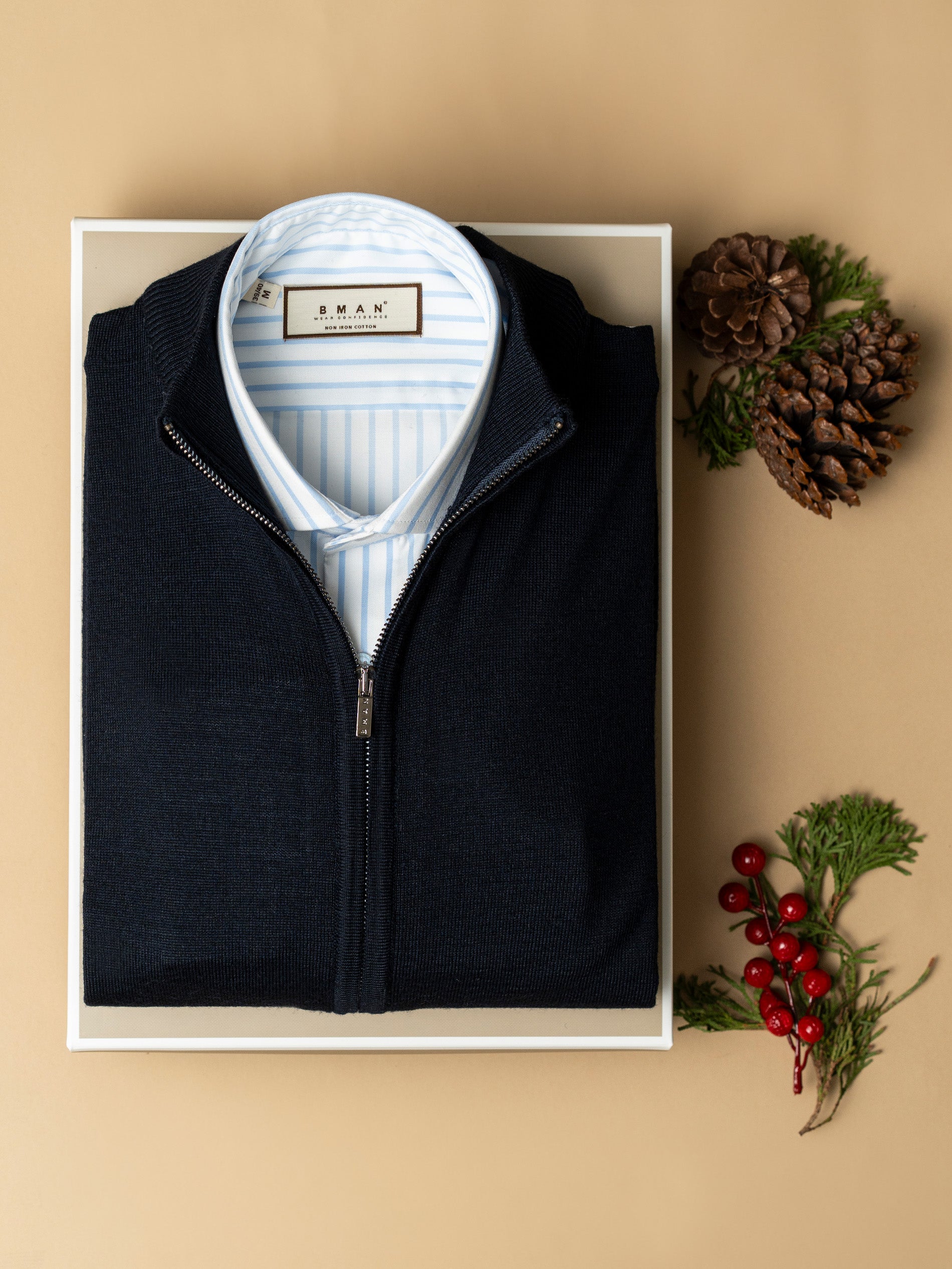 Pachet Cadou Barbati Camasa Bumbac Si Pulover Cu Fermoar Bman0070