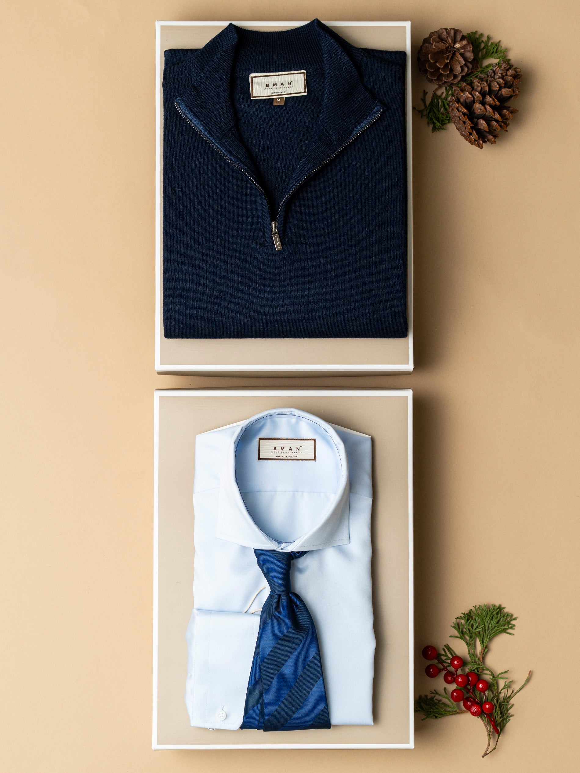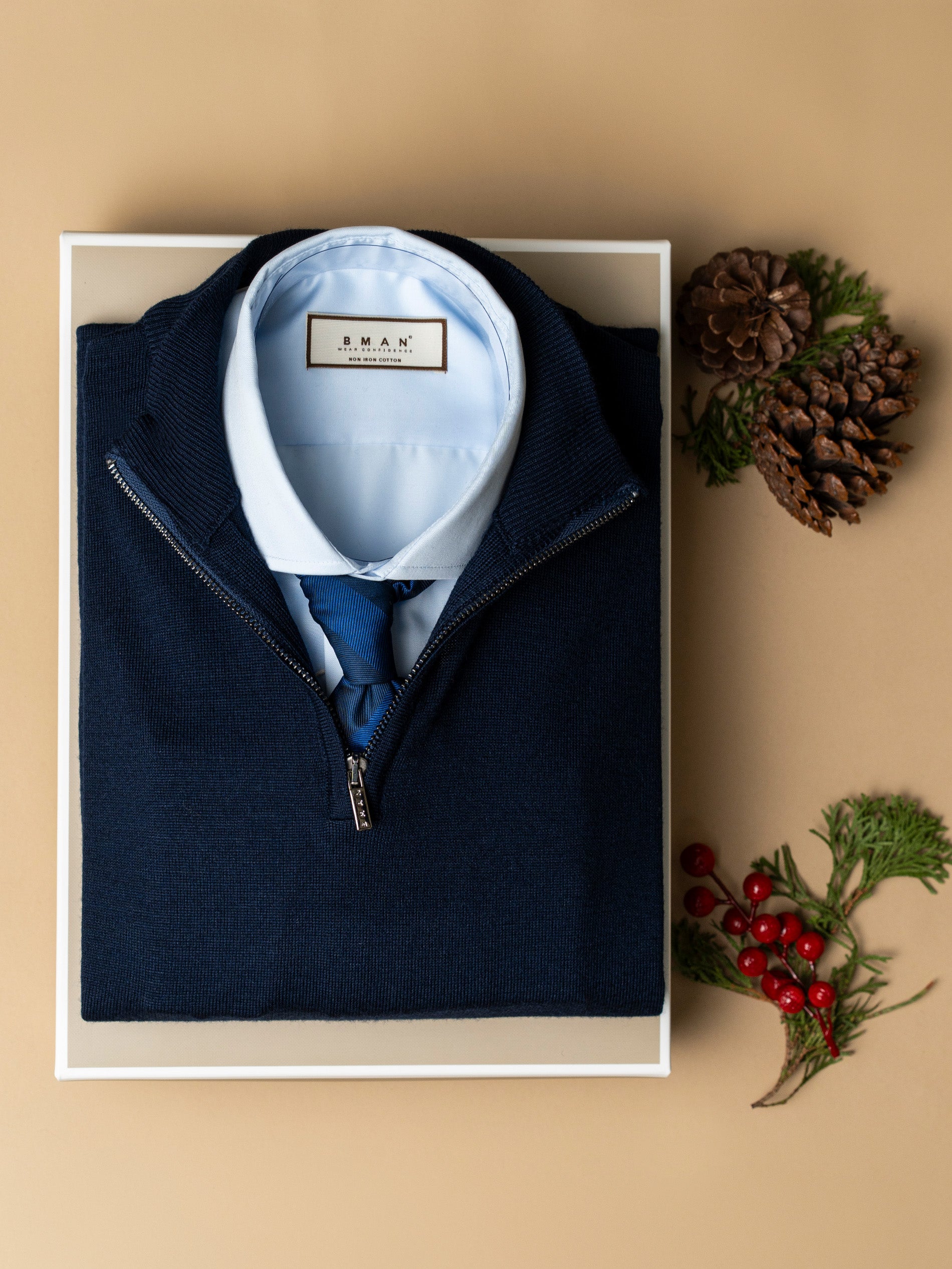 Pachet Cadou Barbati Camasa Bumbac Si Pulover Cu Fermoar Bman0071