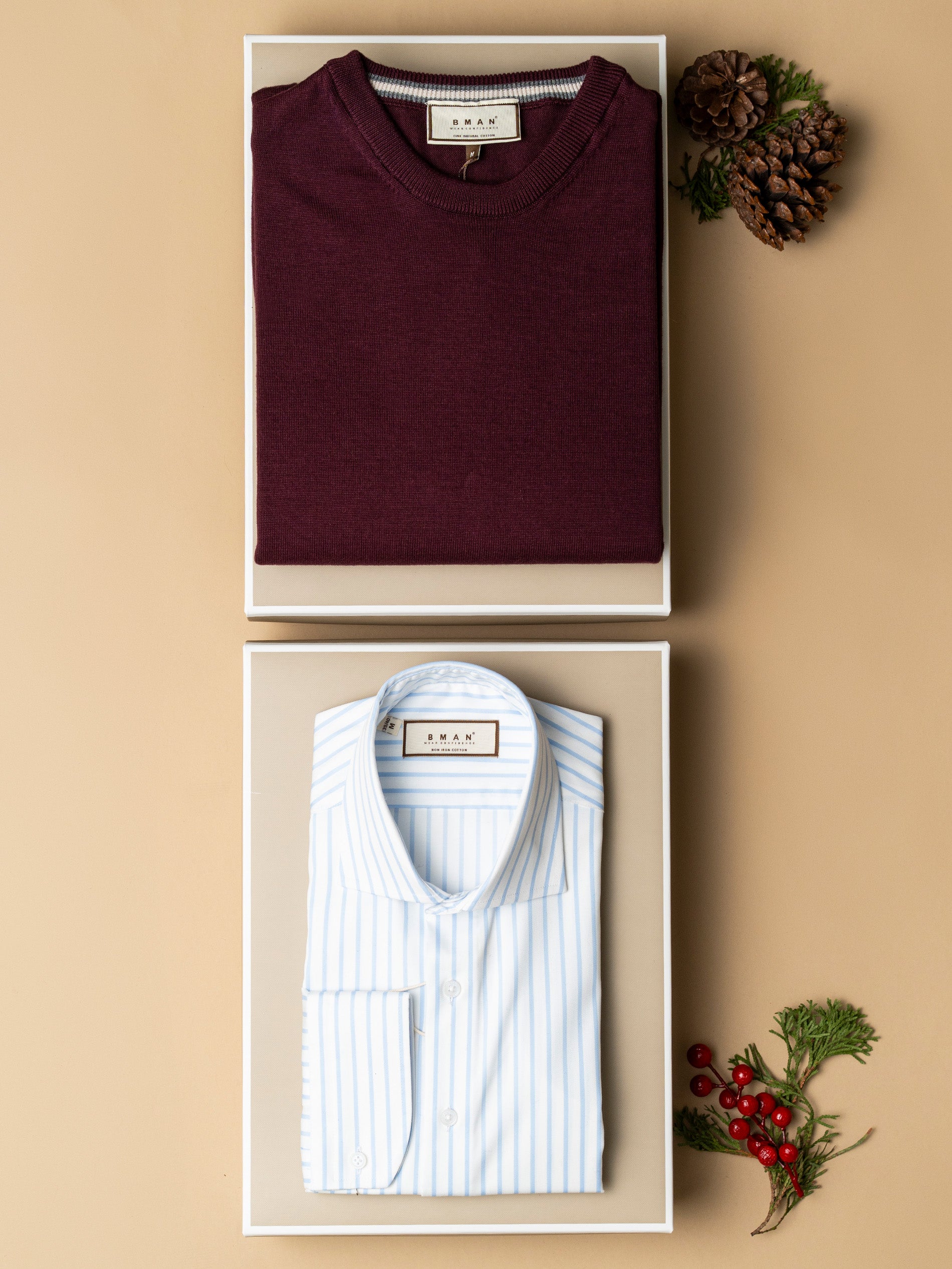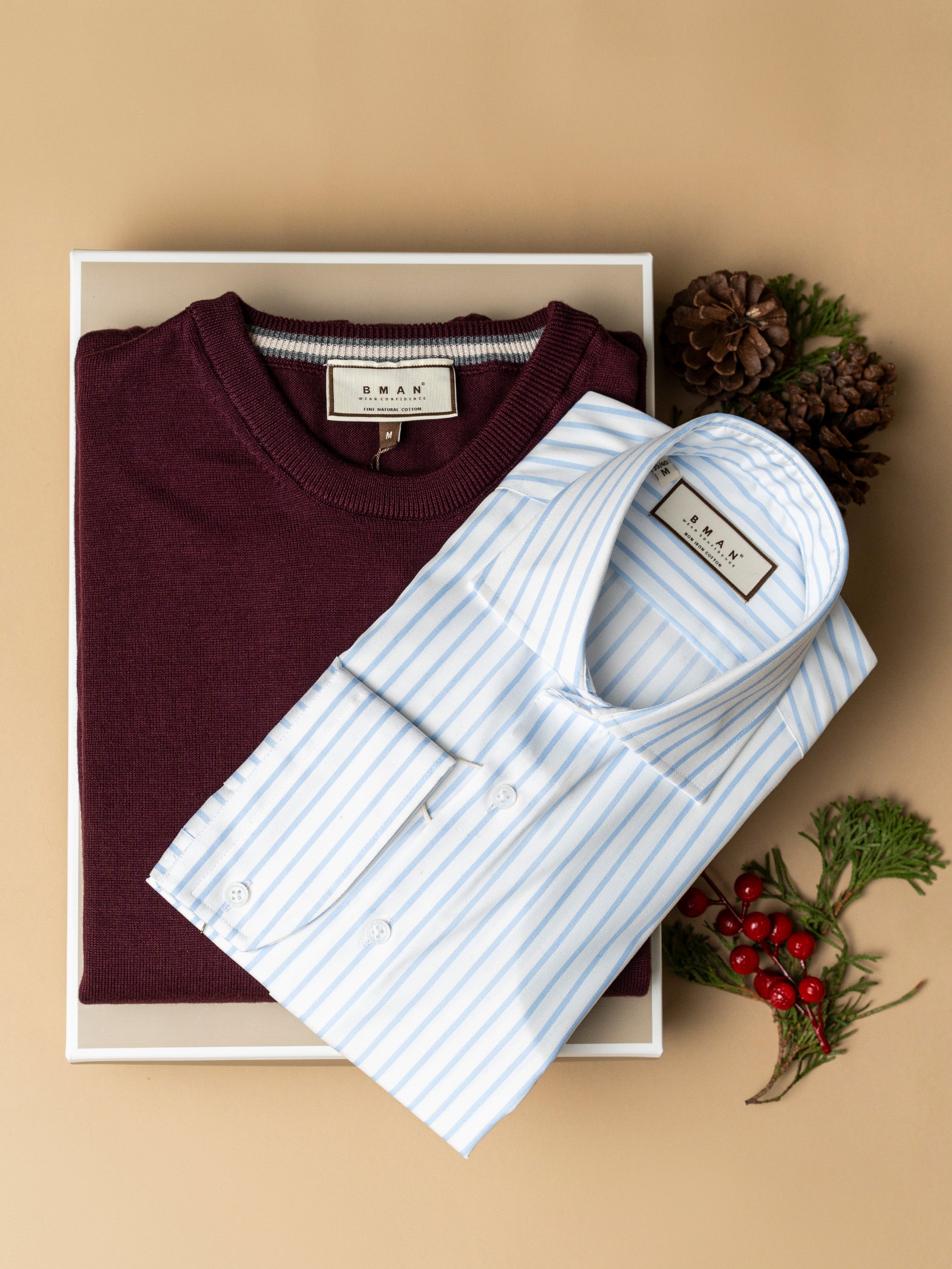 Pachet Cadou Barbati Camasa Bumbac Si Pulover Bman0074