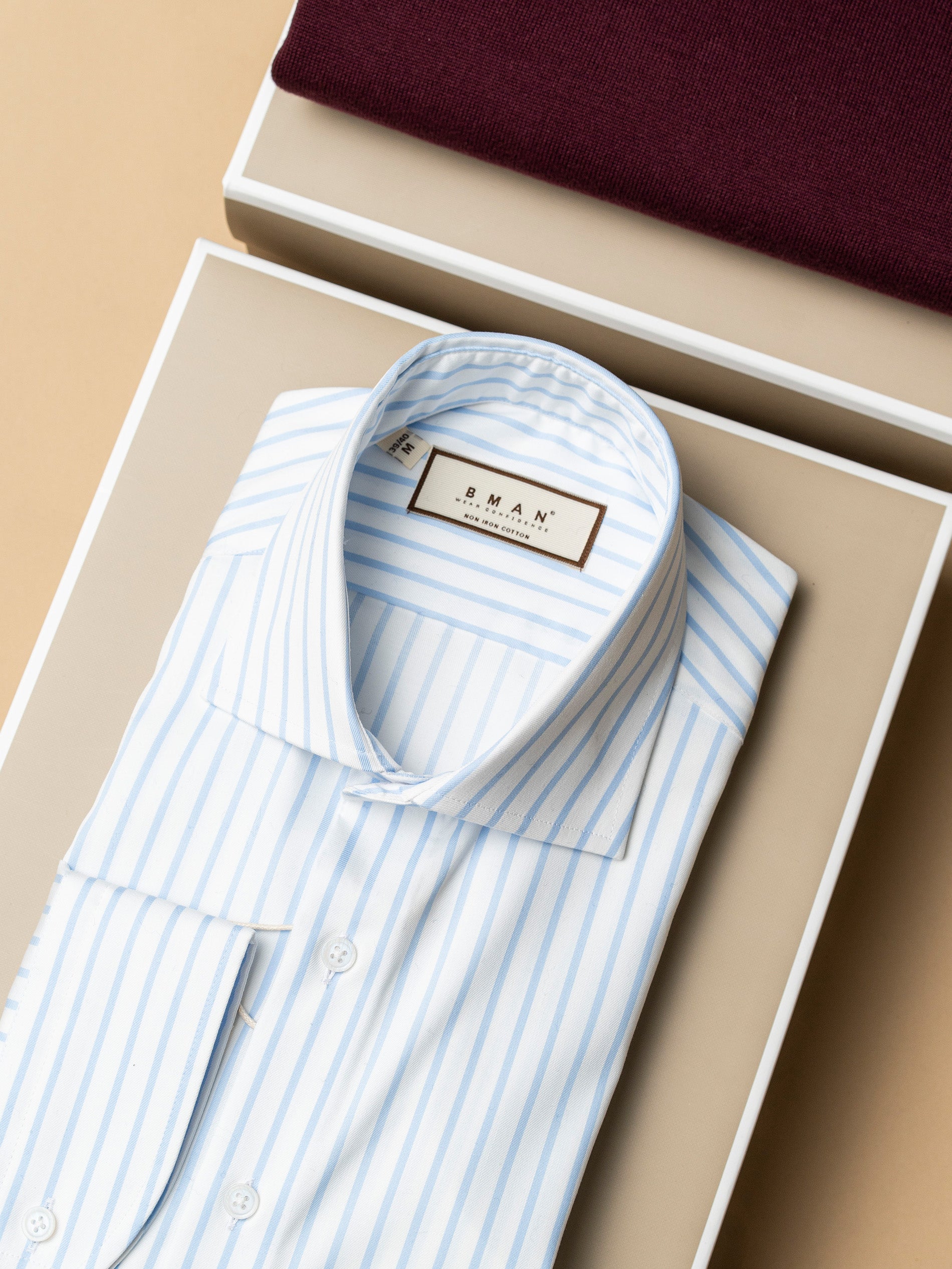 • 2. Camasa Barbati Premium Confort Fit Non Iron Alba Cu Dungi Bleu BMan0063 este confectionata din 100% bumbac natural de inalta calitate, ceea ce o face confortabila si respirabila, perfecta pentru o varietate de ocazii sau evenimente formale de seara.
