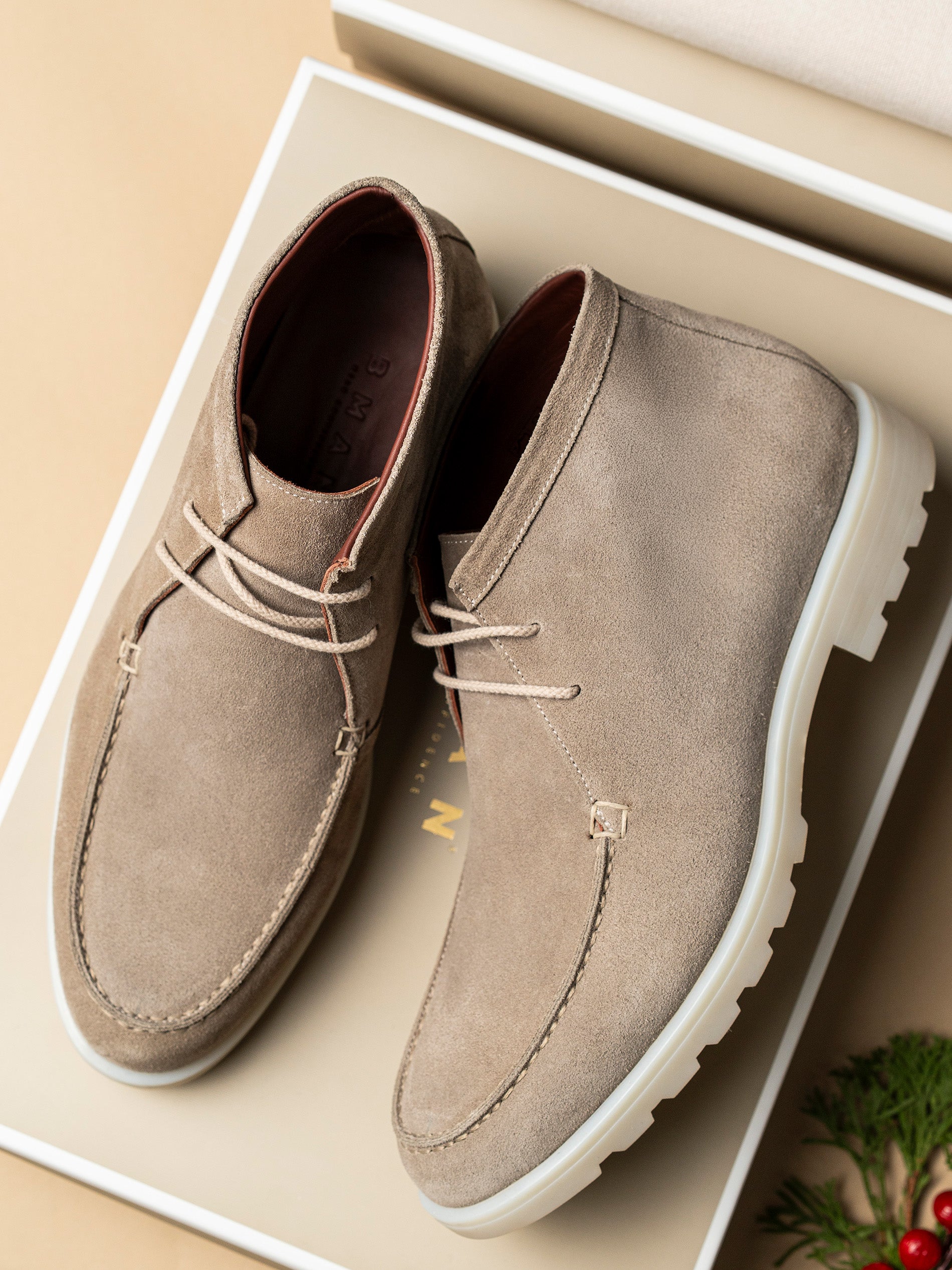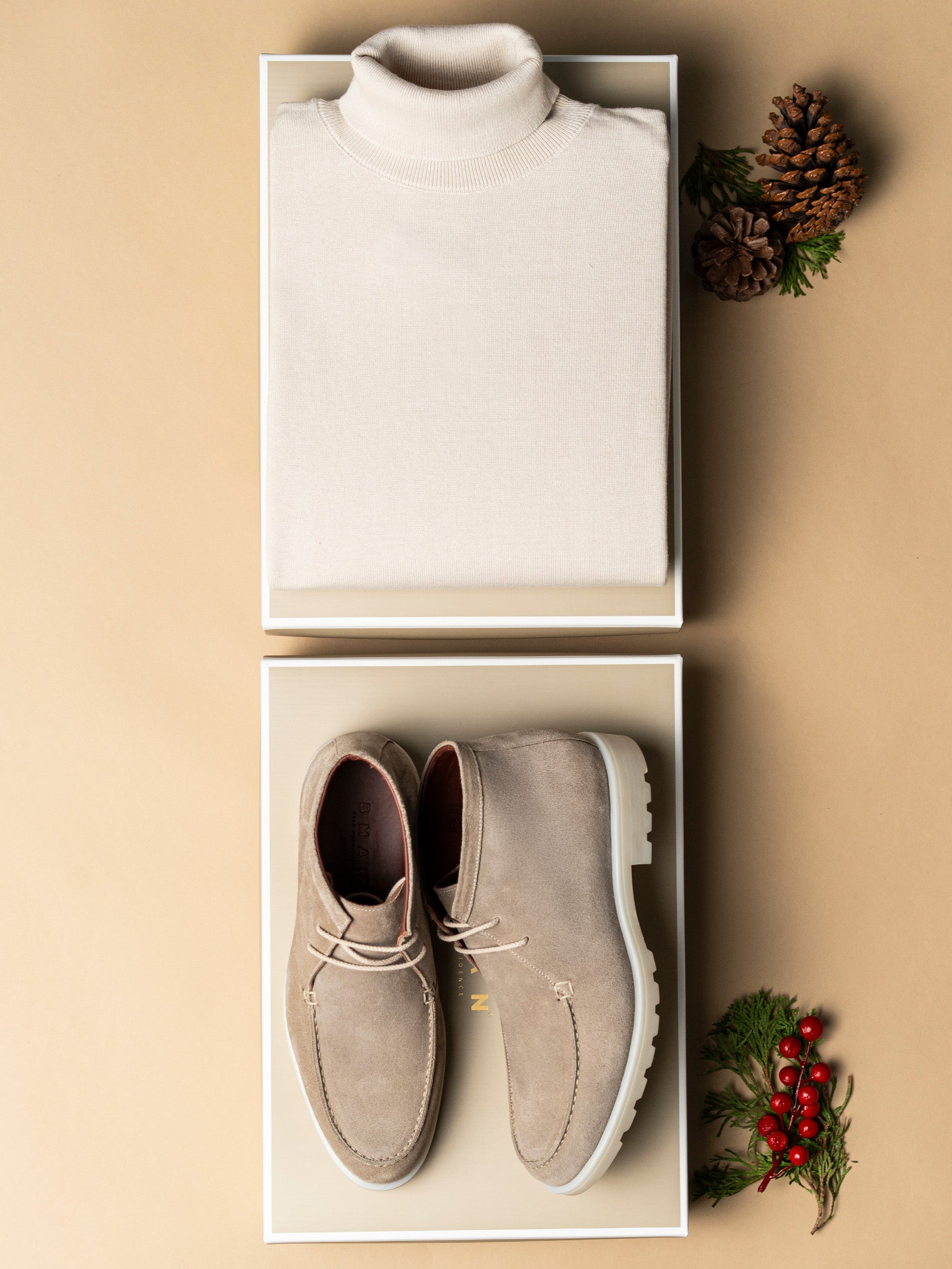 • 2. Ghete Barbati Crem Model Chukka Din Piele Intoarsa BMan148 sunt o interpretare moderna a elegantei relaxate. Cu o silueta curata si o textura catifelata, aduc echilibrul perfect intre rafinament si confort cotidian.