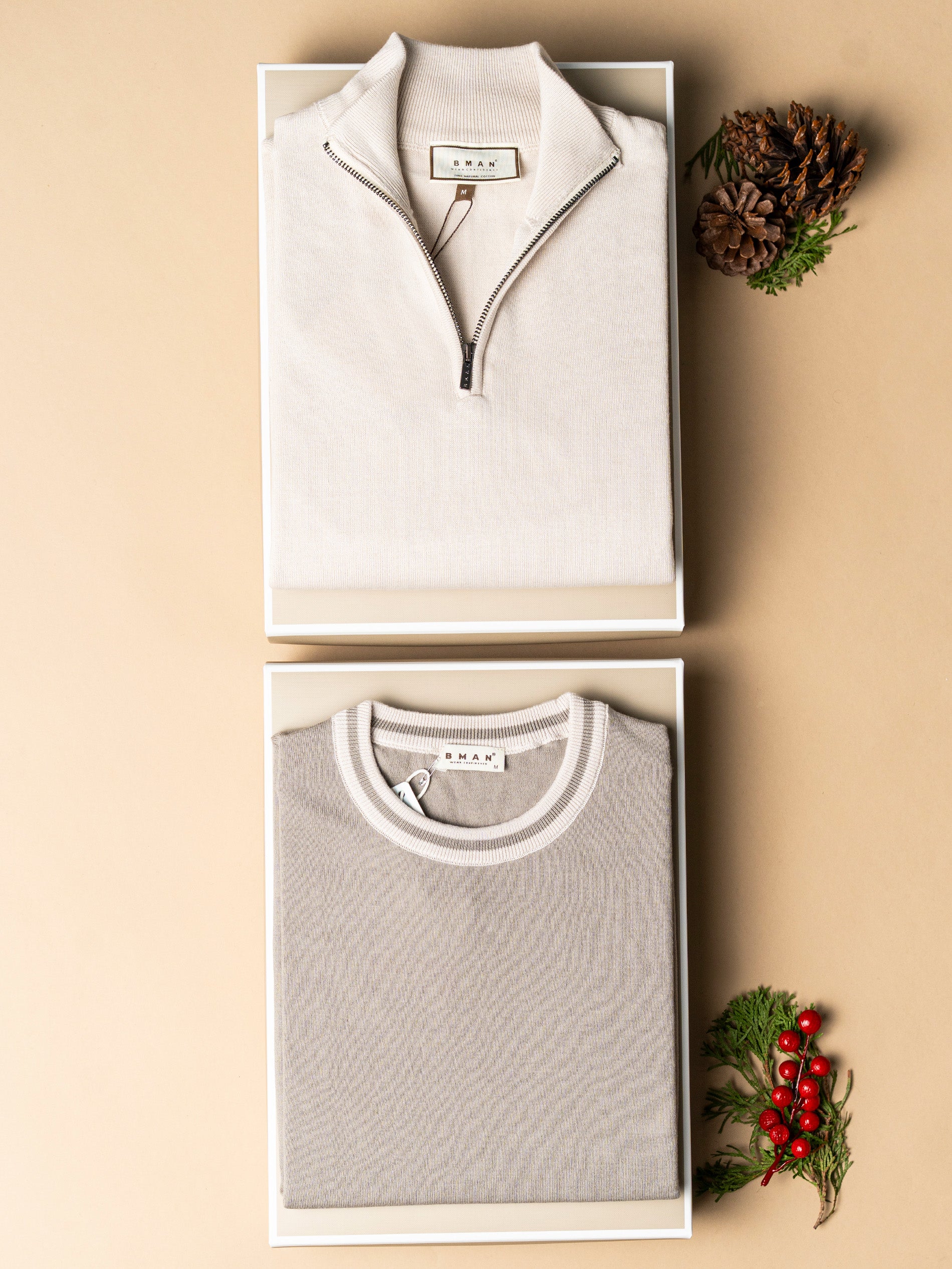 • 1. Pulover Cu Fermoar Office Barbati Crem Din Bumbac 100% BMan0001, un esențial pentru sezonul racoros de toamnă și iarnă, perfect adaptat pentru mediul de birou, business, și nu numai.