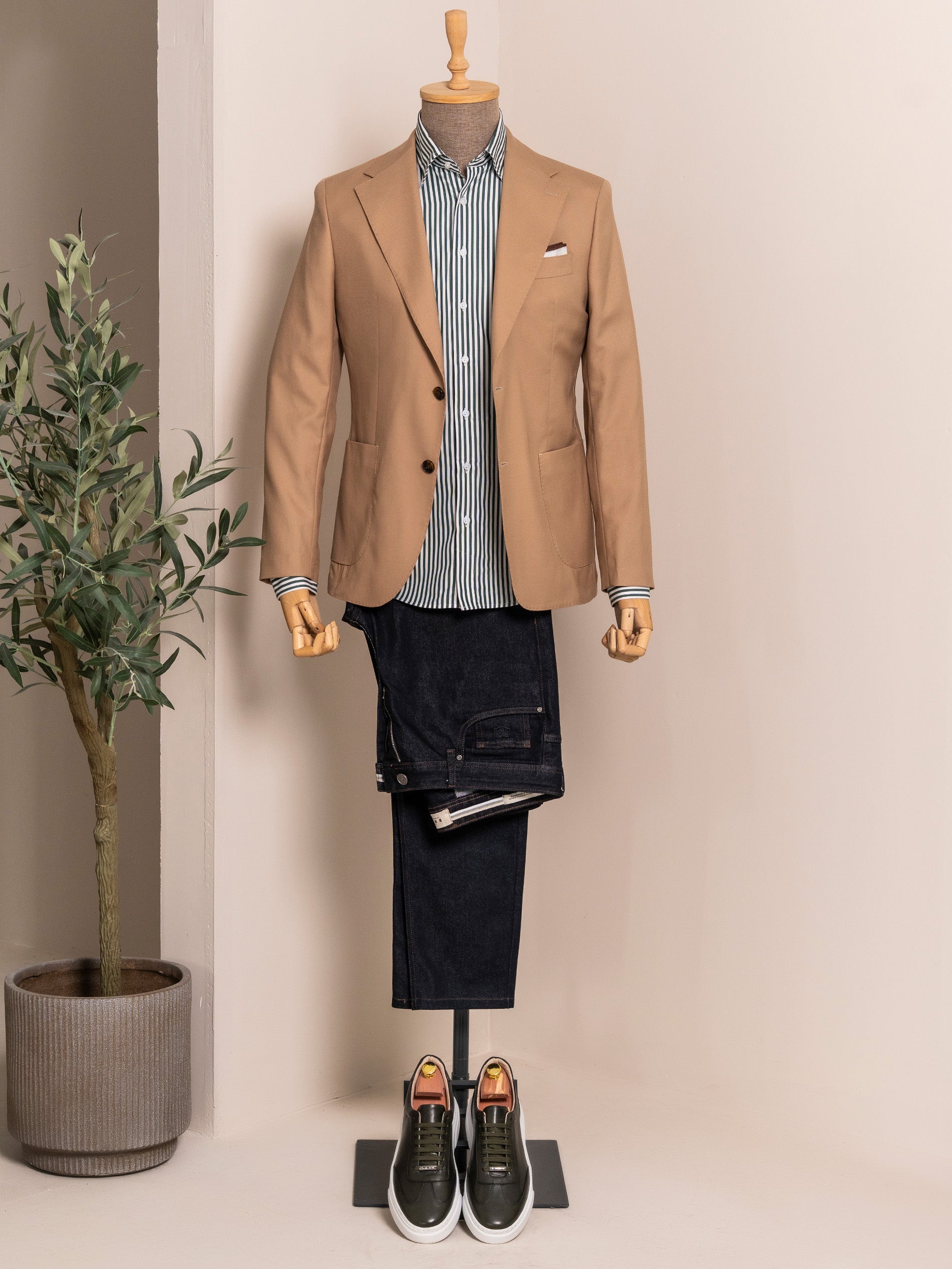1. Sacoul Barbati Bej 100% Lana Vitale Barberis 130'S BMan0054 realizat dintr-o tesatura premium impresioneaza prin rafinament si eleganta. Lana fina de provenienta italiana ofera o textura moale, respirabila si extrem de confortabila, ideala pentru tinutele de primavara si vara.