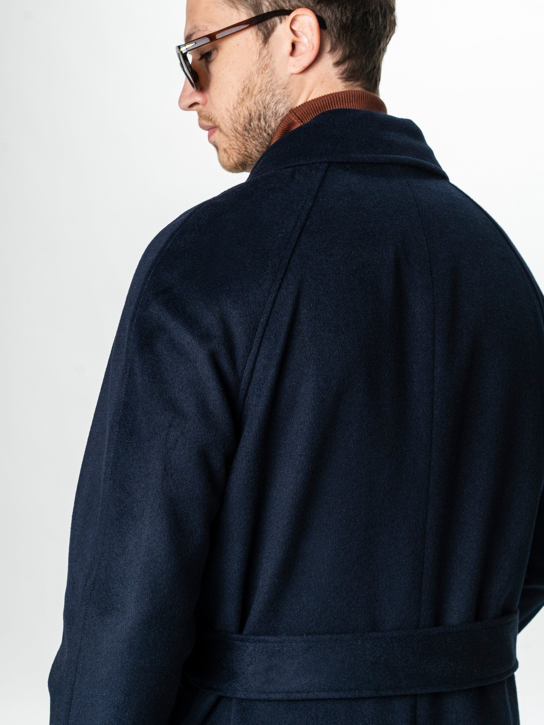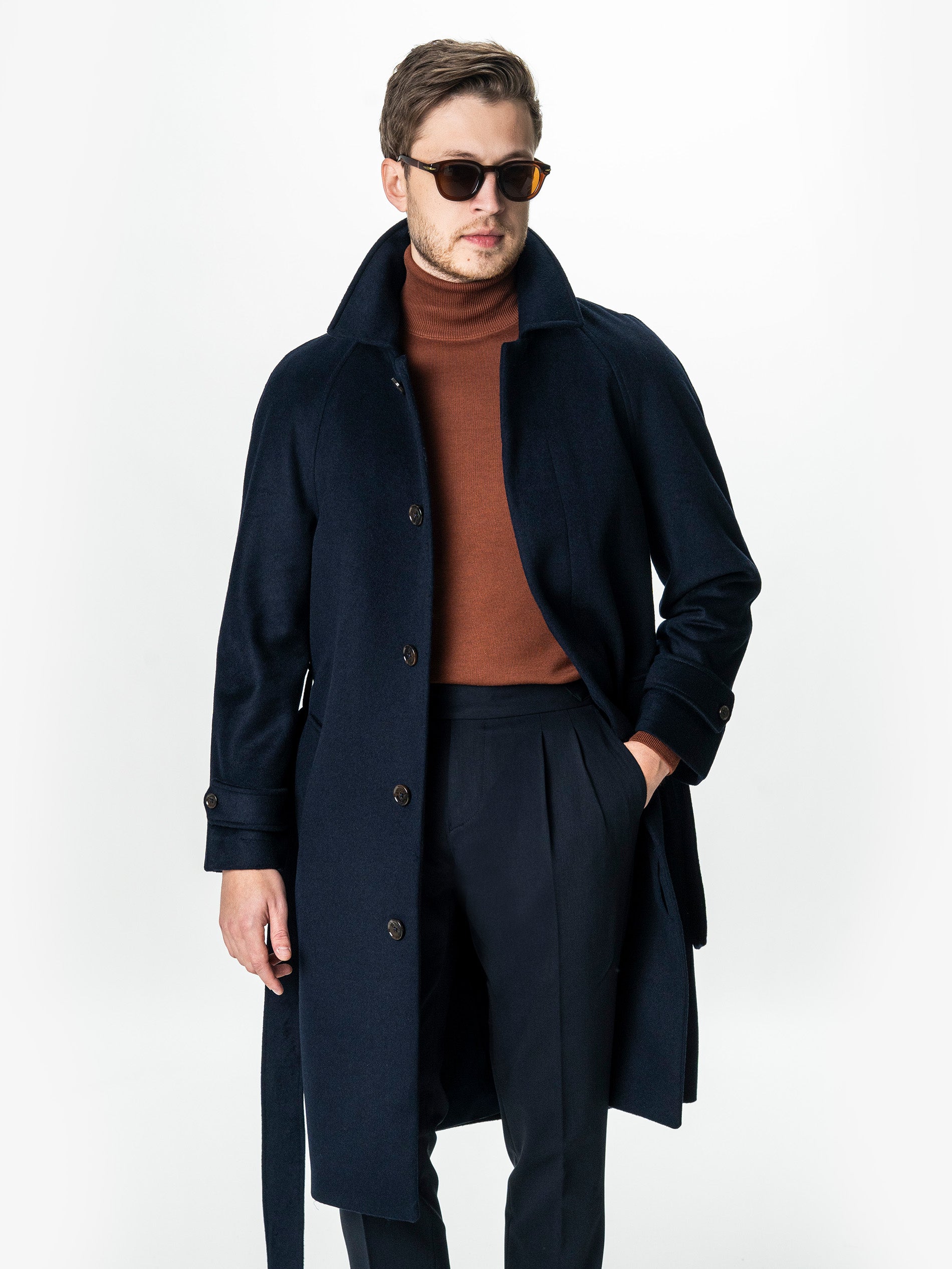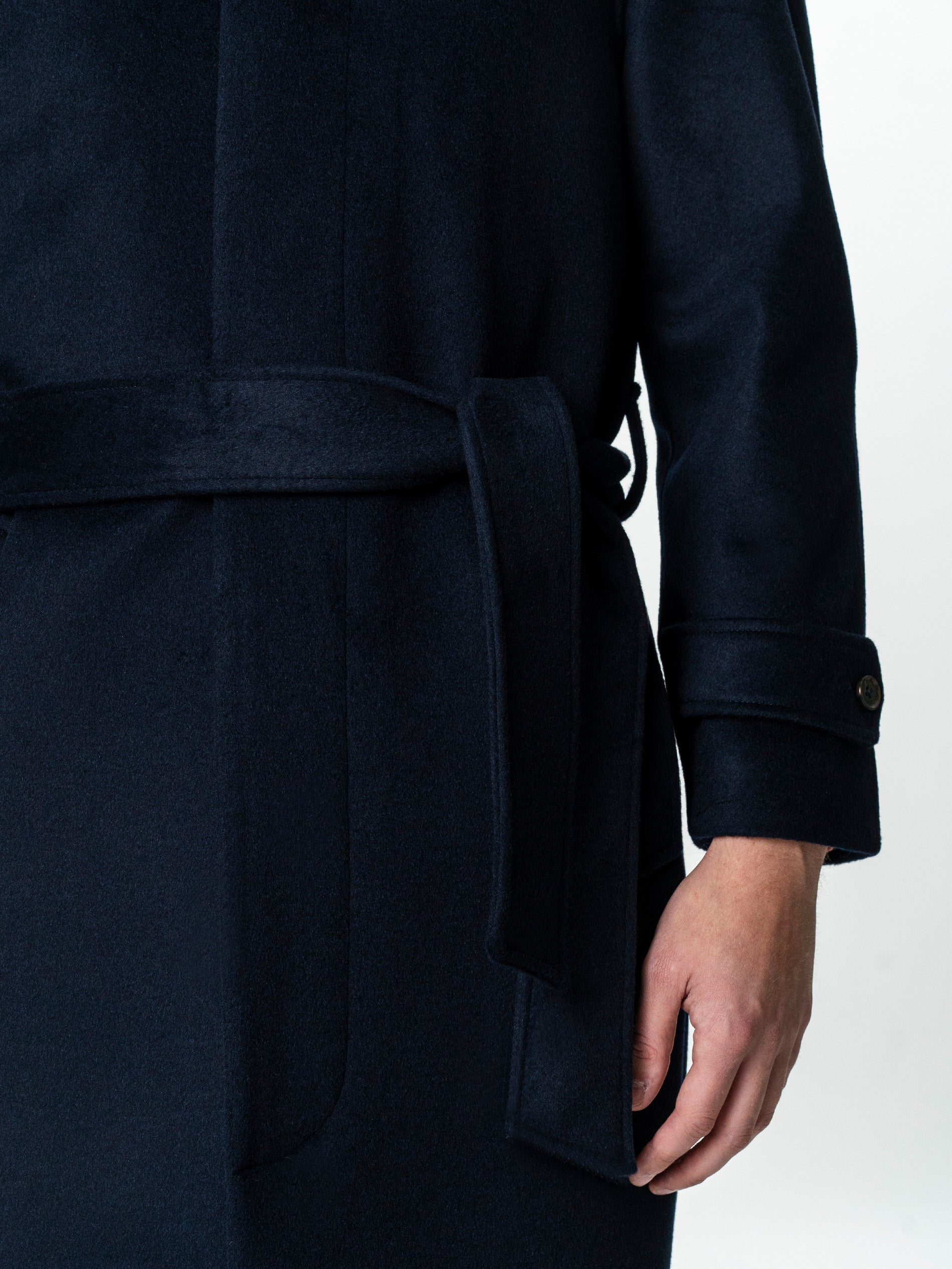 Acest palton din lana 100%, realizat dintr-o tesatura fina, imbina durabilitatea materialului cu o estetica rafinata. Linia dreapta este echilibrata de umerii raglan fara cusaturi, care confera o pozitie naturala si eleganta a corpului. Inchiderea ascunsa in fata mentine un aspect curat, iar cordonul din acelasi material ofera posibilitatea de ajustare a taliei in functie de stilul dorit – strans pentru o tinuta structurata sau lejer pentru un look casual. Mansetele sunt finisate cu bride si nasturi functionali, adaugand un plus de caracter utilitar discret. Lungimea sub genunchi asigura protectie termica si proportii impecabile pentru orice tip de incaltaminte, de la pantofi clasici la sneakers premium.