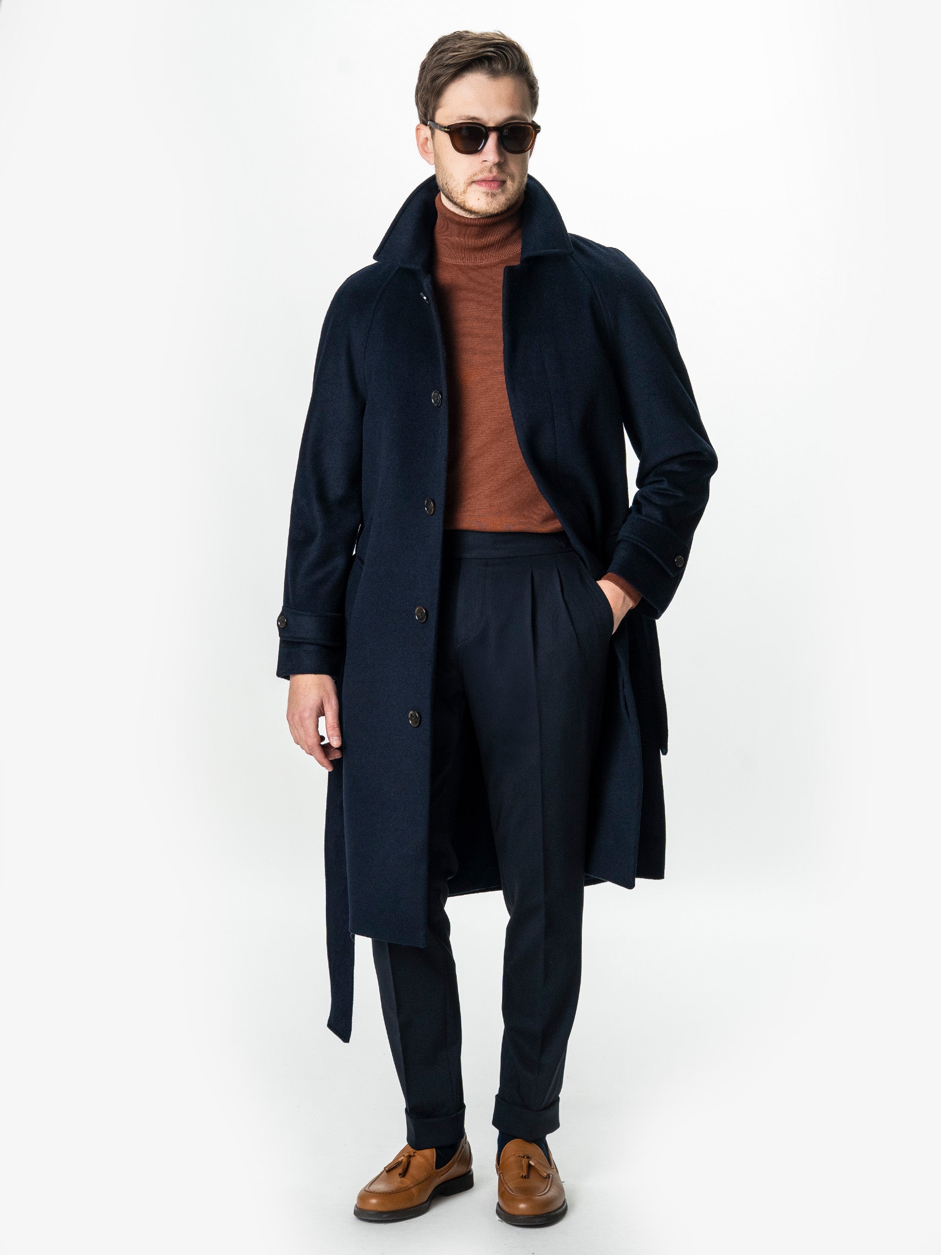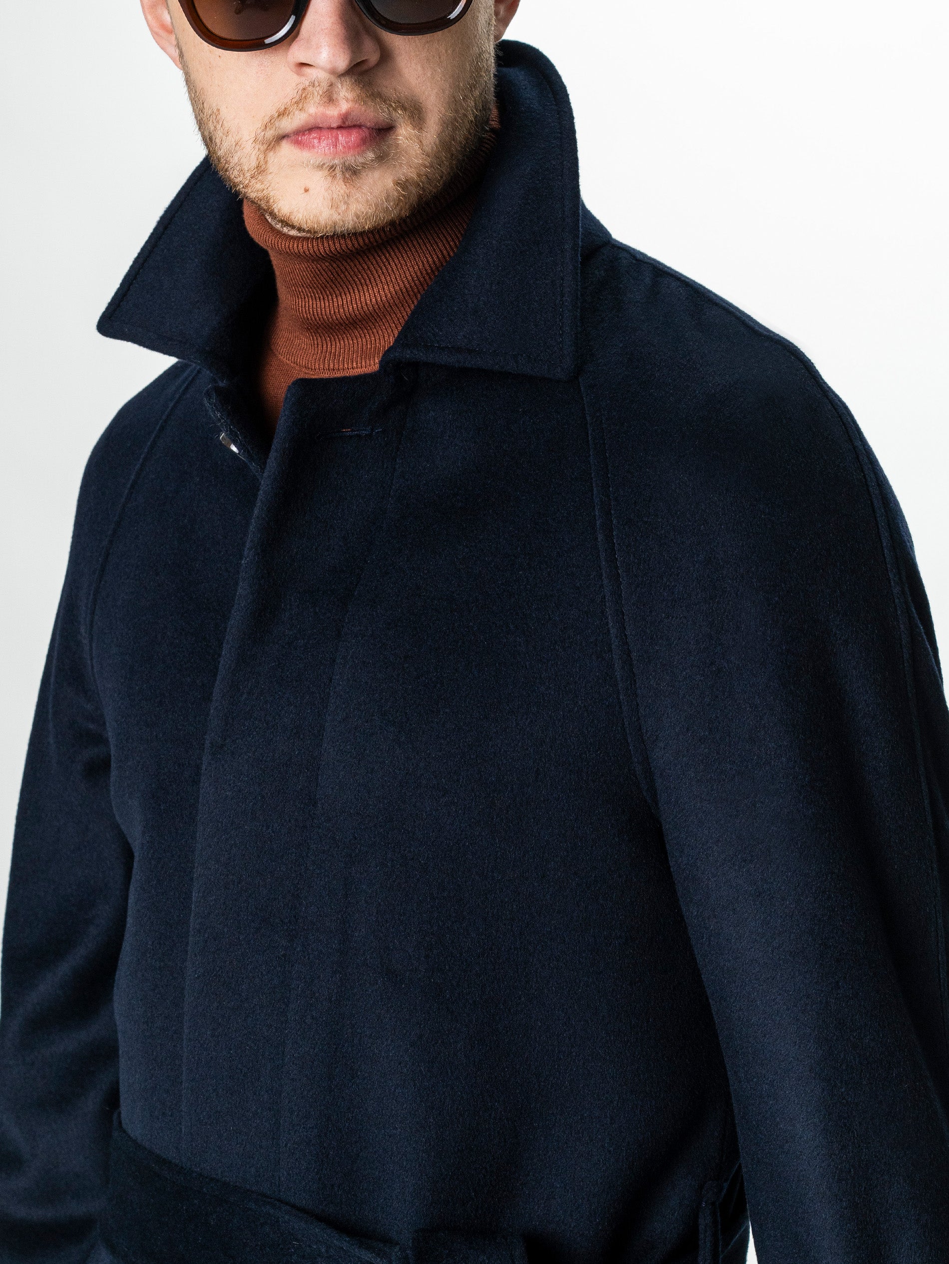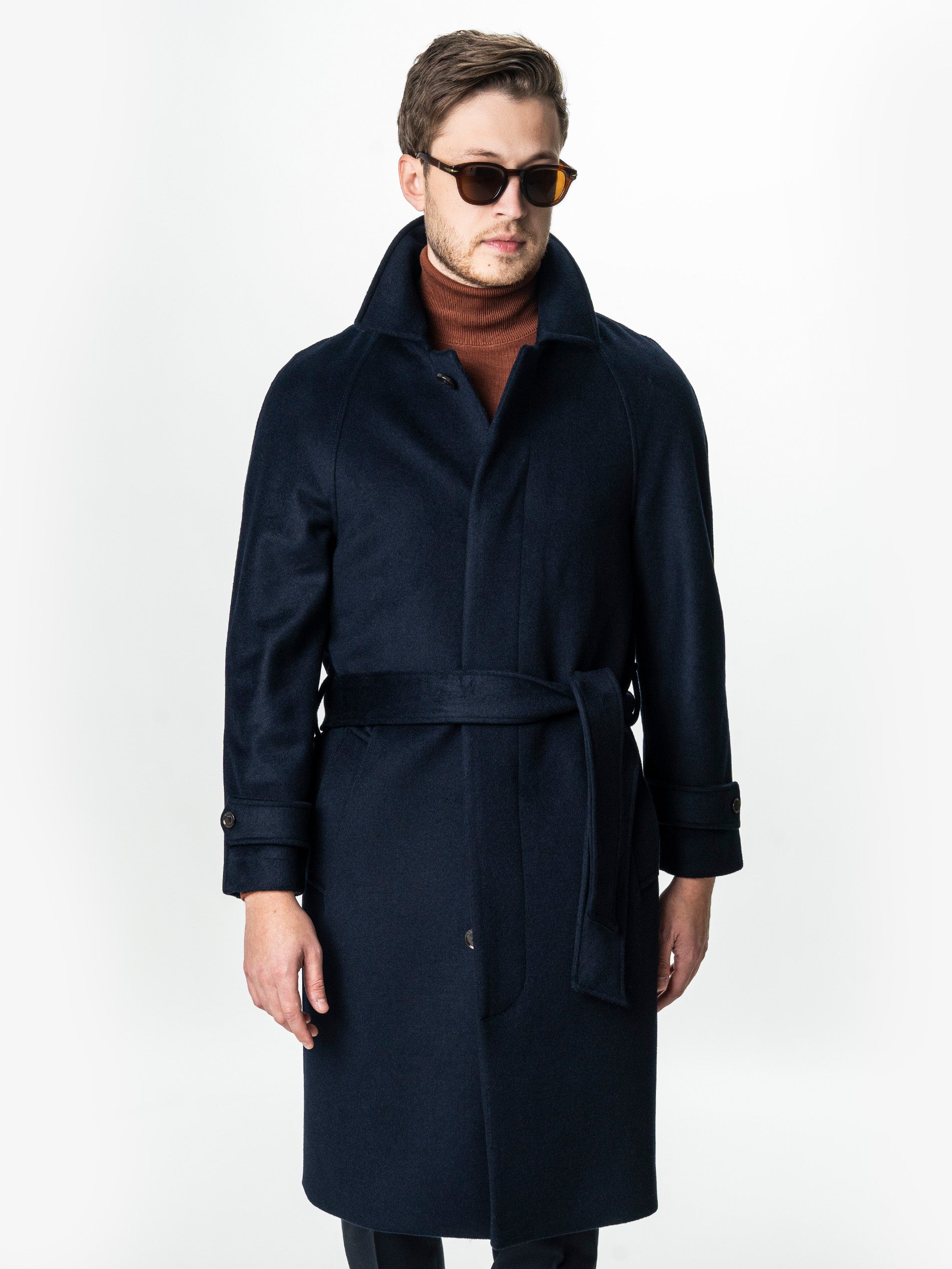 Acest palton din lana 100%, realizat dintr-o tesatura fina, imbina durabilitatea materialului cu o estetica rafinata. Linia dreapta este echilibrata de umerii raglan fara cusaturi, care confera o pozitie naturala si eleganta a corpului. Inchiderea ascunsa in fata mentine un aspect curat, iar cordonul din acelasi material ofera posibilitatea de ajustare a taliei in functie de stilul dorit – strans pentru o tinuta structurata sau lejer pentru un look casual. Mansetele sunt finisate cu bride si nasturi functionali, adaugand un plus de caracter utilitar discret. Lungimea sub genunchi asigura protectie termica si proportii impecabile pentru orice tip de incaltaminte, de la pantofi clasici la sneakers premium.