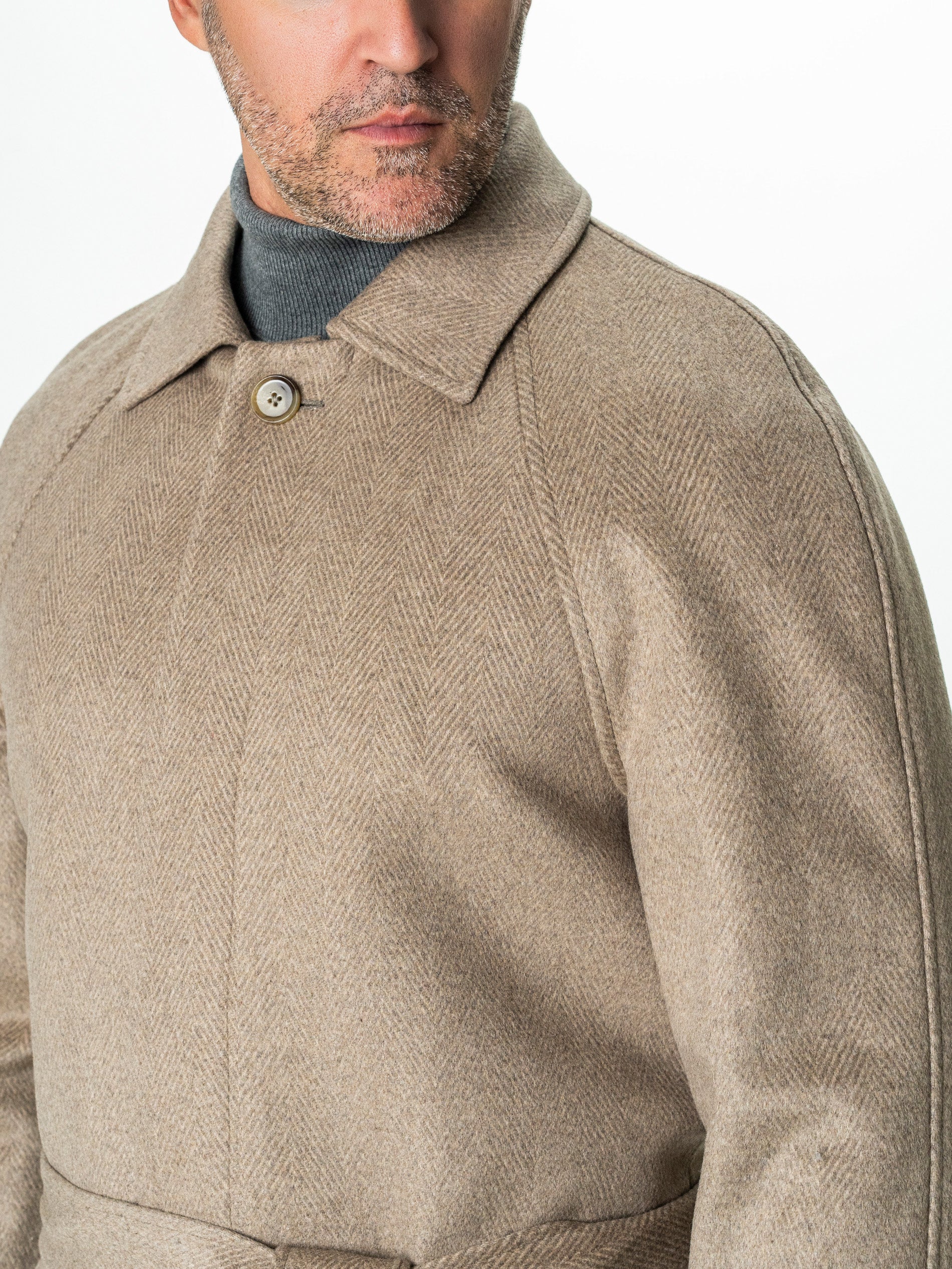 Acest palton din lana 100%, realizat dintr-o tesatura twill cu diagonale fine vizibile, imbina durabilitatea materialului cu o estetica rafinata. Linia dreapta este echilibrata de umerii raglan fara cusaturi, care confera o pozitie naturala si eleganta a corpului. Inchiderea ascunsa in fata mentine un aspect curat, iar cordonul din acelasi material ofera posibilitatea de ajustare a taliei in functie de stilul dorit – strans pentru o tinuta structurata sau lejer pentru un look casual. Mansetele sunt finisate cu bride si nasturi functionali, adaugand un plus de caracter utilitar discret. Lungimea sub genunchi asigura protectie termica si proportii impecabile pentru orice tip de incaltaminte, de la pantofi clasici la sneakers premium.