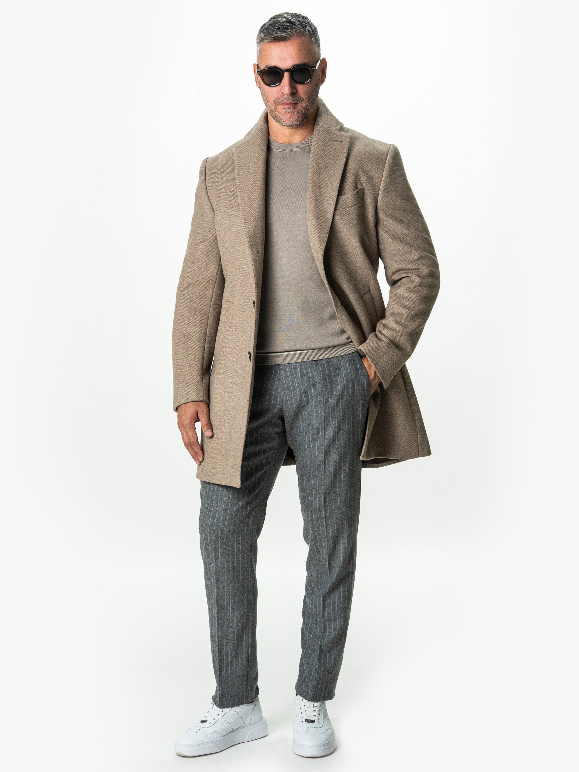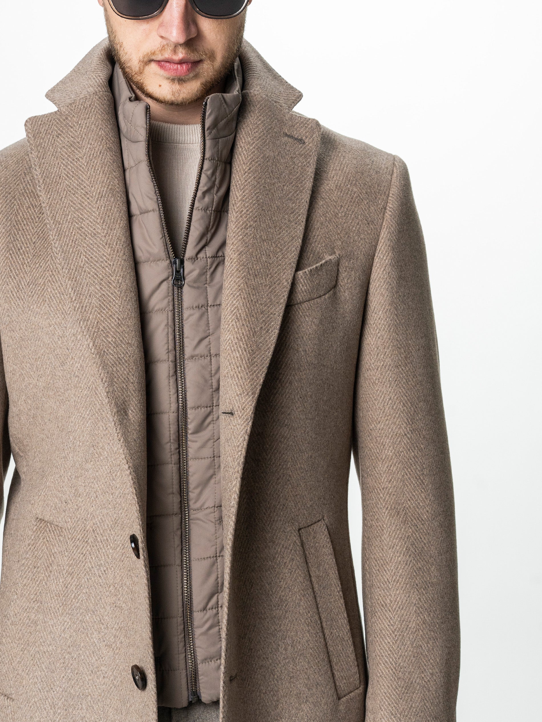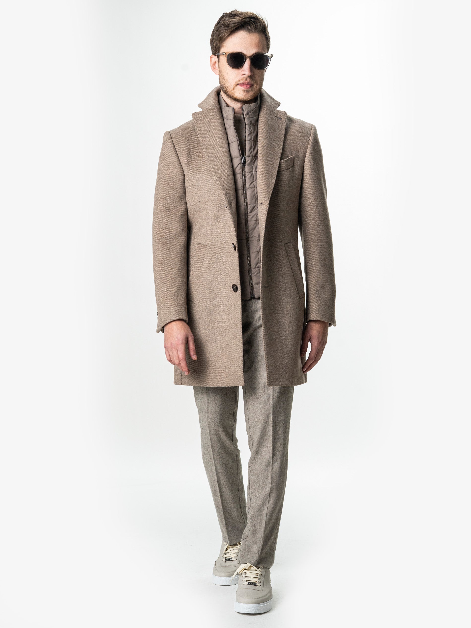 Eleganta functionala defineste acest palton din lana premium, conceput intr-o nuanta profunda de crem, cu textura twill si aspect sofisticat. Croiala dreapta, atent structurata, pune in valoare silueta masculina, pastrand in acelasi timp confortul caracteristic designului contemporan. Insertul interior matlasat, detasabil prin fermoar, adauga un plus de versatilitate – poate fi purtat pentru un strat suplimentar de protectie termica sau indepartat pentru un look mai lejer. Inchiderea frontala cu doi nasturi si revere clasice accentueaza linia curata a paltonului, mentinand un echilibru perfect intre rafinament si functionalitate. Un model esential pentru garderoba barbatului modern, ce imbina stilul urban cu eleganta atemporala.