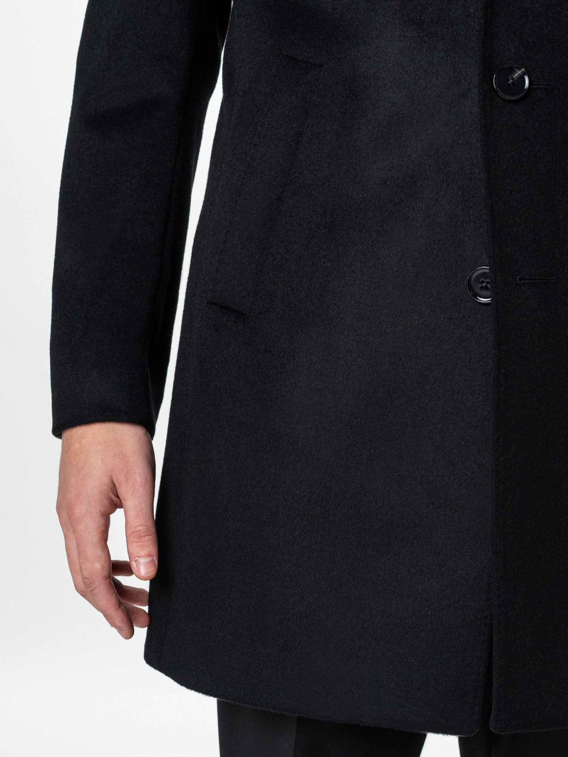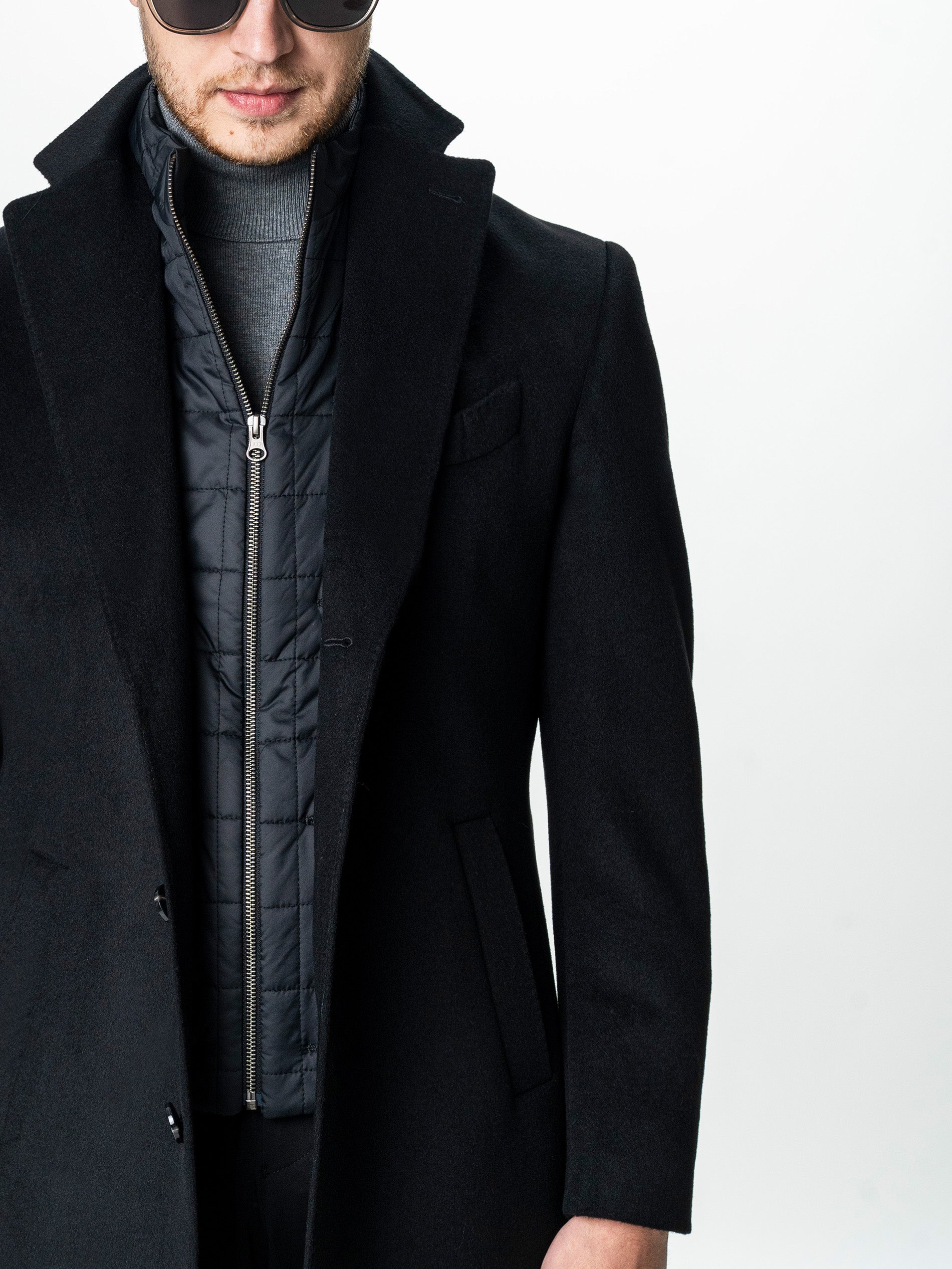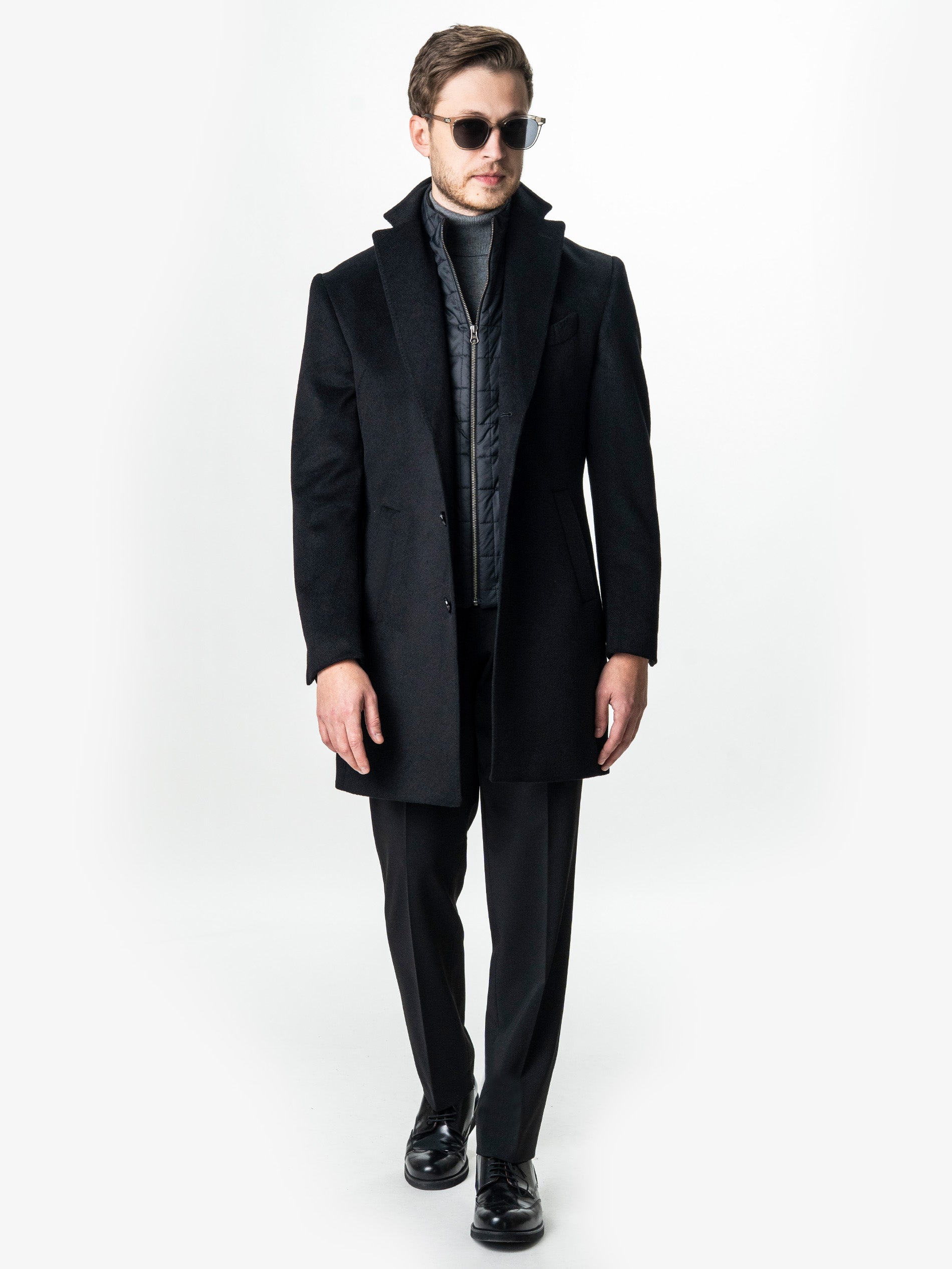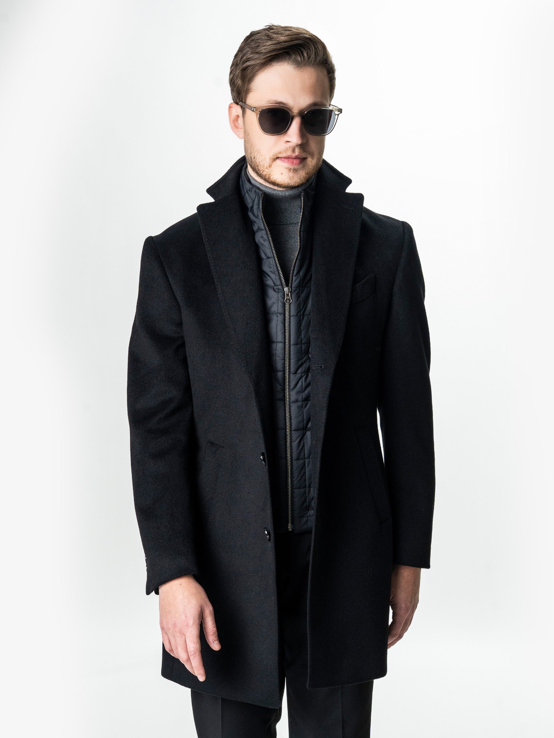 Eleganta functionala defineste acest palton din lana premium, conceput intr-o nuanta profunda de negru, cu textura fina si aspect sofisticat. Croiala dreapta, atent structurata, pune in valoare silueta masculina, pastrand in acelasi timp confortul caracteristic designului contemporan. Insertul interior matlasat, detasabil prin fermoar, adauga un plus de versatilitate – poate fi purtat pentru un strat suplimentar de protectie termica sau indepartat pentru un look mai lejer. Inchiderea frontala cu doi nasturi si revere clasice accentueaza linia curata a paltonului, mentinand un echilibru perfect intre rafinament si functionalitate. Un model esential pentru garderoba barbatului modern, ce imbina stilul urban cu eleganta atemporala.